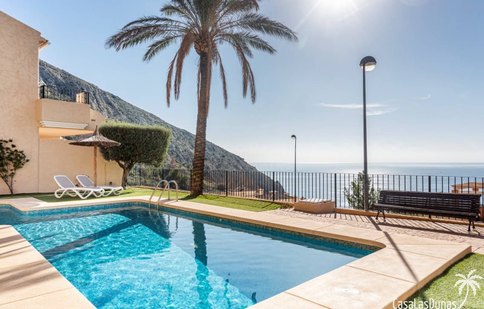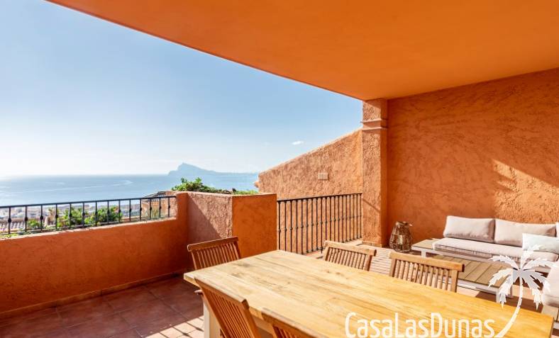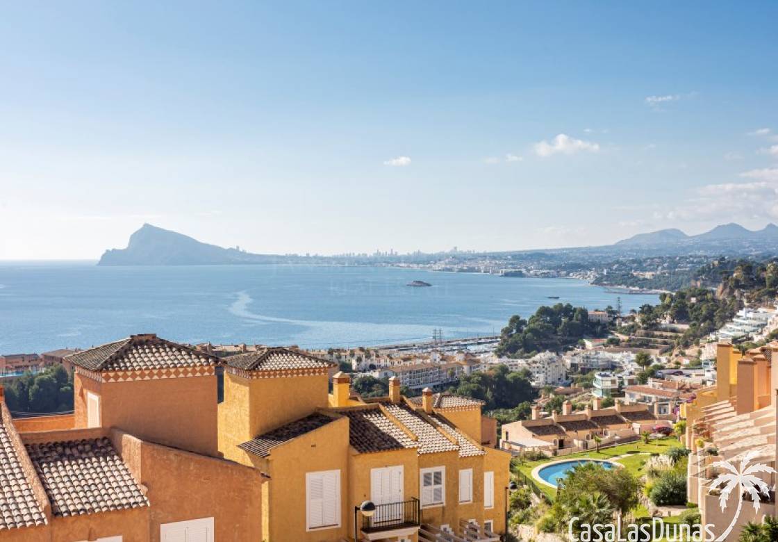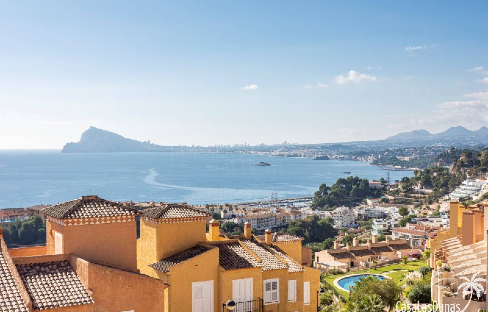 Charming townhouse with stunning sea and mountain views! This beautifully maintained property offers 250 m² of built space across two levels and is situated on an elevated hillside, allowing for abundant natural light and spectacular panoramic views. Key Features: 3 spacious bedrooms 3 full bathrooms Fully equipped kitchen Air conditioning (hot/cold) Large covered terrace of 60 m² with breathtaking views Private parking space included Located in a quiet and exclusive residential area, this home is part of a community with a shared swimming pool. Just a short distance from the Racó cove, Altea cove, and Mascarat beach. Ideal Location: Enjoy the peace of nature without sacrificing convenience: Only 10 minutes by car from Altea or Calpe Just 3 minutes from Marina Greenwich (Campomanes), with its vibrant selection of restaurants, cafés, and shops The Mascarat area, home to the iconic Marina Greenwich, is uniquely situated on the prime meridian (000º 00' 00'') the only marina in the world at this exact point. Surrounded by beautiful beaches, coves, and gentle inland mountains, this is an ideal spot for lovers of the sea, diving, hiking, and golf (near Don Cayo Golf Course and the Villa Gadea Resort). #ref:1750