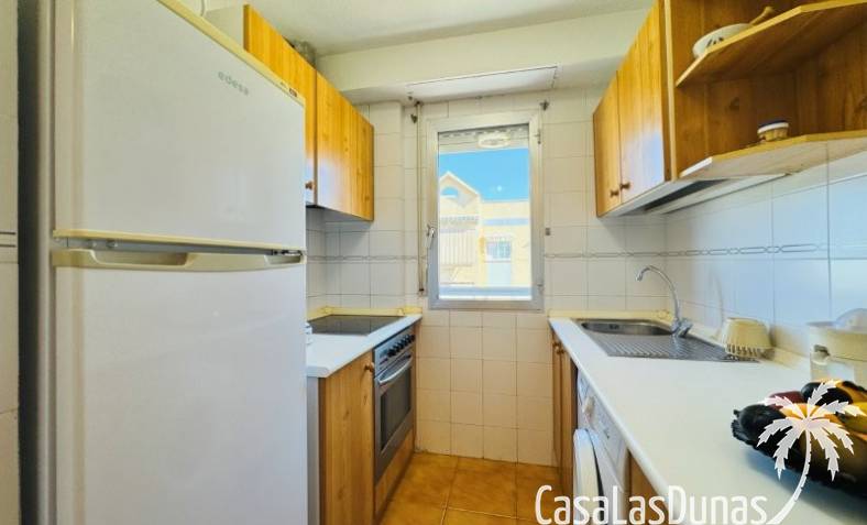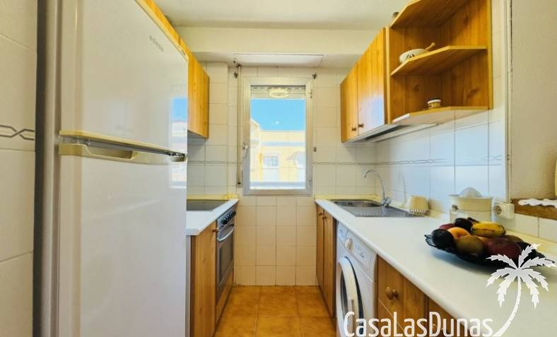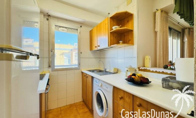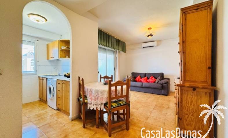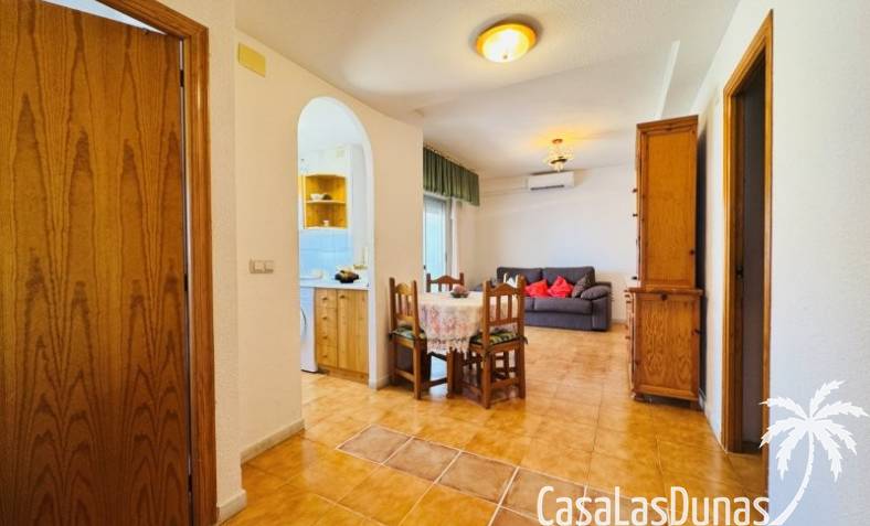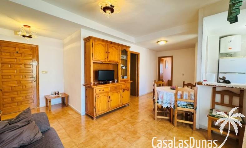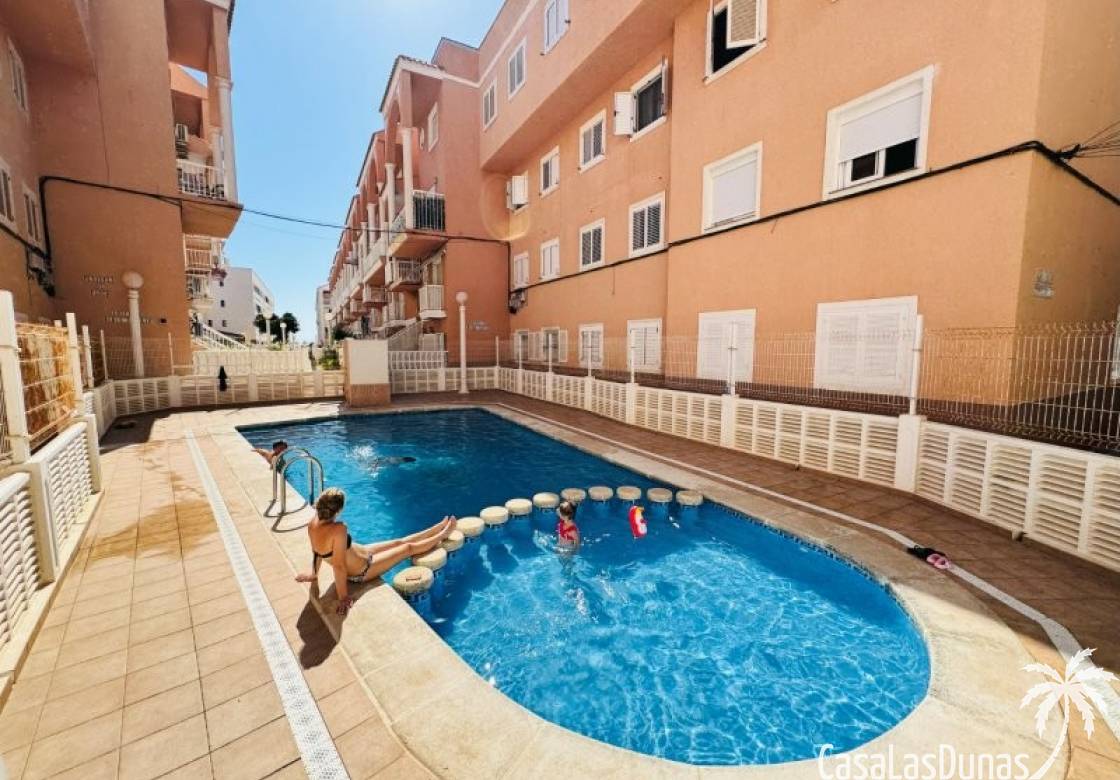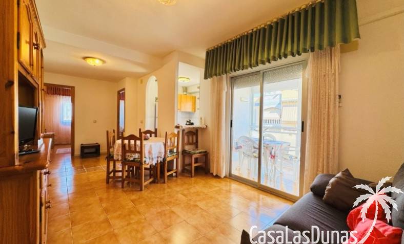 This apartment is located just 150 meters from the beach. It comes with a very good parking space included in the price, and the community has a small communal pool. The home has a constructed area of 66 m2, comprising a living-dining room, open-plan kitchen, 2 bedrooms, and 1 bathroom. It has a north-facing terrace with side views of the sea and the lagoon. It is on the 3rd floor with an elevator. The home is original but very well maintained. It is sold furnished.Communal terrace with privileged views of the sea and the lagoon Community fees: €480 per year, including the garage. Property tax: €235, including the garage.