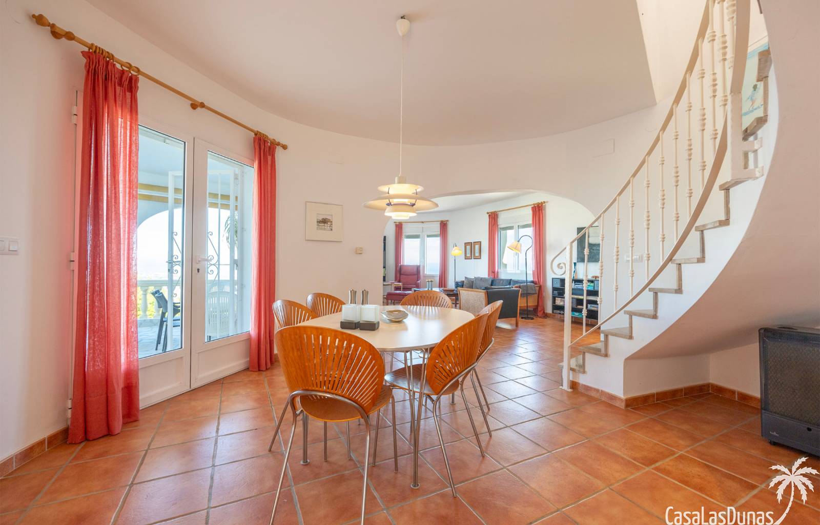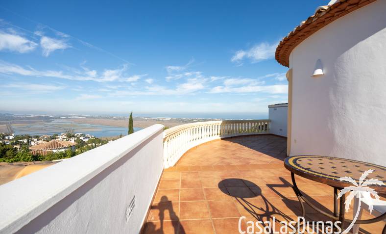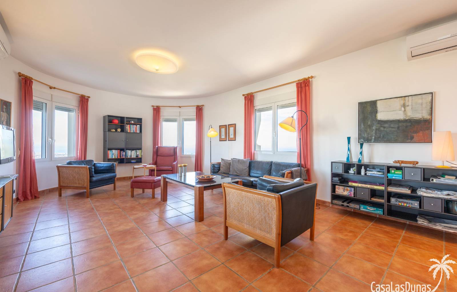This four-bedroom villa offers panoramic views of the Mediterranean Sea and the surrounding mountains on a spacious 1,300m² plot. The property features four comfortable bedrooms, three bathrooms, a bright and spacious living/dining room with access to a covered terrace and outdoor areas. There is also a fully equipped kitchen and a garage in the basement.