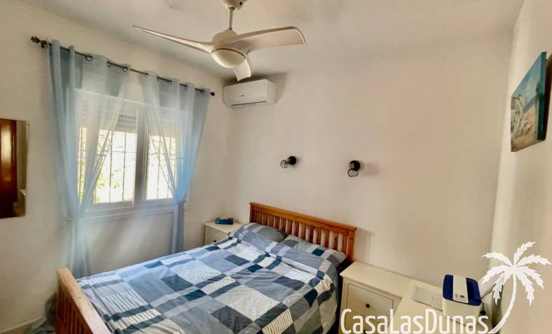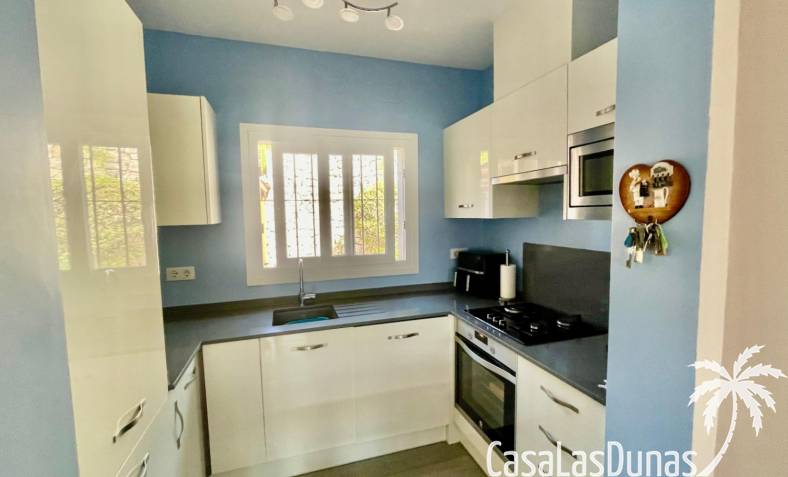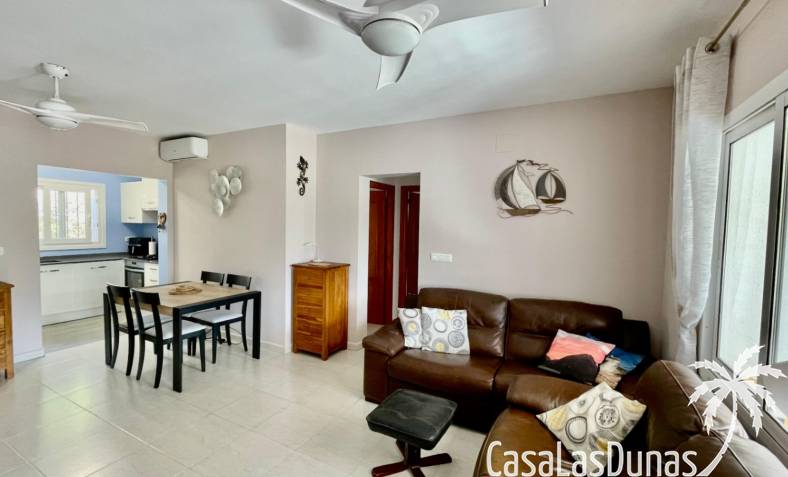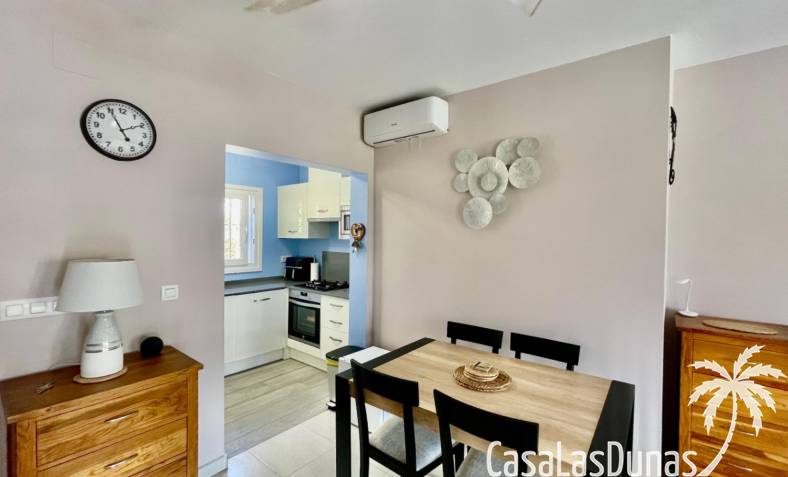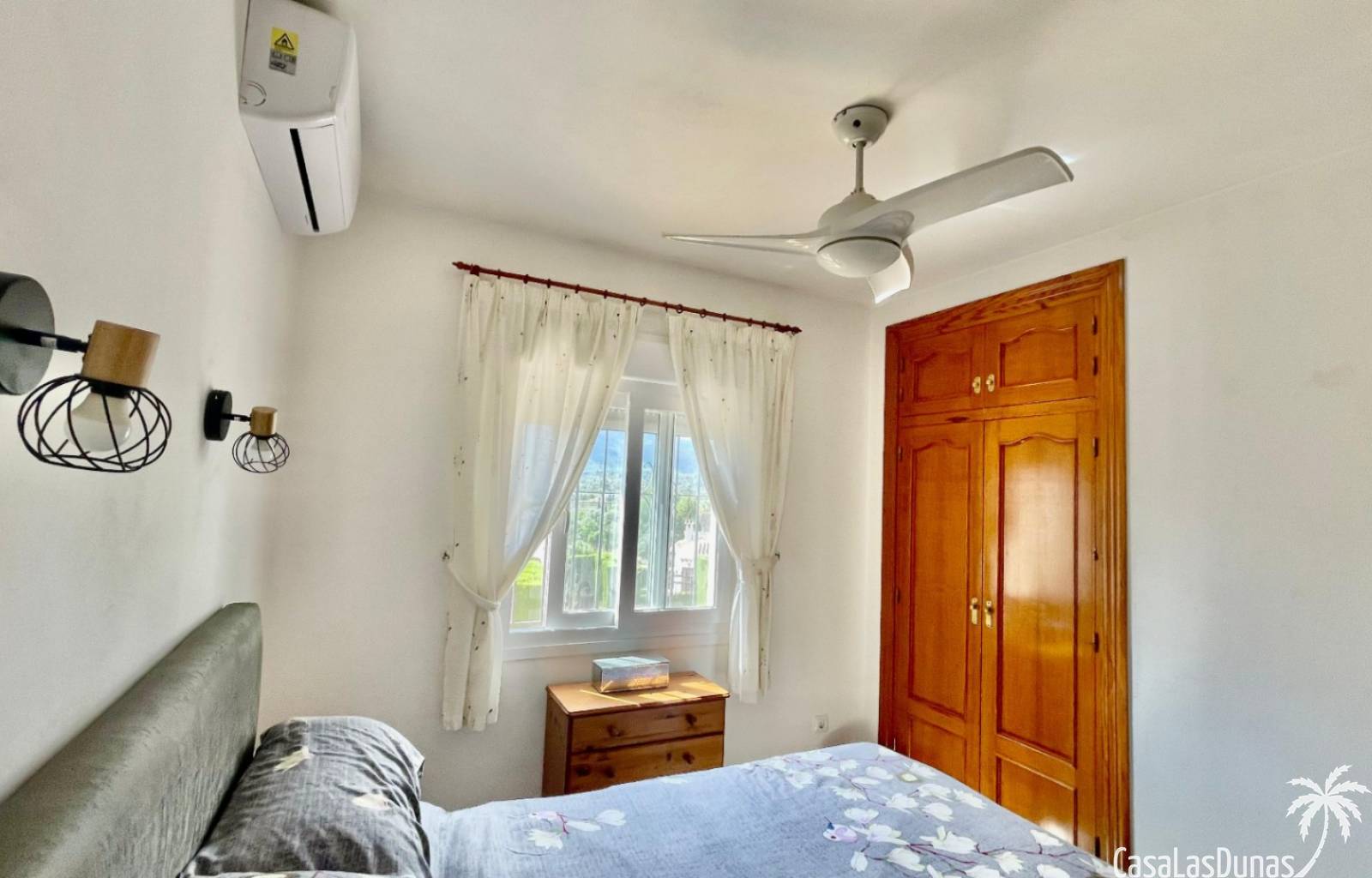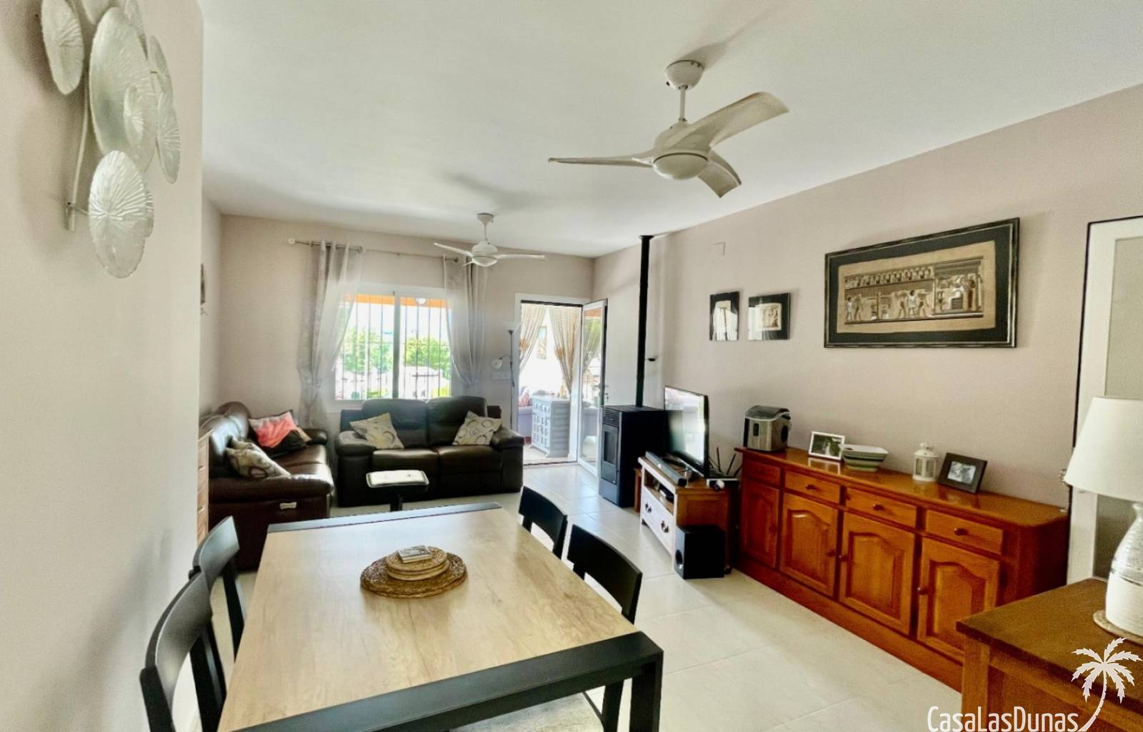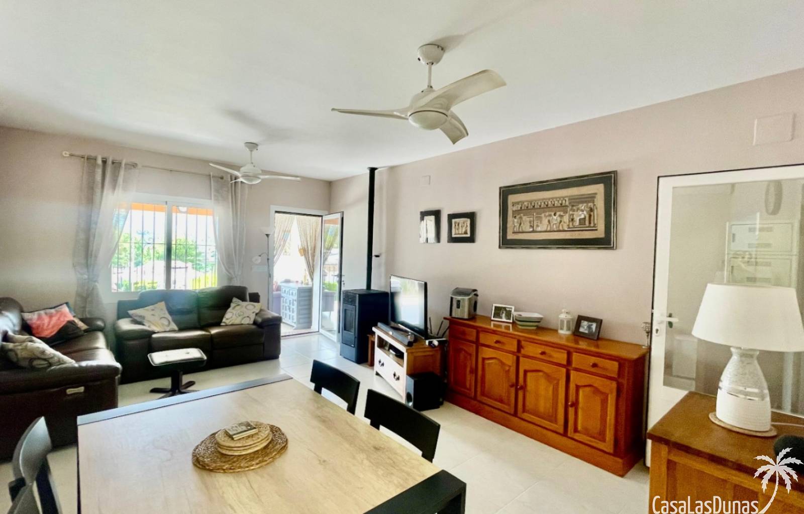 This south facing semi detached villa with open views and private garden is located in a lovely community with large communal pool. The house comprises of a covered naya leading to a large open plan living/dining room with pellet burner, hot and cold air conditioning and ceiling fans. The fully fitted kitchen has an external door leading to a very private terrace for dining/relaxing with gas BBQ. There are two double bedrooms with fitted wardrobes, hot and cold air conditioning, ceiling fans and a modern bathroom. The villa has a small underground storage room and off street parking. The property also has access to the very well maintained communal pool area with showers, toilets, parasols and sun loungers. Within walking distance you will find a popular restaurant, it is a 5 minute drive to Orba/Jalon/Murla and a 20 minute drive to the bustling town of Denia and its beaches, and 25/30 minutes to Javea/Moraira and Calpe.