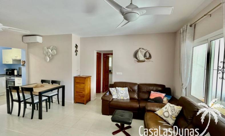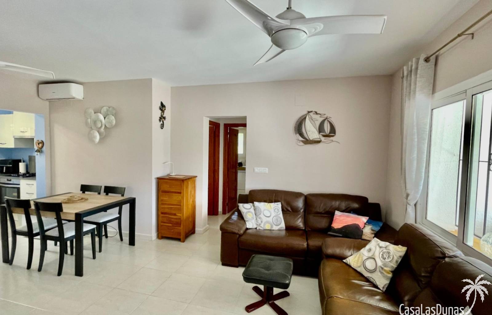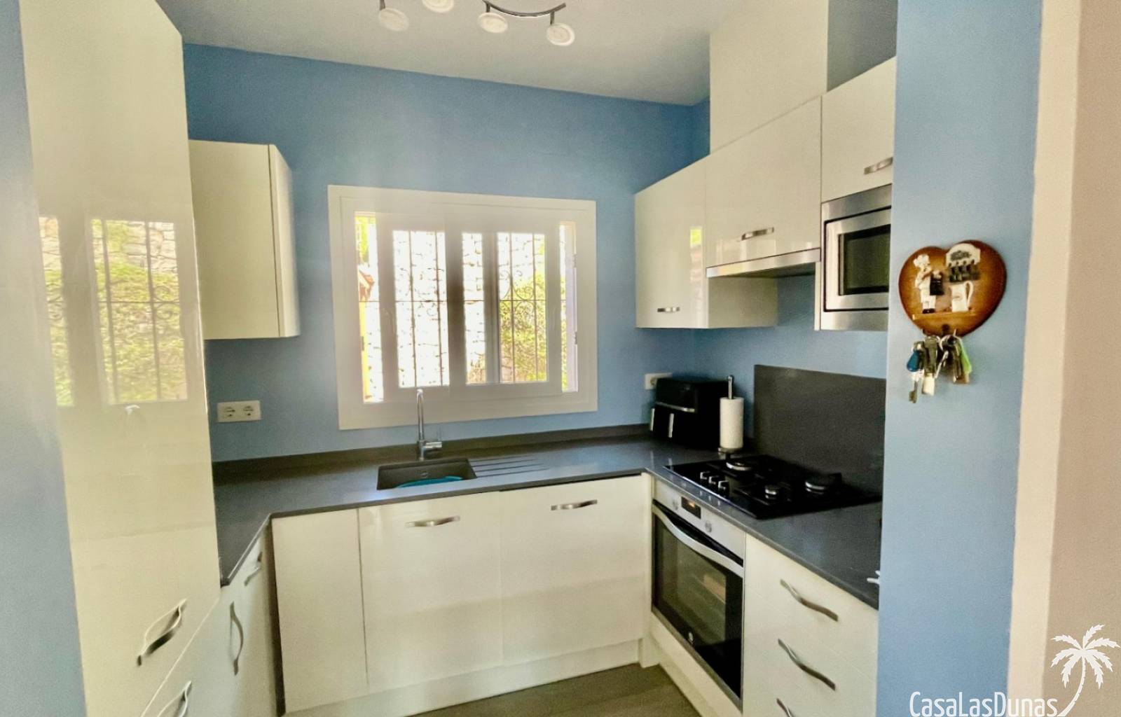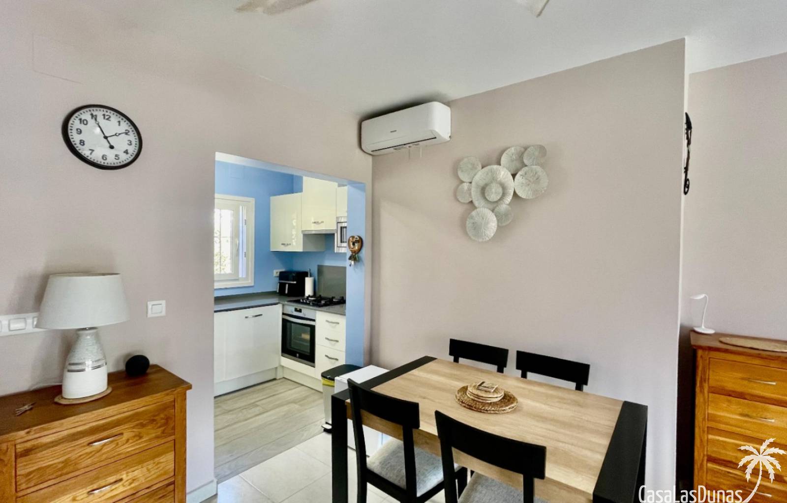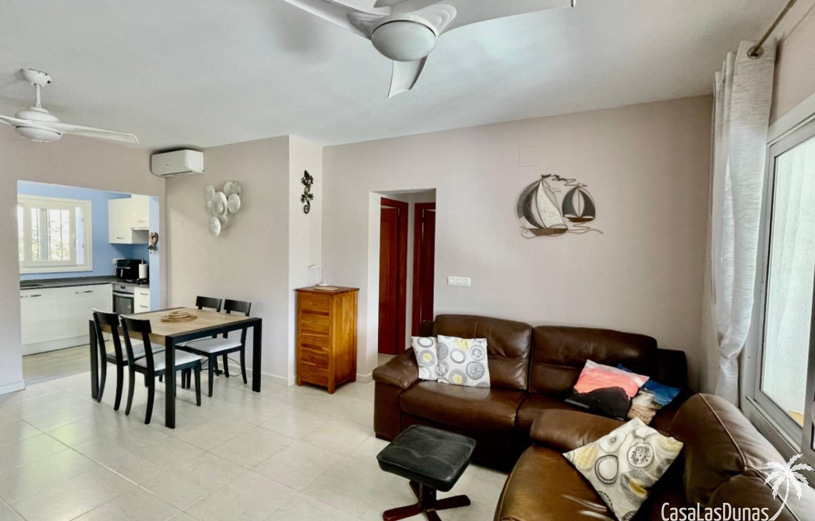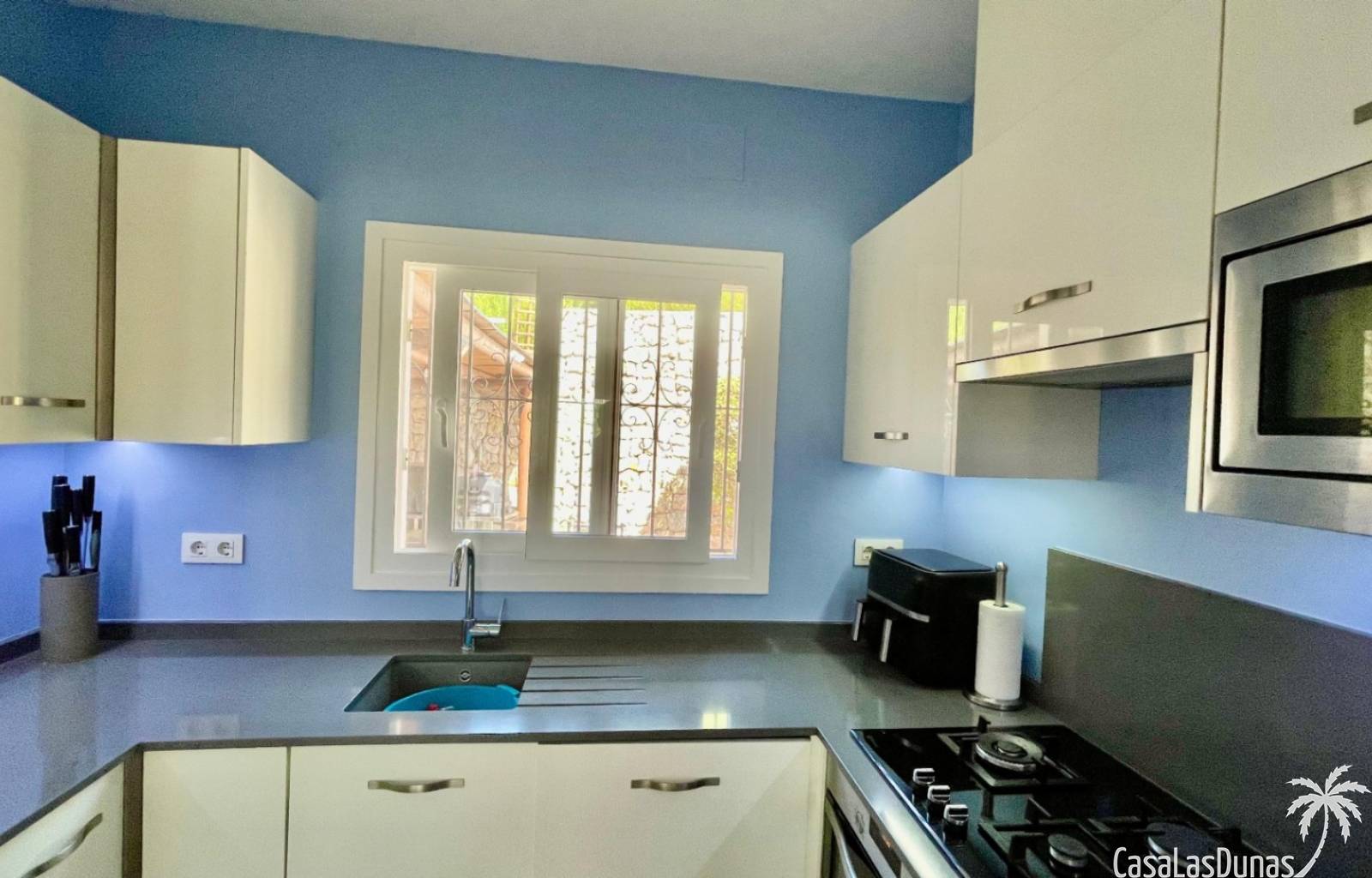 This south facing semi detached villa with open views and private garden is located in a lovely community with large communal pool. The house comprises of a covered naya leading to a large open plan living/dining room with pellet burner, hot and cold air conditioning and ceiling fans. The fully fitted kitchen has an external door leading to a very private terrace for dining/relaxing with gas BBQ. There are two double bedrooms with fitted wardrobes, hot and cold air conditioning, ceiling fans and a modern bathroom. The villa has a small underground storage room and off street parking. The property also has access to the very well maintained communal pool area with showers, toilets, parasols and sun loungers. Within walking distance you will find a popular restaurant, it is a 5 minute drive to Orba/Jalon/Murla and a 20 minute drive to the bustling town of Denia and its beaches, and 25/30 minutes to Javea/Moraira and Calpe.