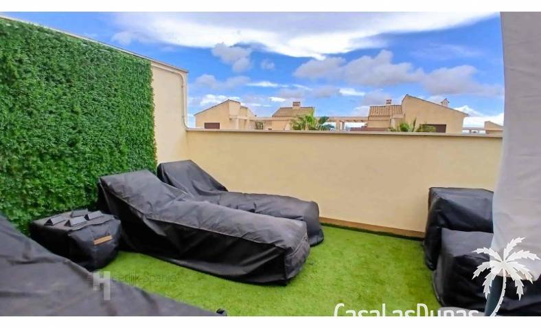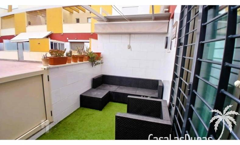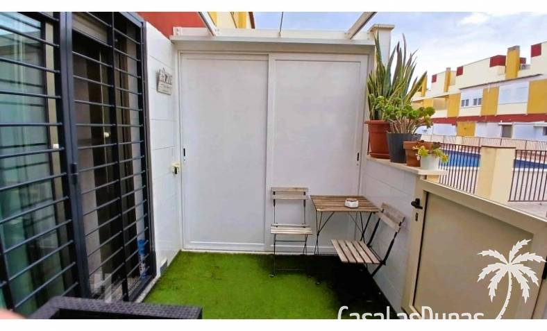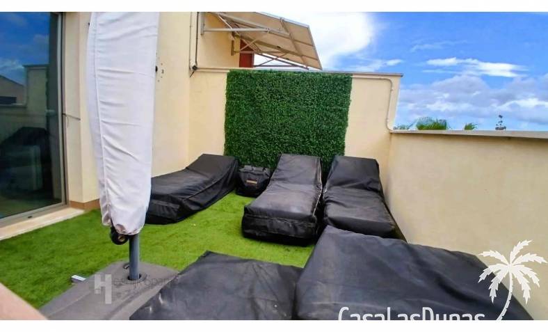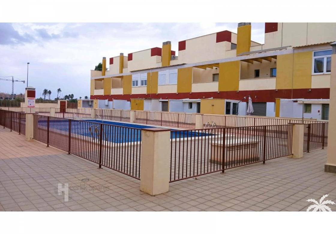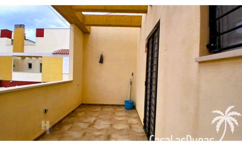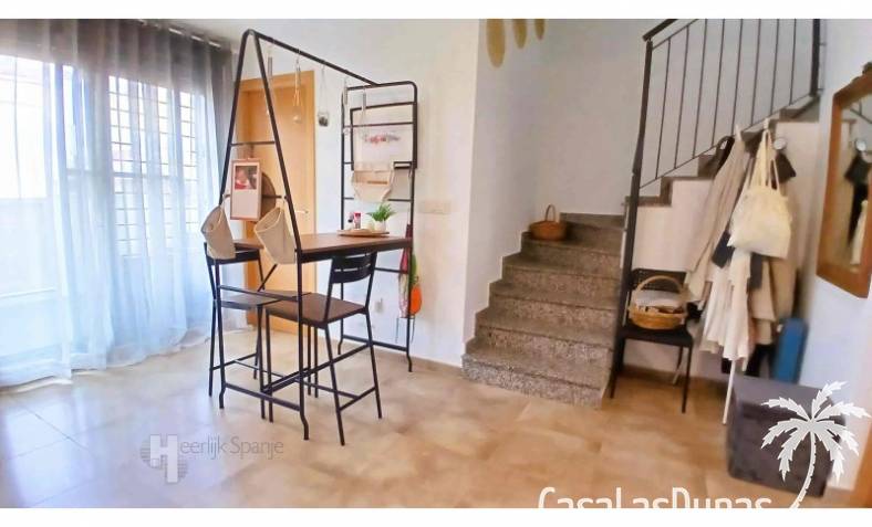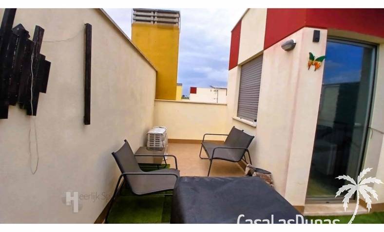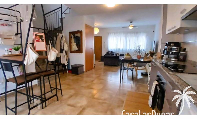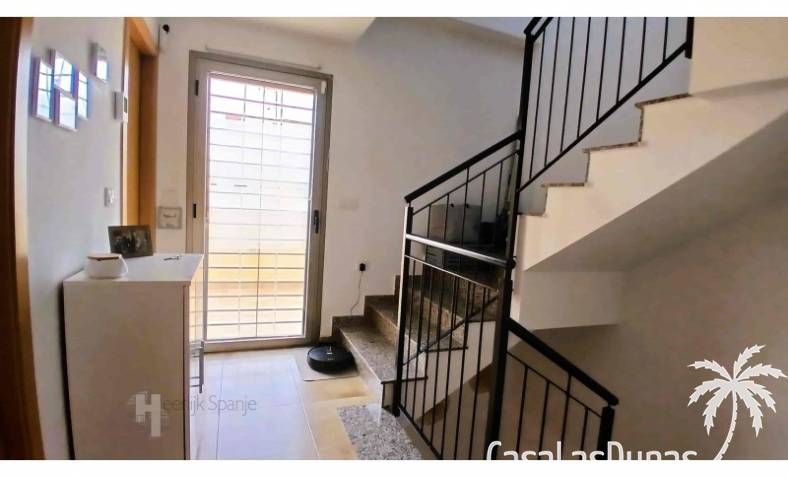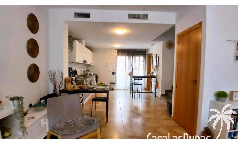 This house in good condition at 1200m from the beach is located in a small urbanisation of 22 properties in Los Alcazares. It enjoys space, light and comfort in a good location close to the beach, town centre and golf. The property has a communal swimming pool, several outdoor spaces, south orientation and sea views from the roof terrace. INTERIOR: - 2 bedrooms, with option for a 3rd bedroom - 1 bathroom (no separate toilet, but there is the possibility to add one). - Total area: 121 m² - New boiler (2025), new air-conditioning upstairs - Aluminium windows with double glazing - Alarm system - Furniture included in the sale - Garage of 50,5 m². OUTSIDE: - Front garden, two terraces and a large roof terrace. - South facing - Communal swimming pool - Sea views from the roof terrace ADDITIONAL INFORMATION: - Year of construction: 2017 - Energy certificate: D - Common expenses: 184 euros per quarter - Solar panels installed 2 years ago - Estimated yield for long term rental: 850 euros/month - Municipal taxes: 400 euros/year SURROUNDINGS: The property is ideally located in La Serena Golf Resort, in the charming neighbourhood of Los Alcazares. Here you can enjoy a wide range of bars, restaurants, supermarkets and a vibrant nightlife. Water sports enthusiasts and golf fanatics can enjoy a host of activities in the immediate vicinity. The 'Salinas de San Pedro', just 20 minutes drive away, offer a unique nature reserve where you can spot flamingos and stroll around the pink salt lakes. The region of Murcia is known for its 320 days of sunshine a year and a unique microclimate that guarantees warm summers and mild winters. Whether you enjoy golf, cycling, hiking, horse riding or even skiing in winter (only 2.5 hours away) - everything is possible here. Ready to move into and fully equipped, ready to enjoy Spanish life! #ref:HS_6