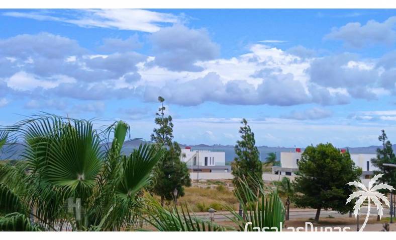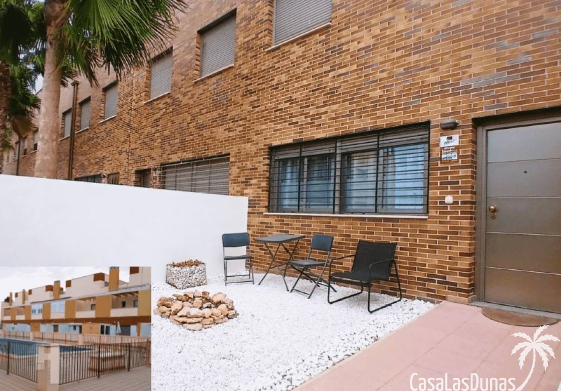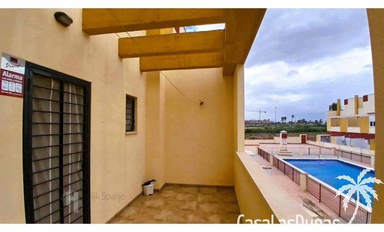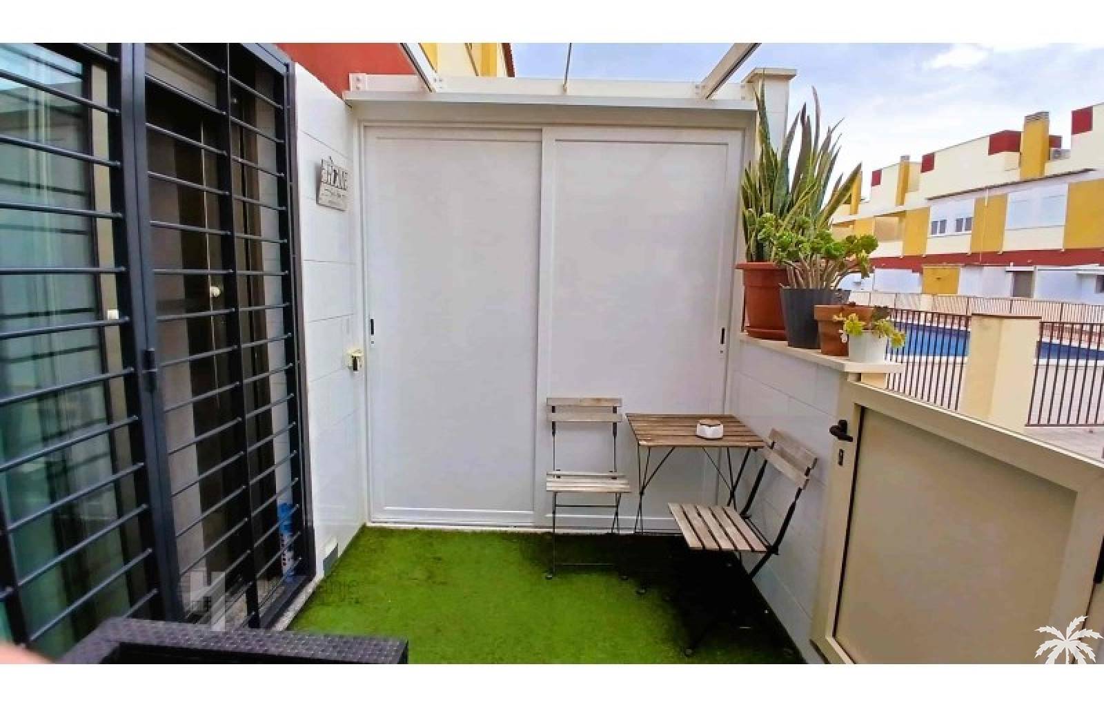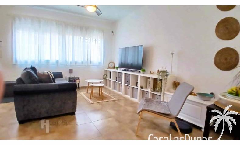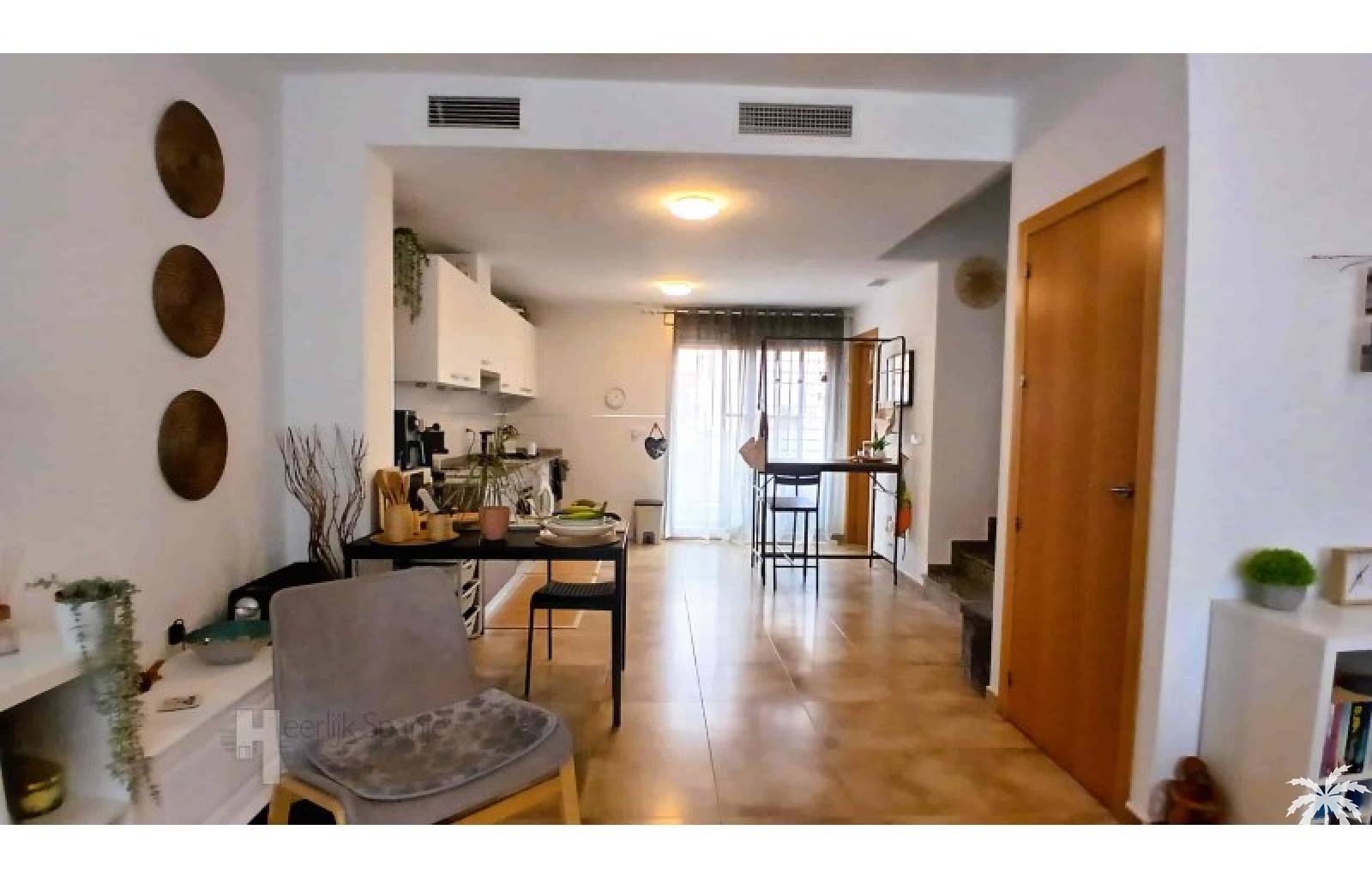 This house in good condition at 1200m from the beach is located in a small urbanisation of 22 properties in Los Alcazares. It enjoys space, light and comfort in a good location close to the beach, town centre and golf. The property has a communal swimming pool, several outdoor spaces, south orientation and sea views from the roof terrace. INTERIOR: - 2 bedrooms, with option for a 3rd bedroom - 1 bathroom (no separate toilet, but there is the possibility to add one). - Total area: 121 m² - New boiler (2025), new air-conditioning upstairs - Aluminium windows with double glazing - Alarm system - Furniture included in the sale - Garage of 50,5 m². OUTSIDE: - Front garden, two terraces and a large roof terrace. - South facing - Communal swimming pool - Sea views from the roof terrace ADDITIONAL INFORMATION: - Year of construction: 2017 - Energy certificate: D - Common expenses: 184 euros per quarter - Solar panels installed 2 years ago - Estimated yield for long term rental: 850 euros/month - Municipal taxes: 400 euros/year SURROUNDINGS: The property is ideally located in La Serena Golf Resort, in the charming neighbourhood of Los Alcazares. Here you can enjoy a wide range of bars, restaurants, supermarkets and a vibrant nightlife. Water sports enthusiasts and golf fanatics can enjoy a host of activities in the immediate vicinity. The 'Salinas de San Pedro', just 20 minutes drive away, offer a unique nature reserve where you can spot flamingos and stroll around the pink salt lakes. The region of Murcia is known for its 320 days of sunshine a year and a unique microclimate that guarantees warm summers and mild winters. Whether you enjoy golf, cycling, hiking, horse riding or even skiing in winter (only 2.5 hours away) - everything is possible here. Ready to move into and fully equipped, ready to enjoy Spanish life! #ref:HS_6
