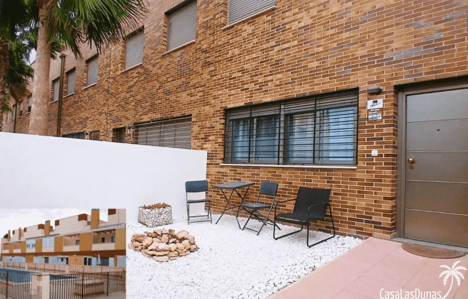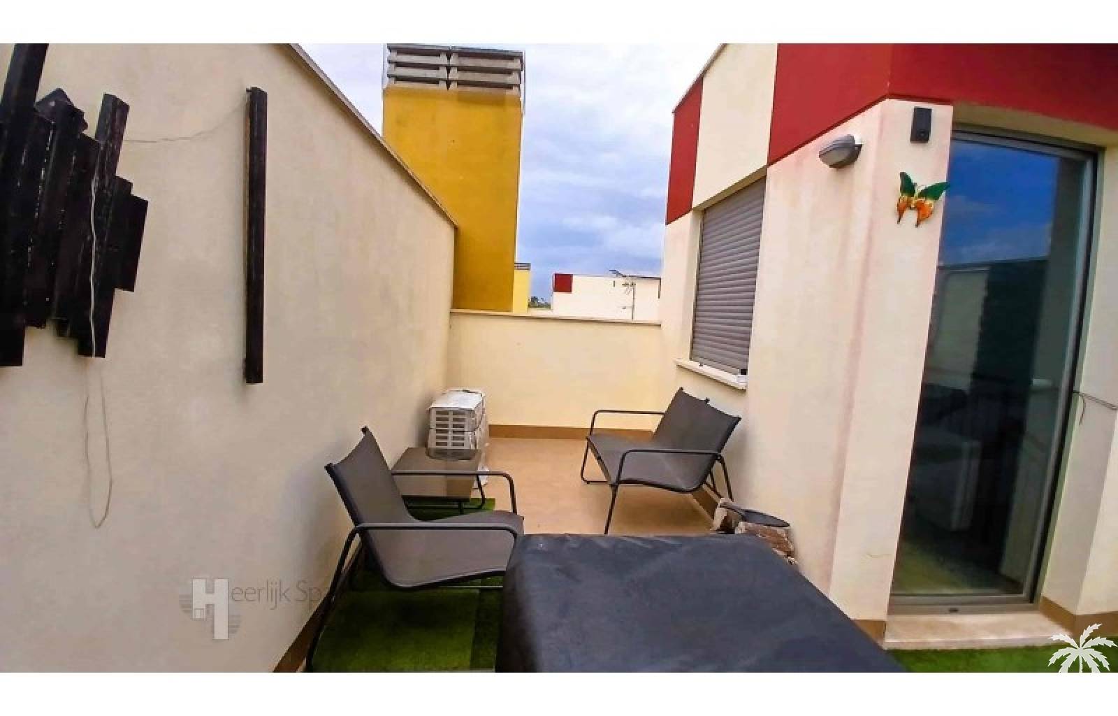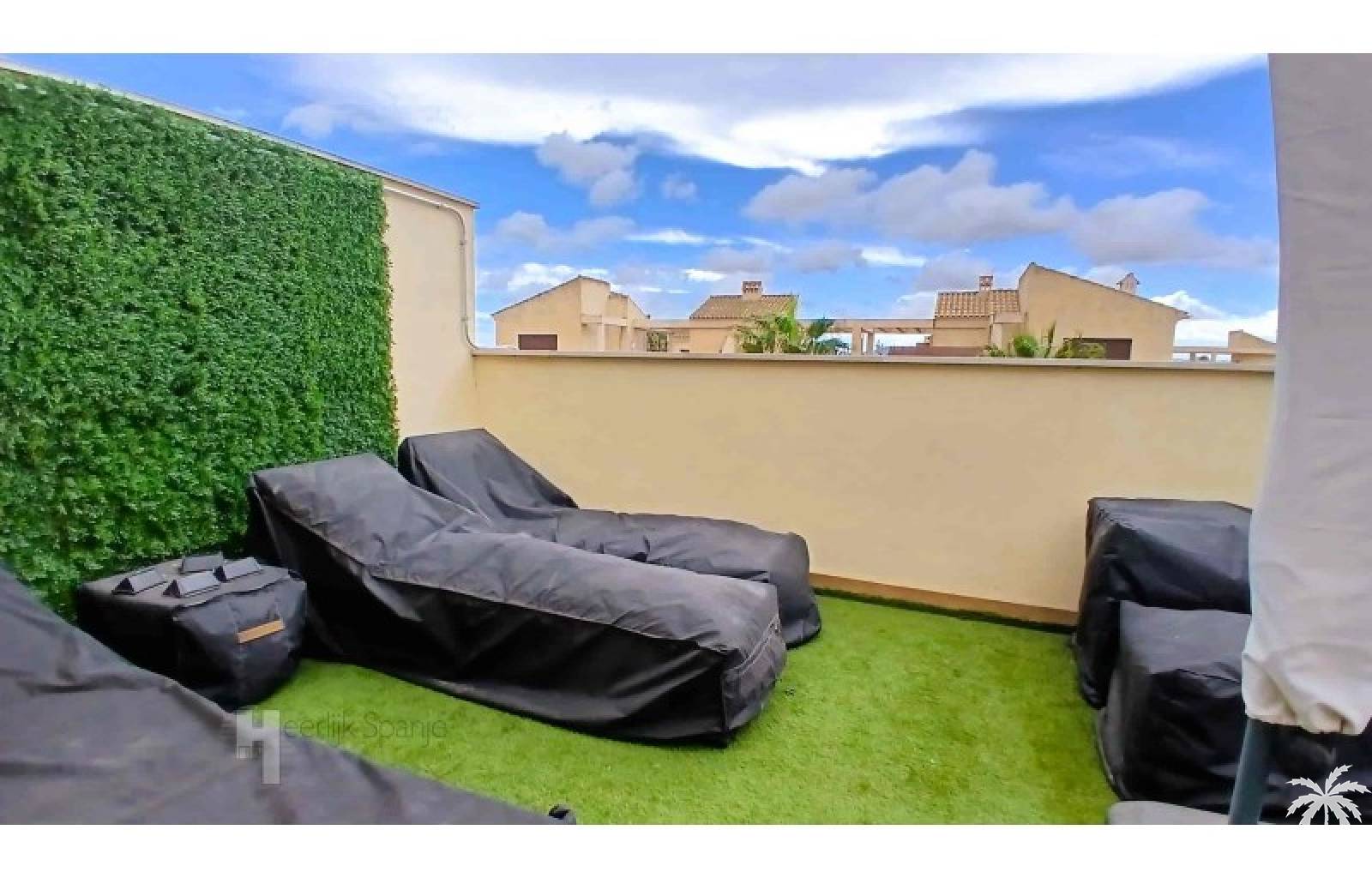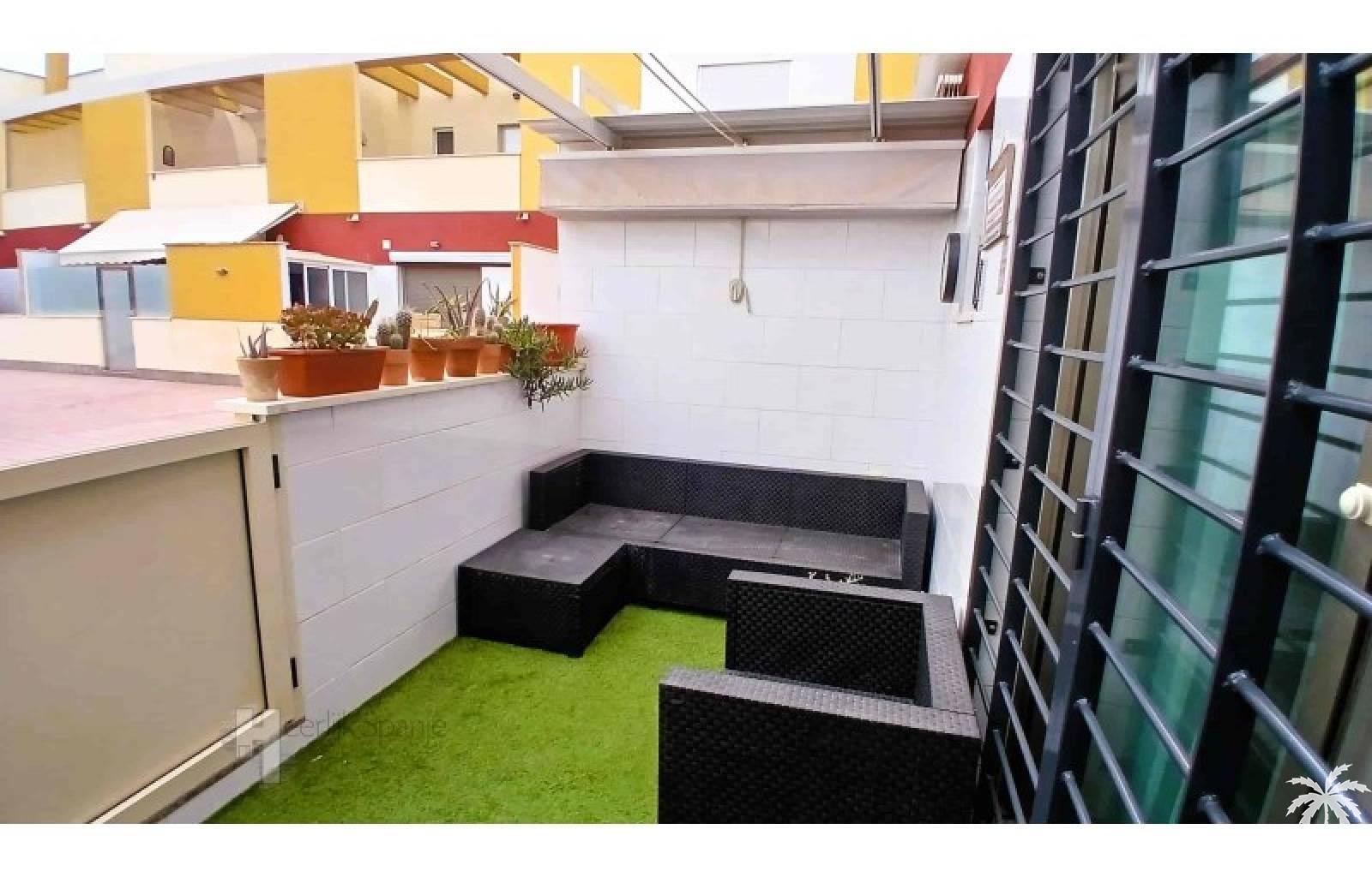 This house in good condition at 1200m from the beach is located in a small urbanisation of 22 properties in Los Alcazares. It enjoys space, light and comfort in a good location close to the beach, town centre and golf. The property has a communal swimming pool, several outdoor spaces, south orientation and sea views from the roof terrace. INTERIOR: - 2 bedrooms, with option for a 3rd bedroom - 1 bathroom (no separate toilet, but there is the possibility to add one). - Total area: 121 m² - New boiler (2025), new air-conditioning upstairs - Aluminium windows with double glazing - Alarm system - Furniture included in the sale - Garage of 50,5 m². OUTSIDE: - Front garden, two terraces and a large roof terrace. - South facing - Communal swimming pool - Sea views from the roof terrace ADDITIONAL INFORMATION: - Year of construction: 2017 - Energy certificate: D - Common expenses: 184 euros per quarter - Solar panels installed 2 years ago - Estimated yield for long term rental: 850 euros/month - Municipal taxes: 400 euros/year SURROUNDINGS: The property is ideally located in La Serena Golf Resort, in the charming neighbourhood of Los Alcazares. Here you can enjoy a wide range of bars, restaurants, supermarkets and a vibrant nightlife. Water sports enthusiasts and golf fanatics can enjoy a host of activities in the immediate vicinity. The 'Salinas de San Pedro', just 20 minutes drive away, offer a unique nature reserve where you can spot flamingos and stroll around the pink salt lakes. The region of Murcia is known for its 320 days of sunshine a year and a unique microclimate that guarantees warm summers and mild winters. Whether you enjoy golf, cycling, hiking, horse riding or even skiing in winter (only 2.5 hours away) - everything is possible here. Ready to move into and fully equipped, ready to enjoy Spanish life! #ref:HS_6