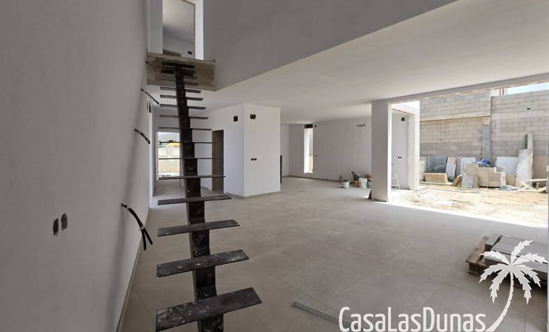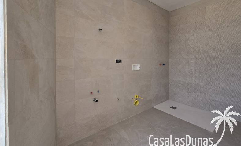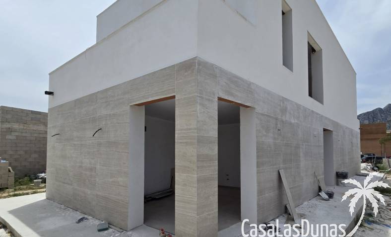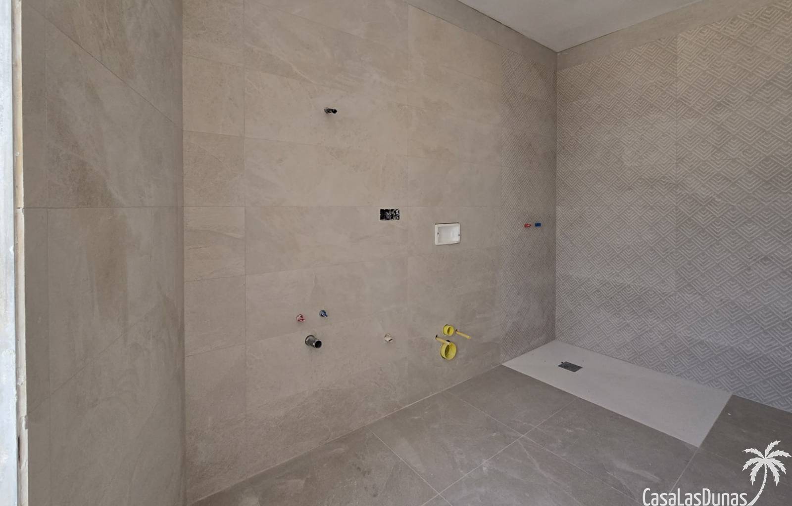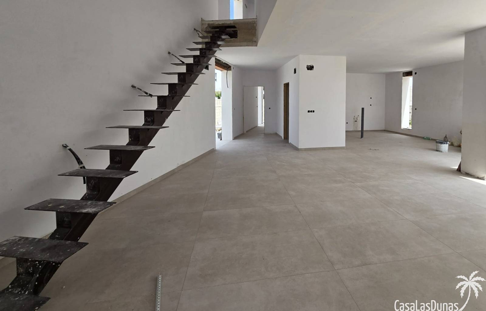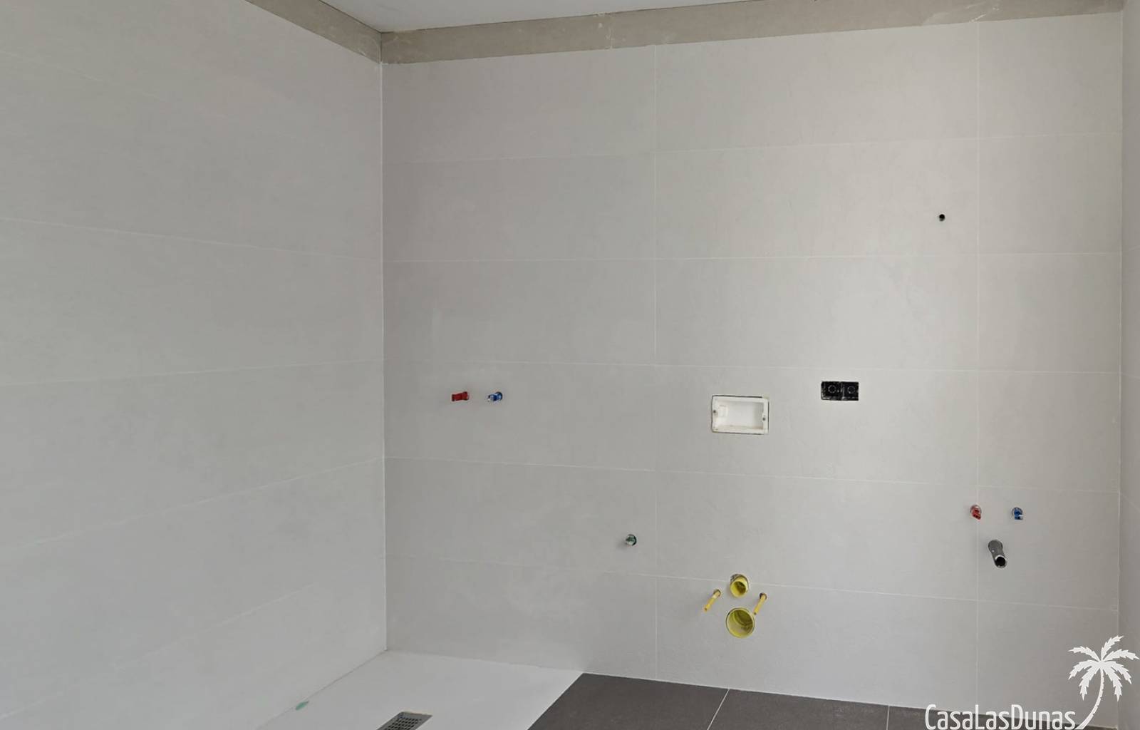 This modern villa with a private pool is being built a short walk from the center of El Vergel and all amenities, and a 5-minute drive from the expansive sandy beaches. The house is spread over two floors and features three bedrooms, all with en-suite bathrooms, plus an additional guest toilet. The open-plan kitchen with a cooking island seamlessly connects to the living room, creating a spacious and bright space thanks to its large windows. The villa is equipped with Bosch appliances, underfloor heating, and air conditioning with a heat pump.