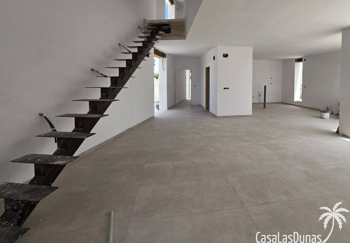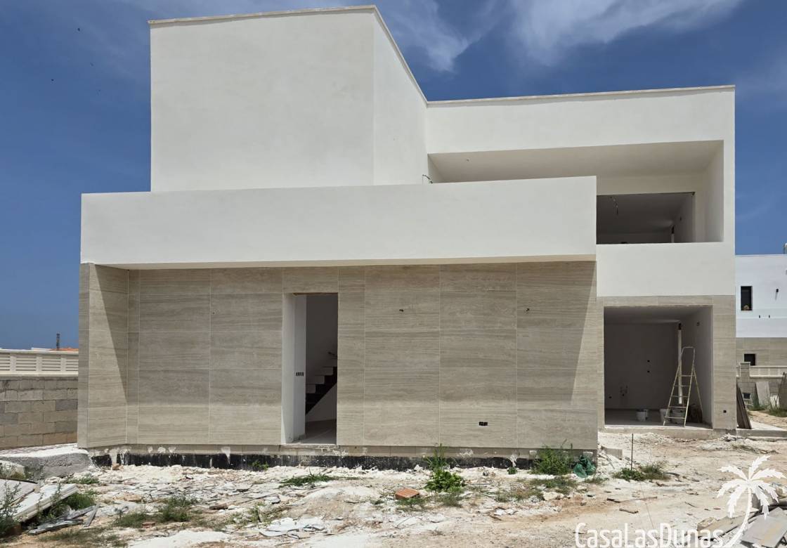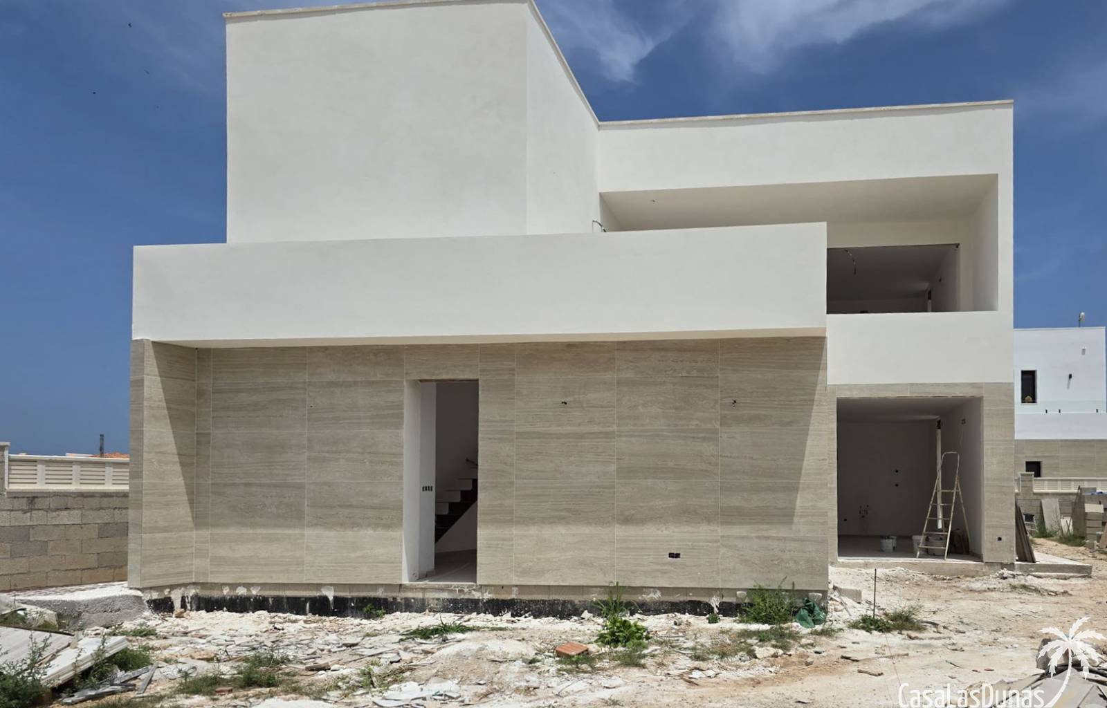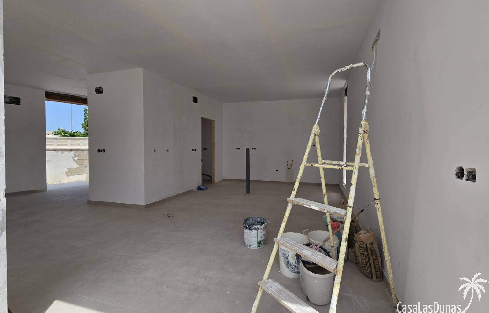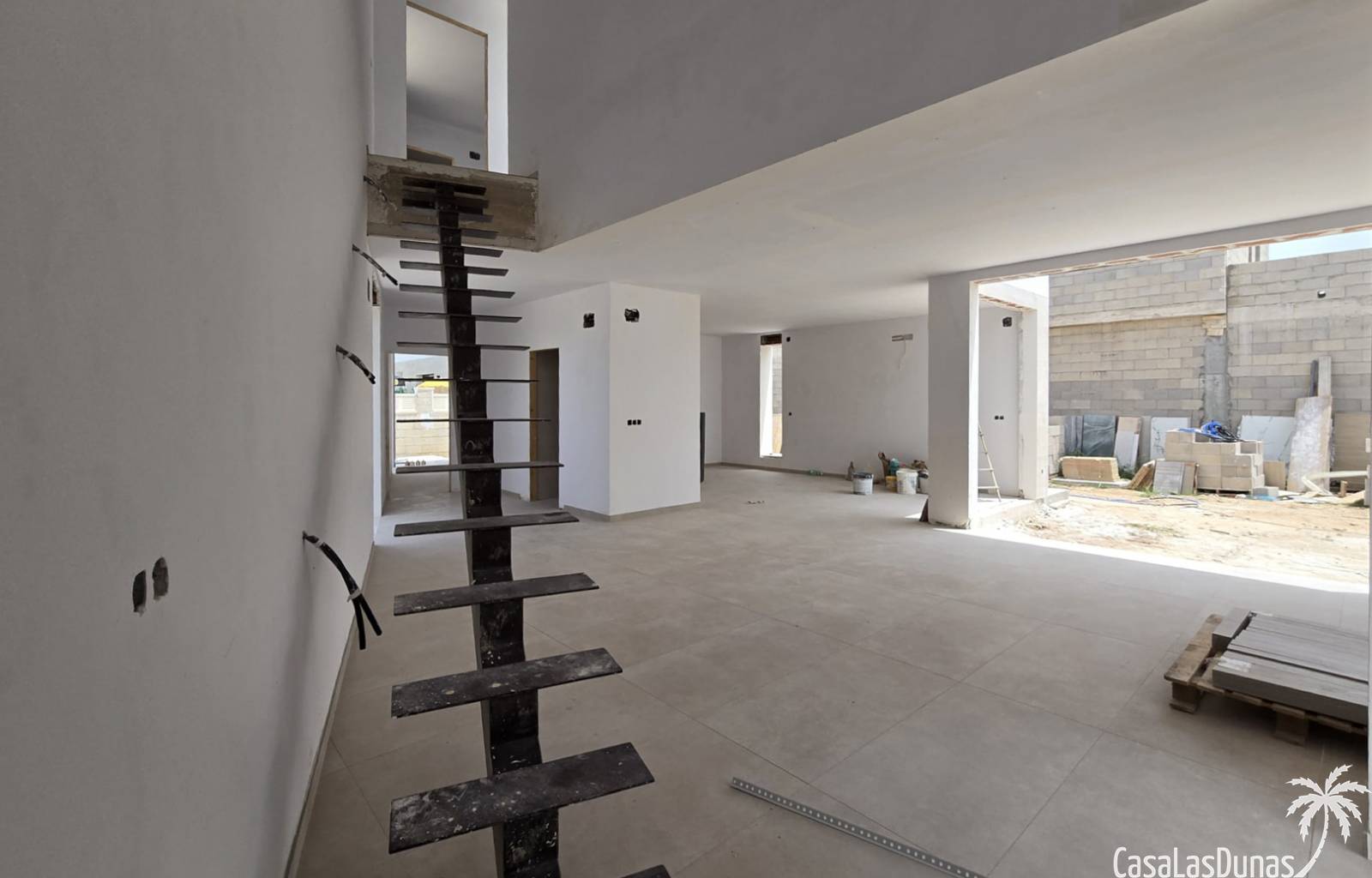 This modern villa with a private pool is being built a short walk from the center of El Vergel and all amenities, and a 5-minute drive from the expansive sandy beaches. The house is spread over two floors and features three bedrooms, all with en-suite bathrooms, plus an additional guest toilet. The open-plan kitchen with a cooking island seamlessly connects to the living room, creating a spacious and bright space thanks to its large windows. The villa is equipped with Bosch appliances, underfloor heating, and air conditioning with a heat pump.