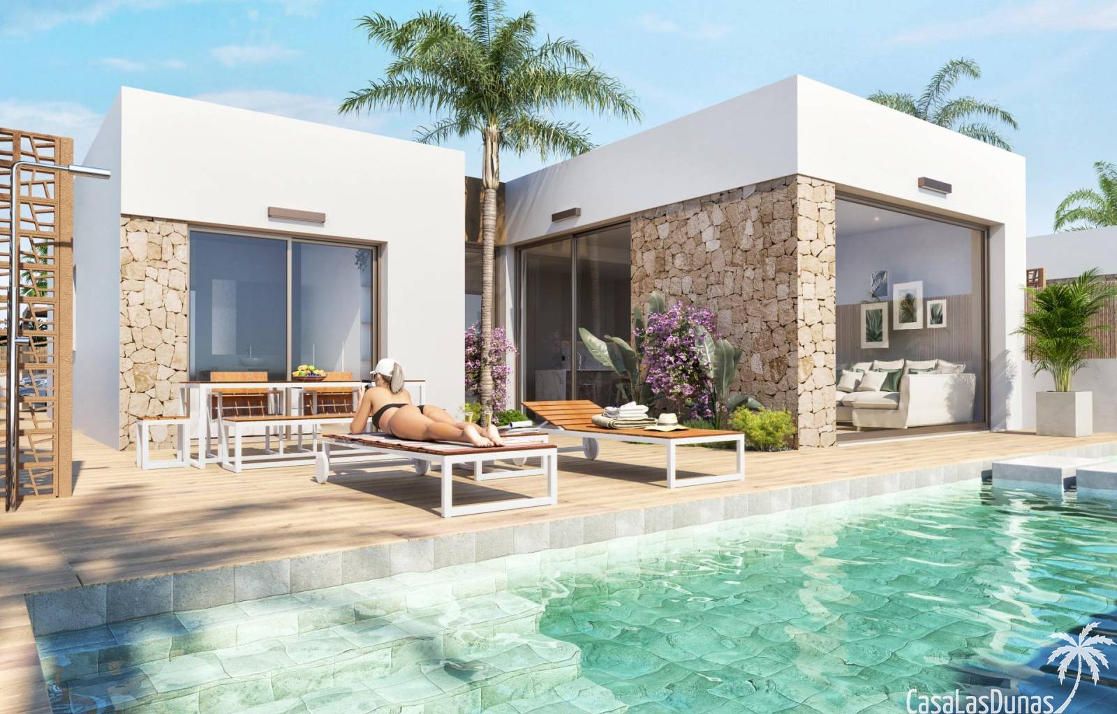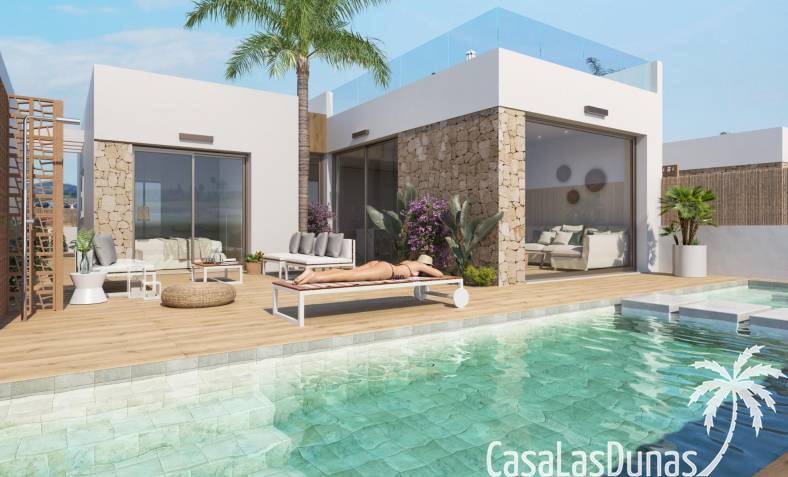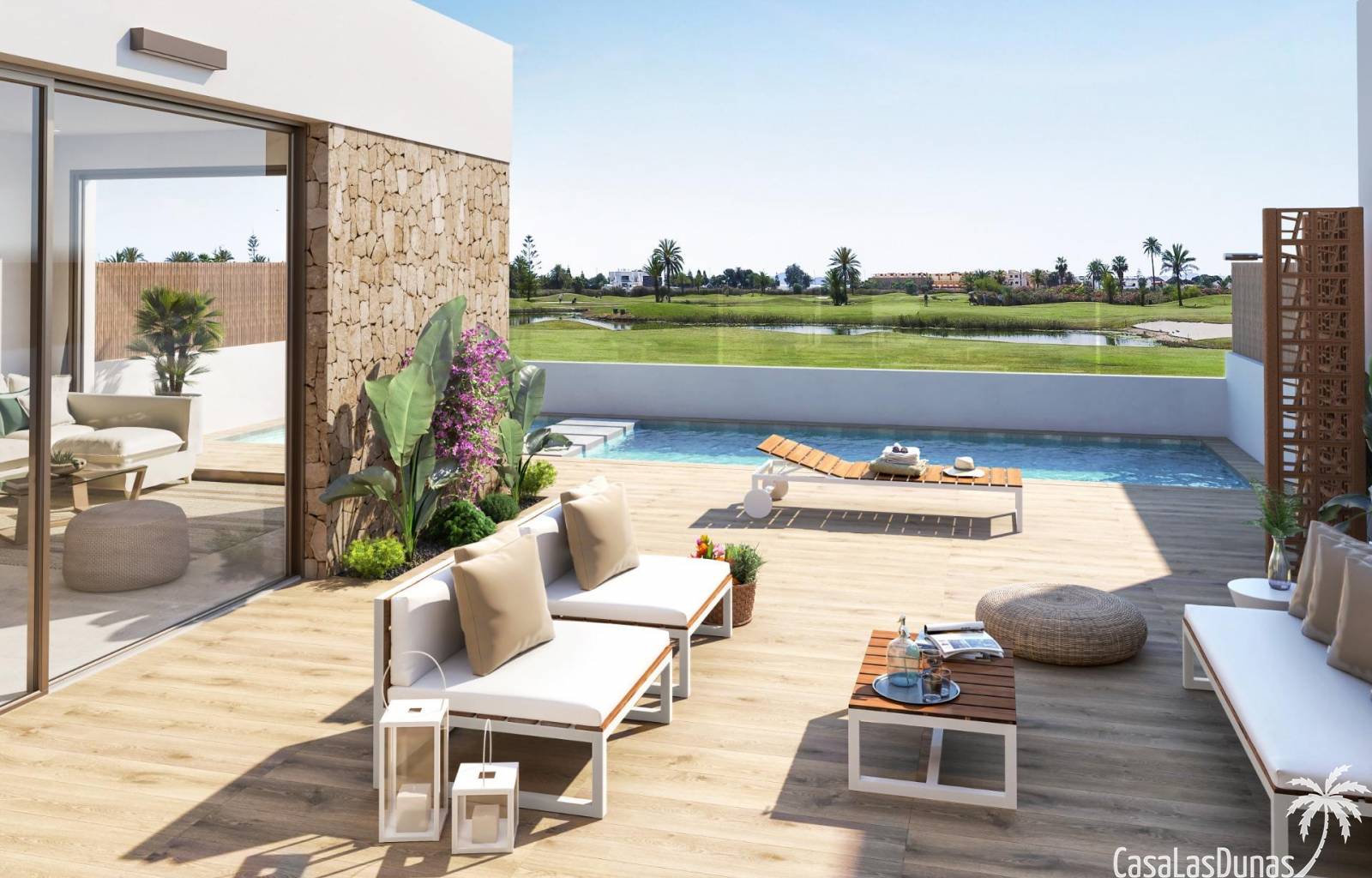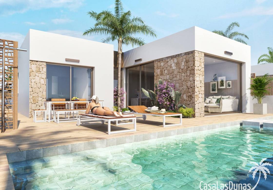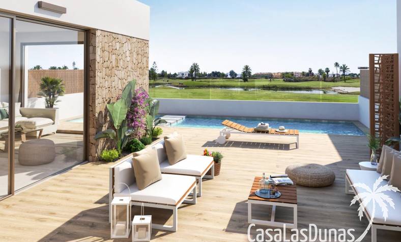 Each home is designed with a modern and functional layout , high-quality finishes, and attention to comfort. The villas feature a private plot with a garden, swimming pool, and the option of a private solarium . From all homes, you'll enjoy spectacular views of the golf course and the Mar Menor .