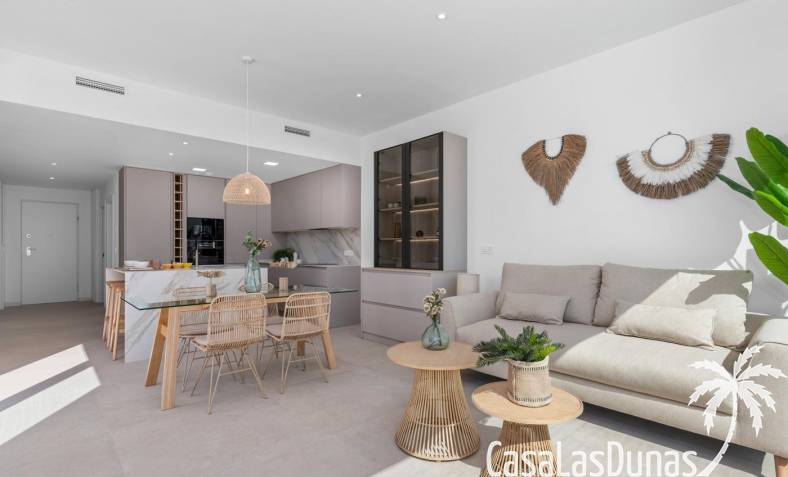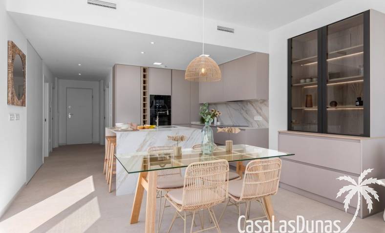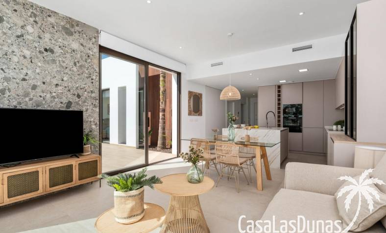 This new development in Los Alcázares offers a unique opportunity to enjoy a modern Mediterranean lifestyle. Located just 1.2 km from the beach and right next to the prestigious La Serena Golf Course , this project combines coastal living with the tranquility and beauty of a golf resort. The charming town center of Los Alcázares is within walking distance, with shops, restaurants, cafes, and all daily amenities within easy reach.