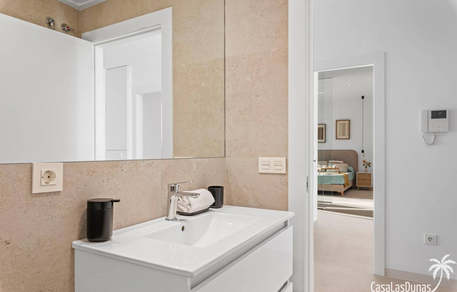 La Serena Golf Course offers 16 challenging holes with water hazards and lush green fairways – a paradise for golf enthusiasts. At the same time, the center of Los Alcázares is within walking distance , as is the Mar Menor , Europe's largest saltwater lagoon. Residents can swim, sail, kitesurf, or simply relax on the soft sandy beach.