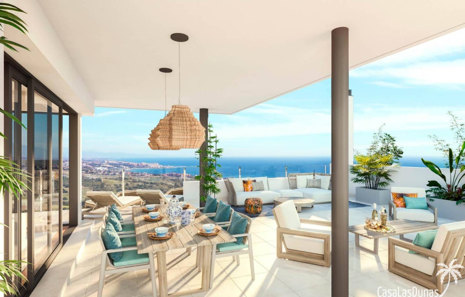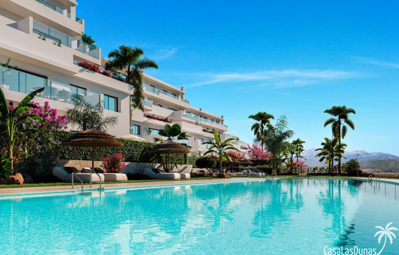 New Build residential complex of 51 apartments and penthouses with 2 and 3 bedrooms, spread over 6 modern-style blocks in Casares, on the Costa del Sol.