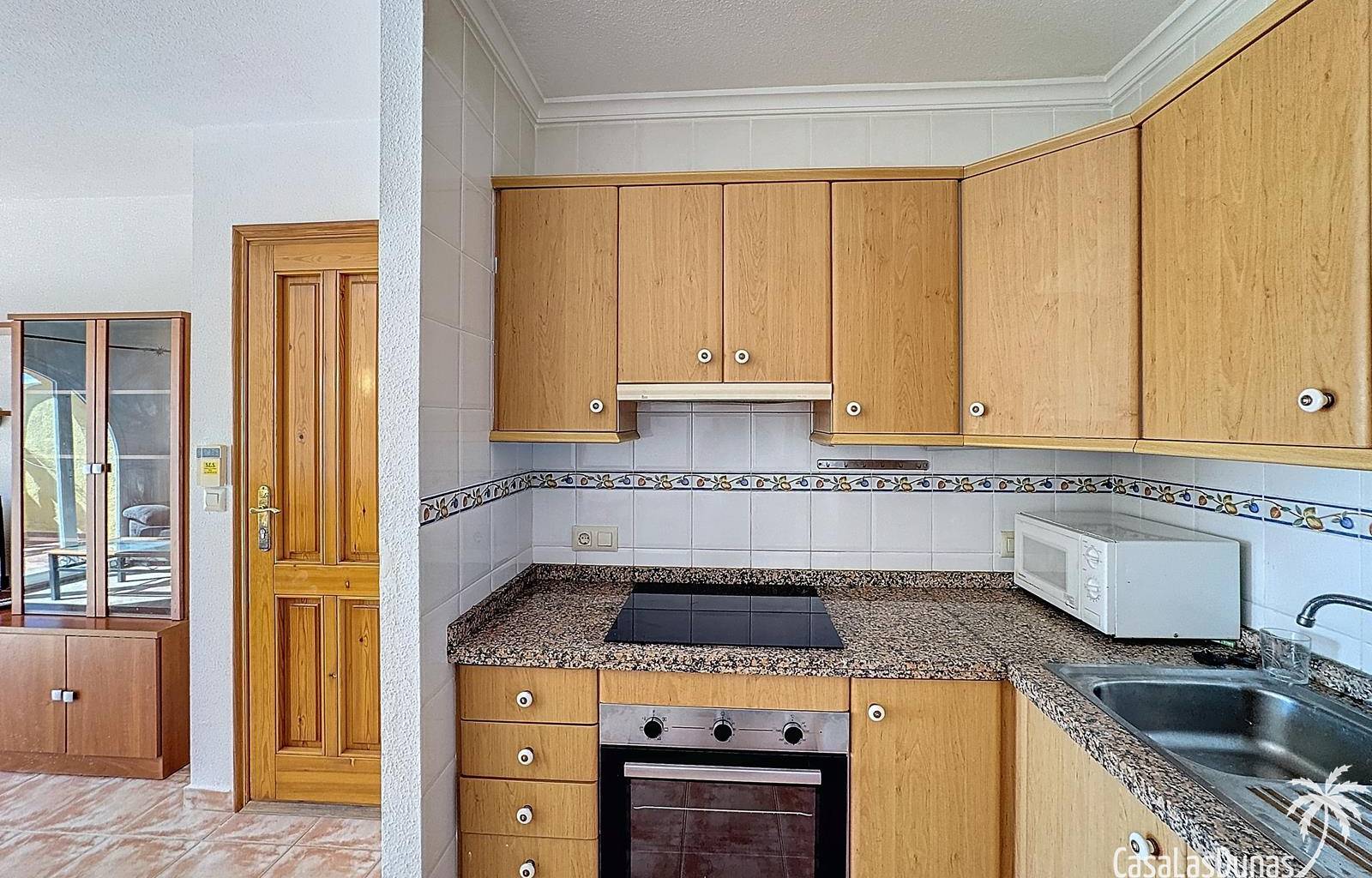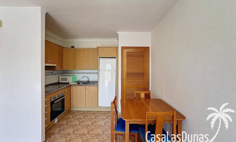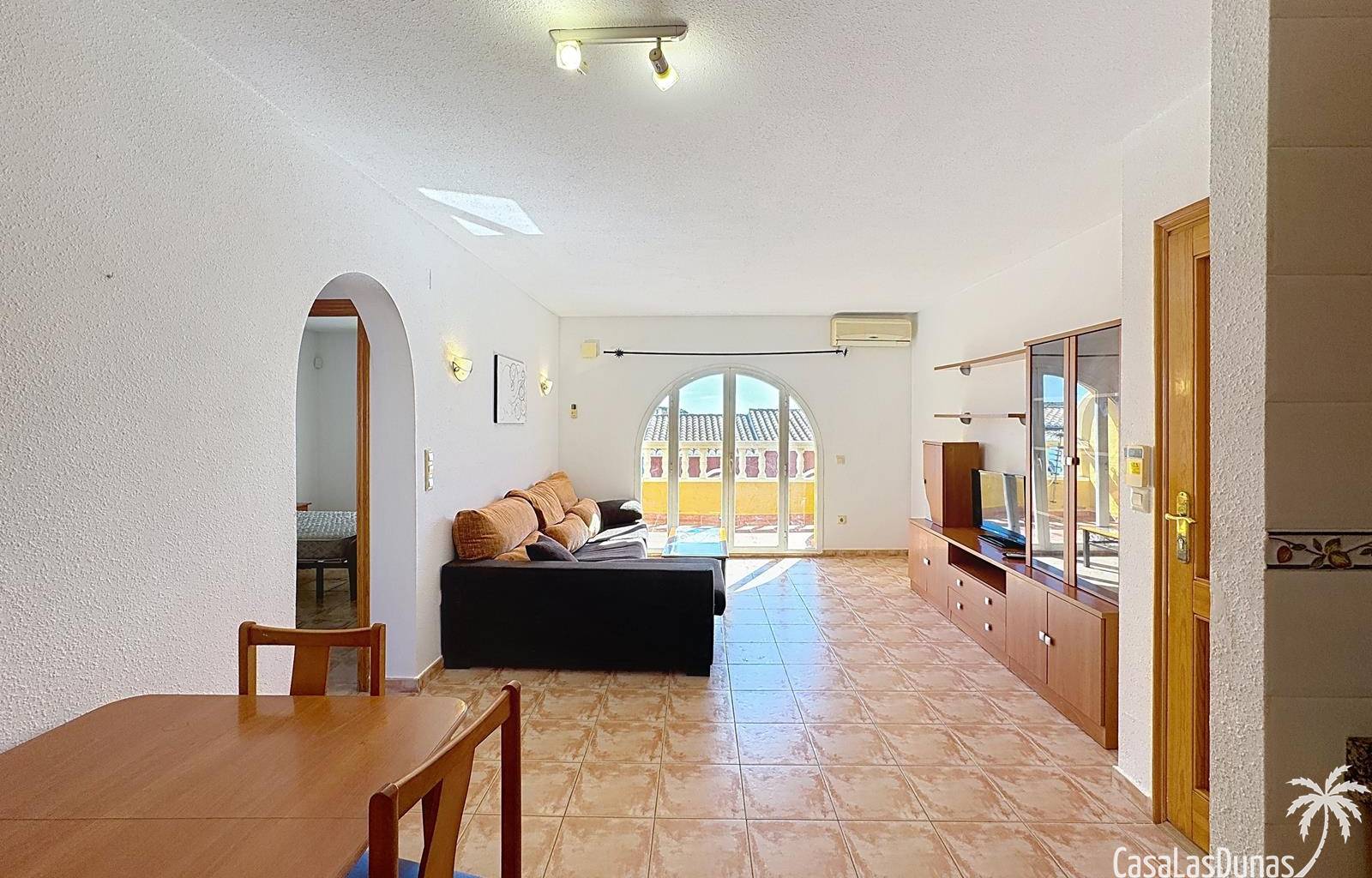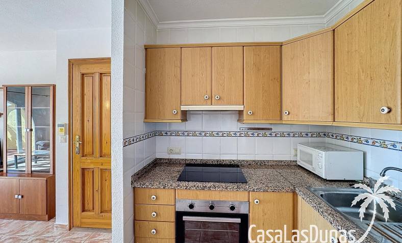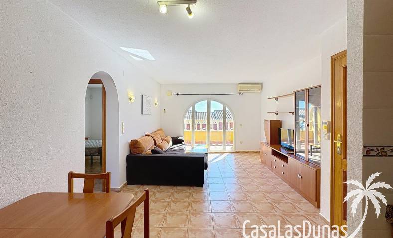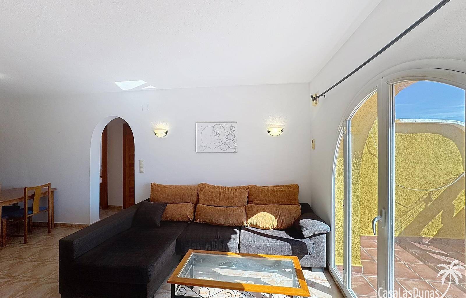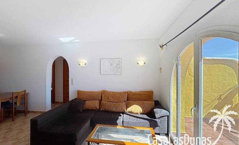 This apartment with beautiful sea views is located a short walk from the Pepe la Sal supermarket and some restaurants in the residential area of Cumbre del Sol. The apartment is located on the 1st and top floor and has a living/dining room with open kitchen and access to the open terrace, 2 bedrooms and 1 bathroom. There is also access to a large communal swimming pool.