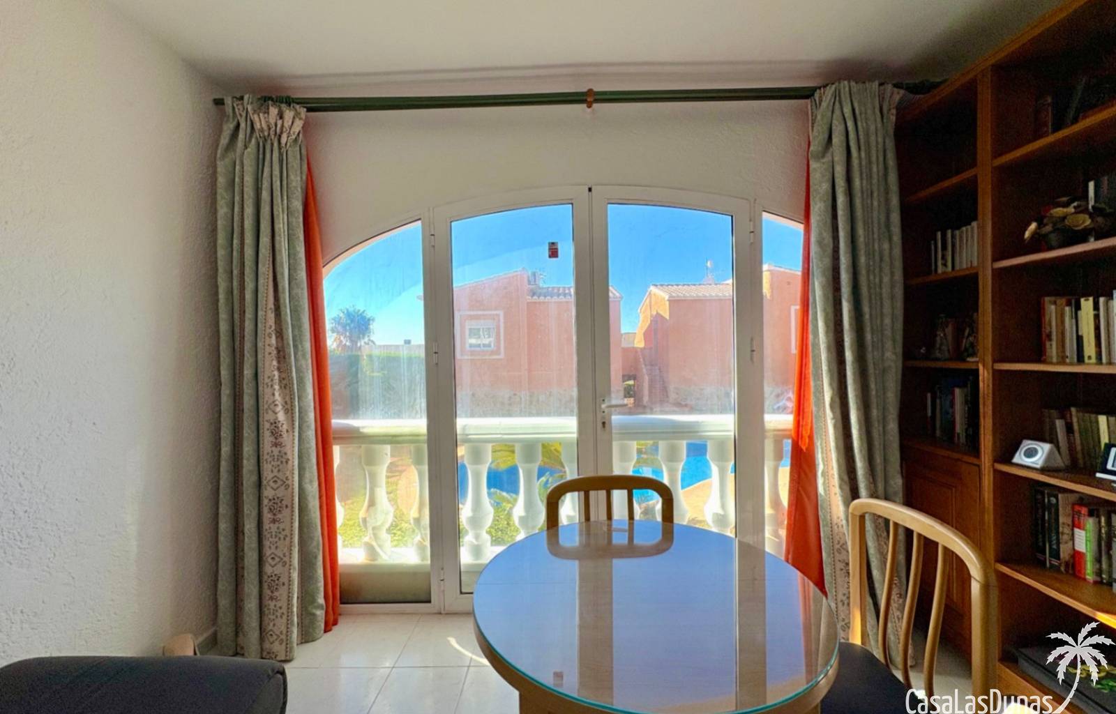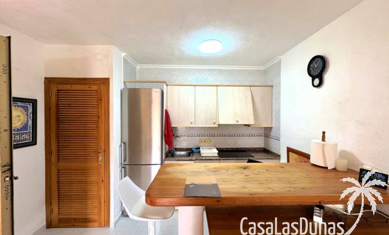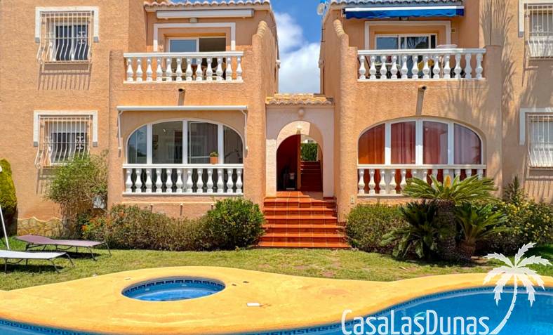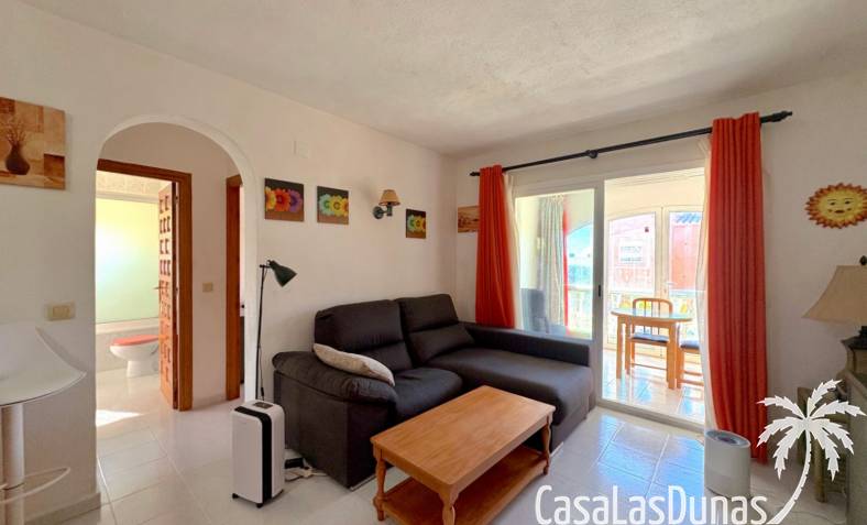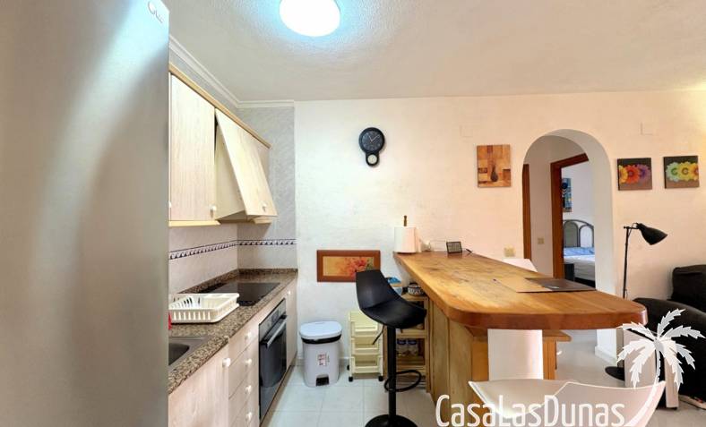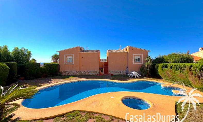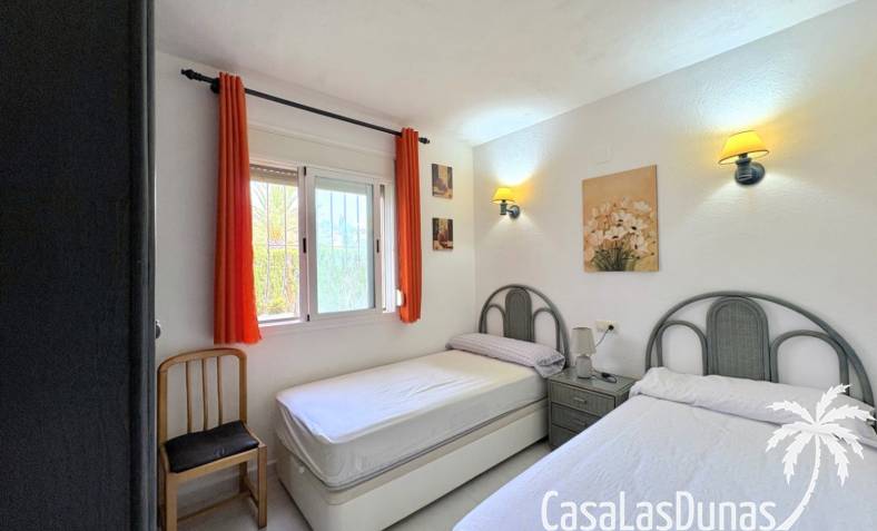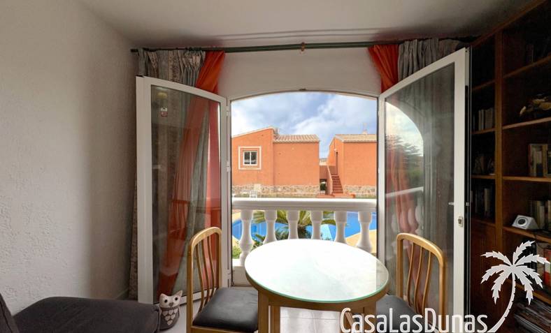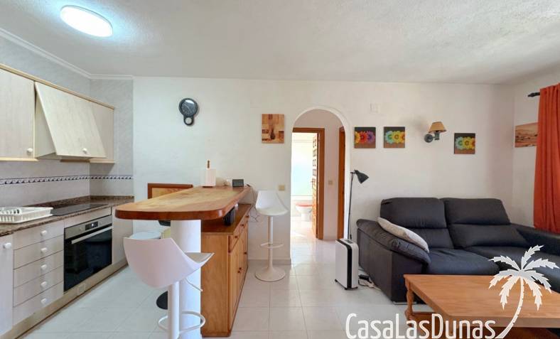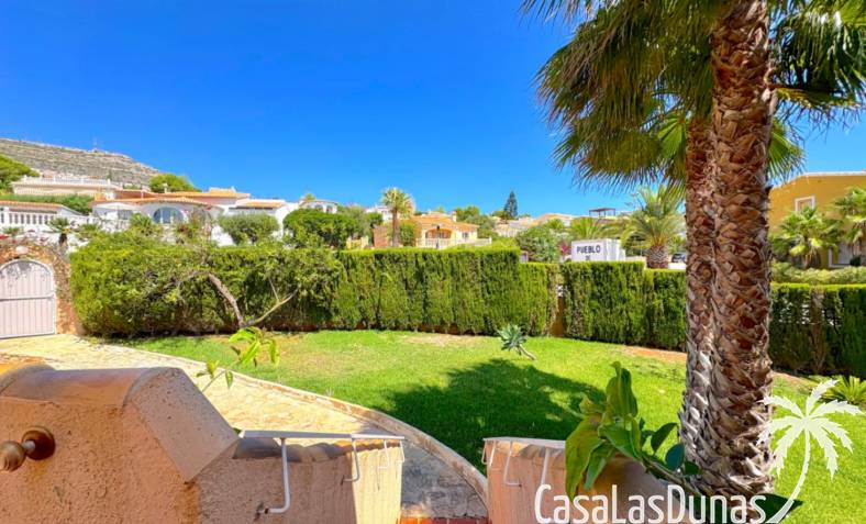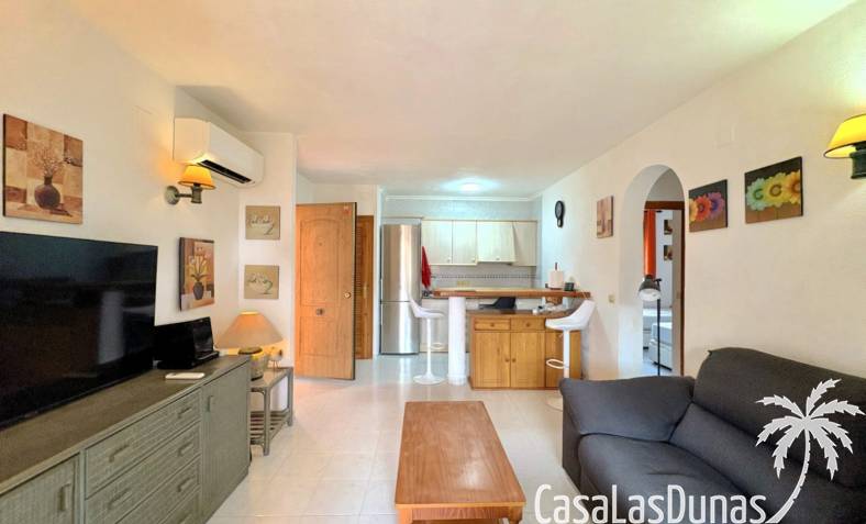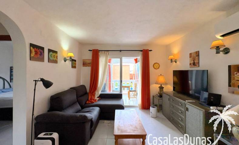 This apartment is located in a small community with a beautiful garden and swimming pool in the Cumbre del Sol residential area, a short walk from the Pepe la Sal supermarket and several restaurants. The ground-floor apartment features a living/dining room with an open-plan kitchen and access to a covered, glazed terrace, two bedrooms, and one bathroom.