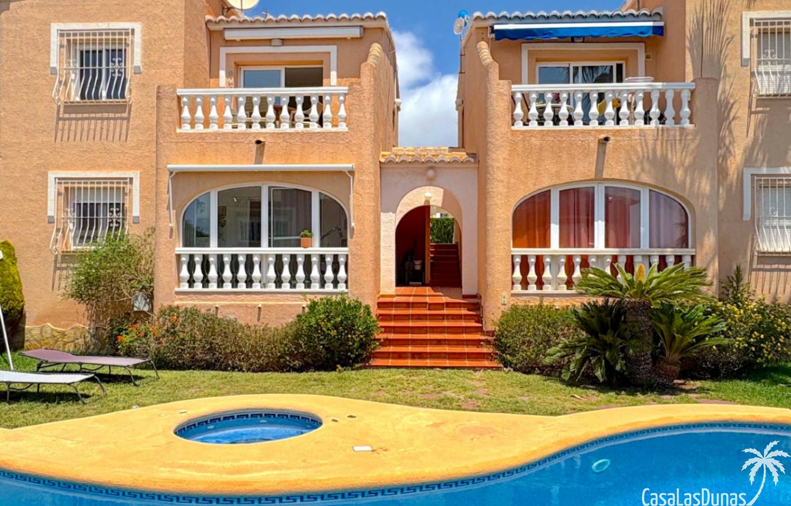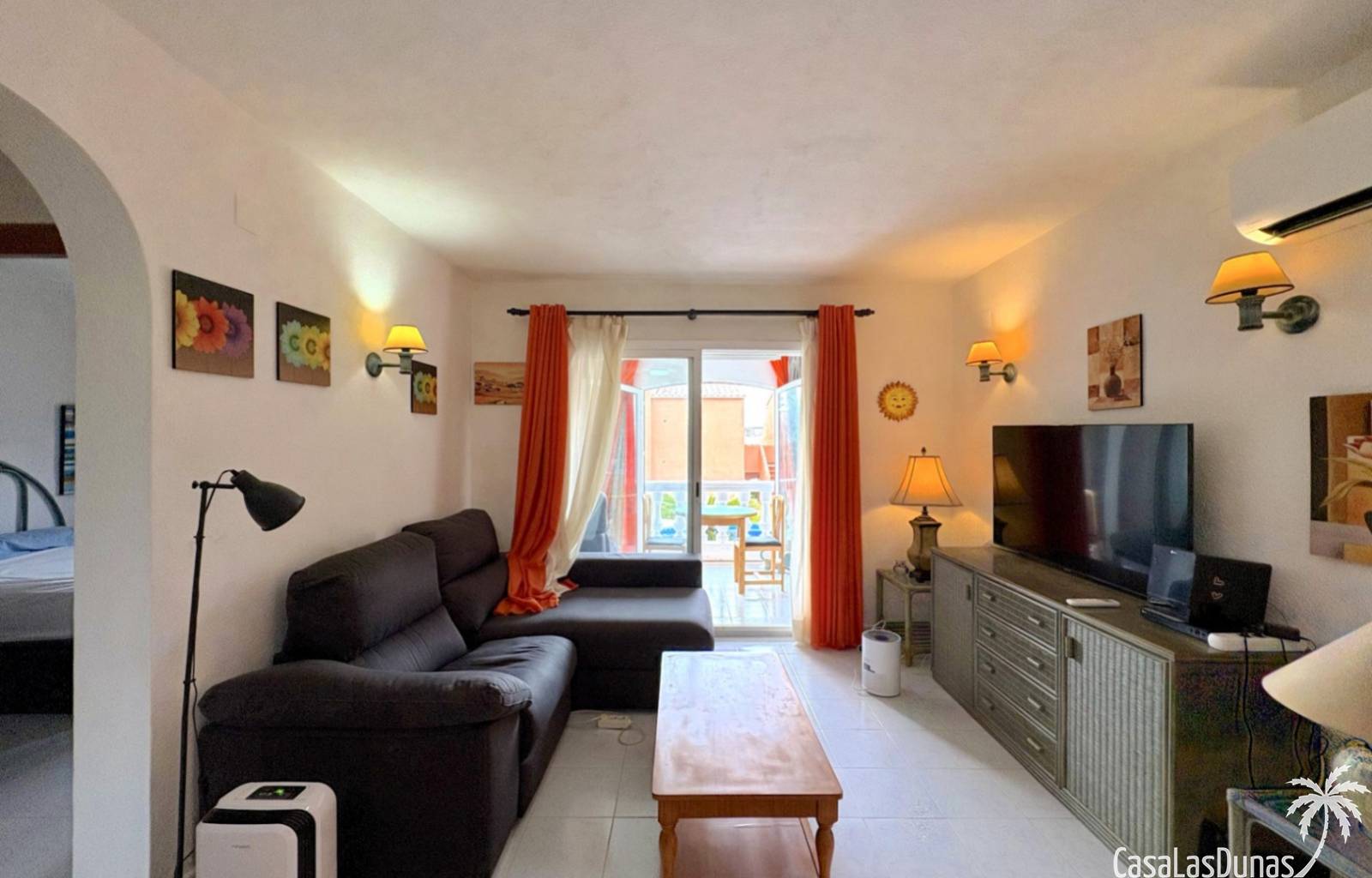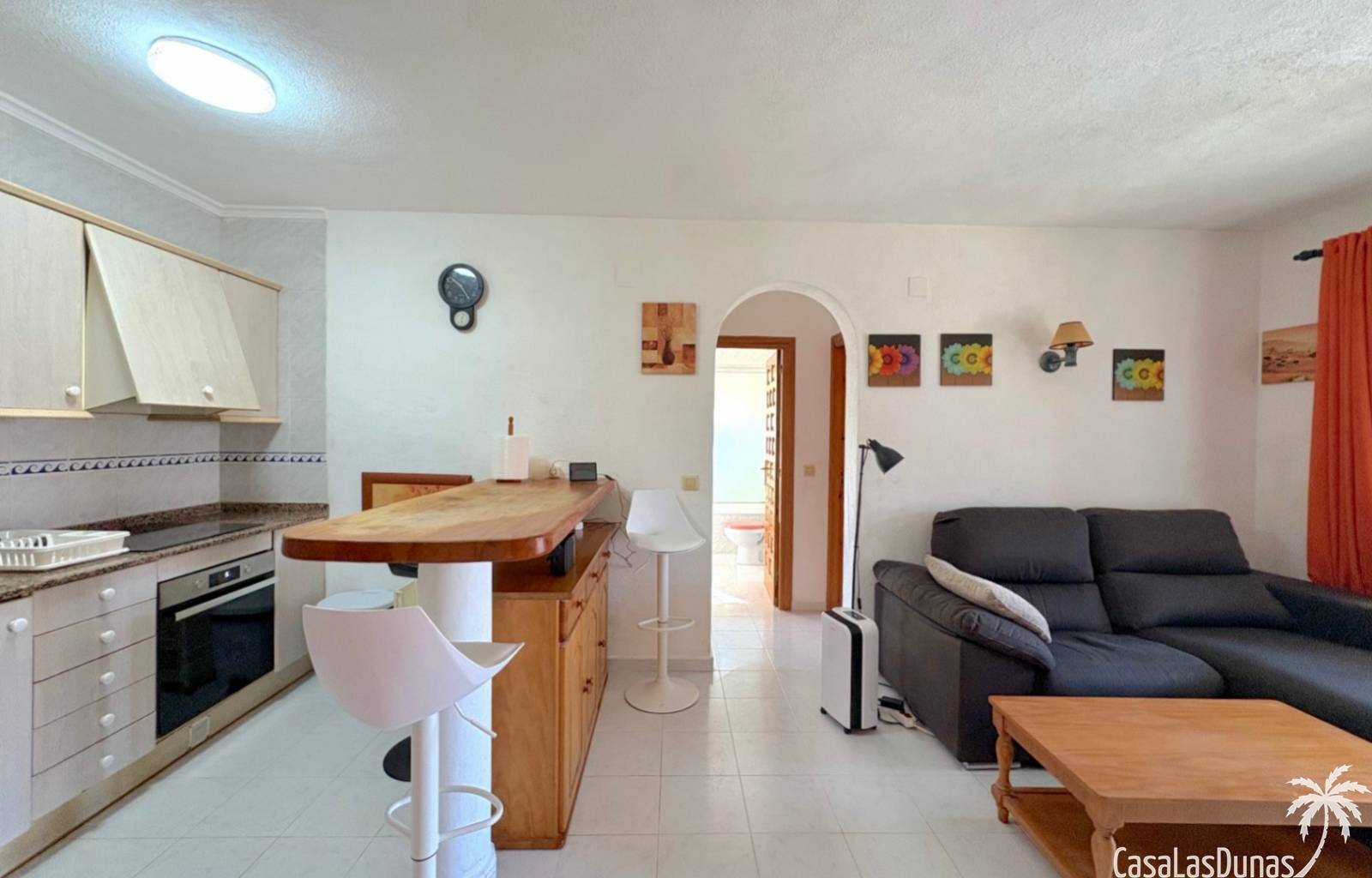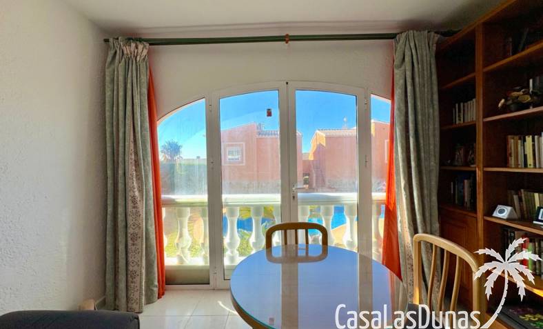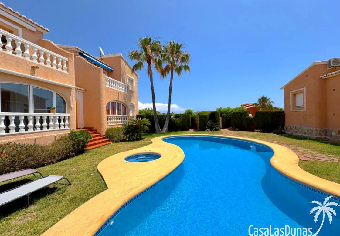 This apartment is located in a small community with a beautiful garden and swimming pool in the Cumbre del Sol residential area, a short walk from the Pepe la Sal supermarket and several restaurants. The ground-floor apartment features a living/dining room with an open-plan kitchen and access to a covered, glazed terrace, two bedrooms, and one bathroom.
