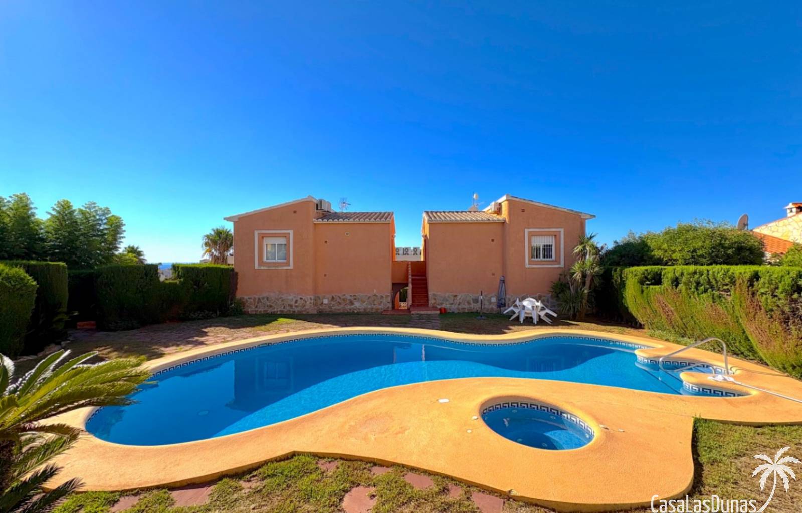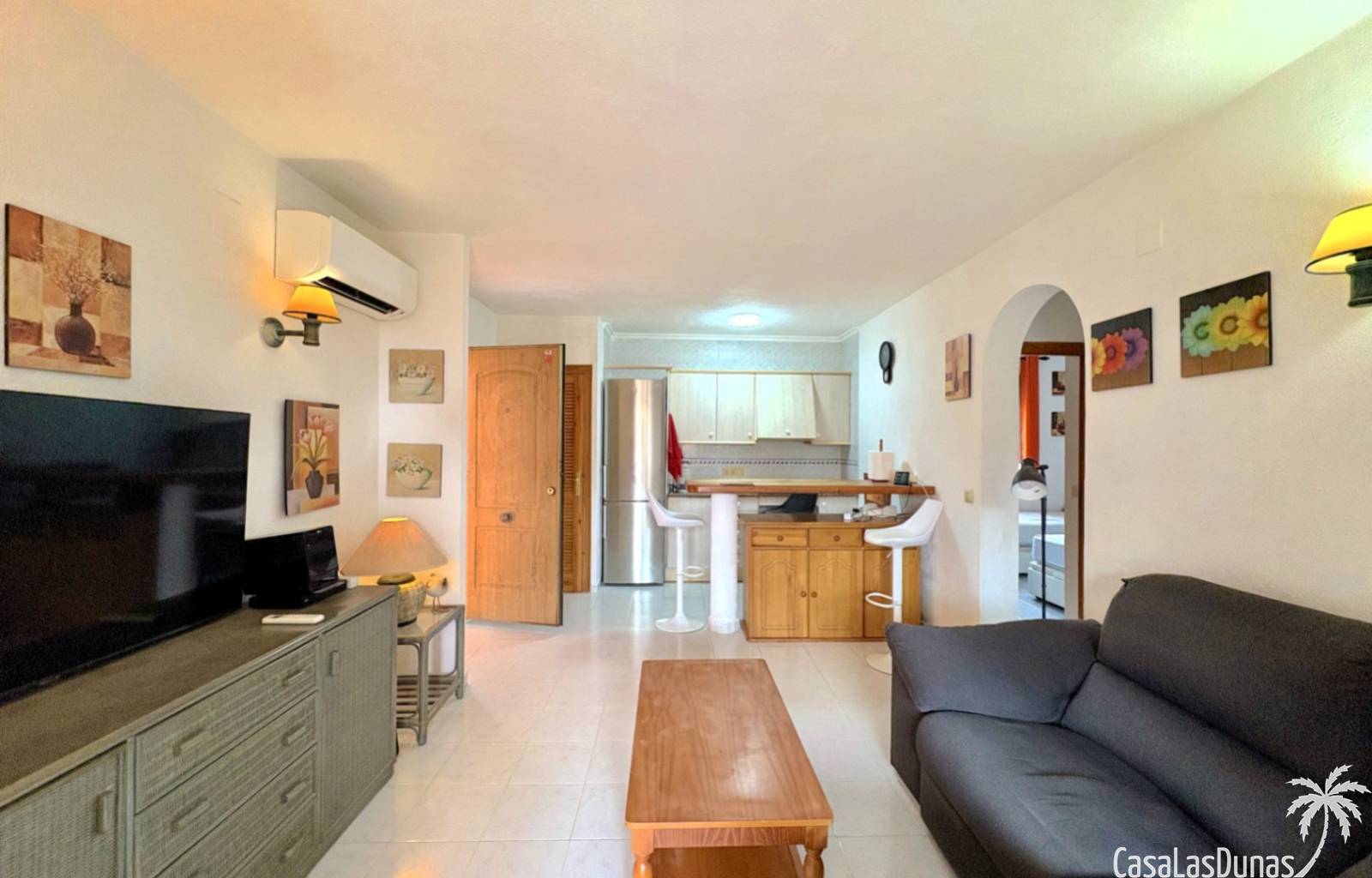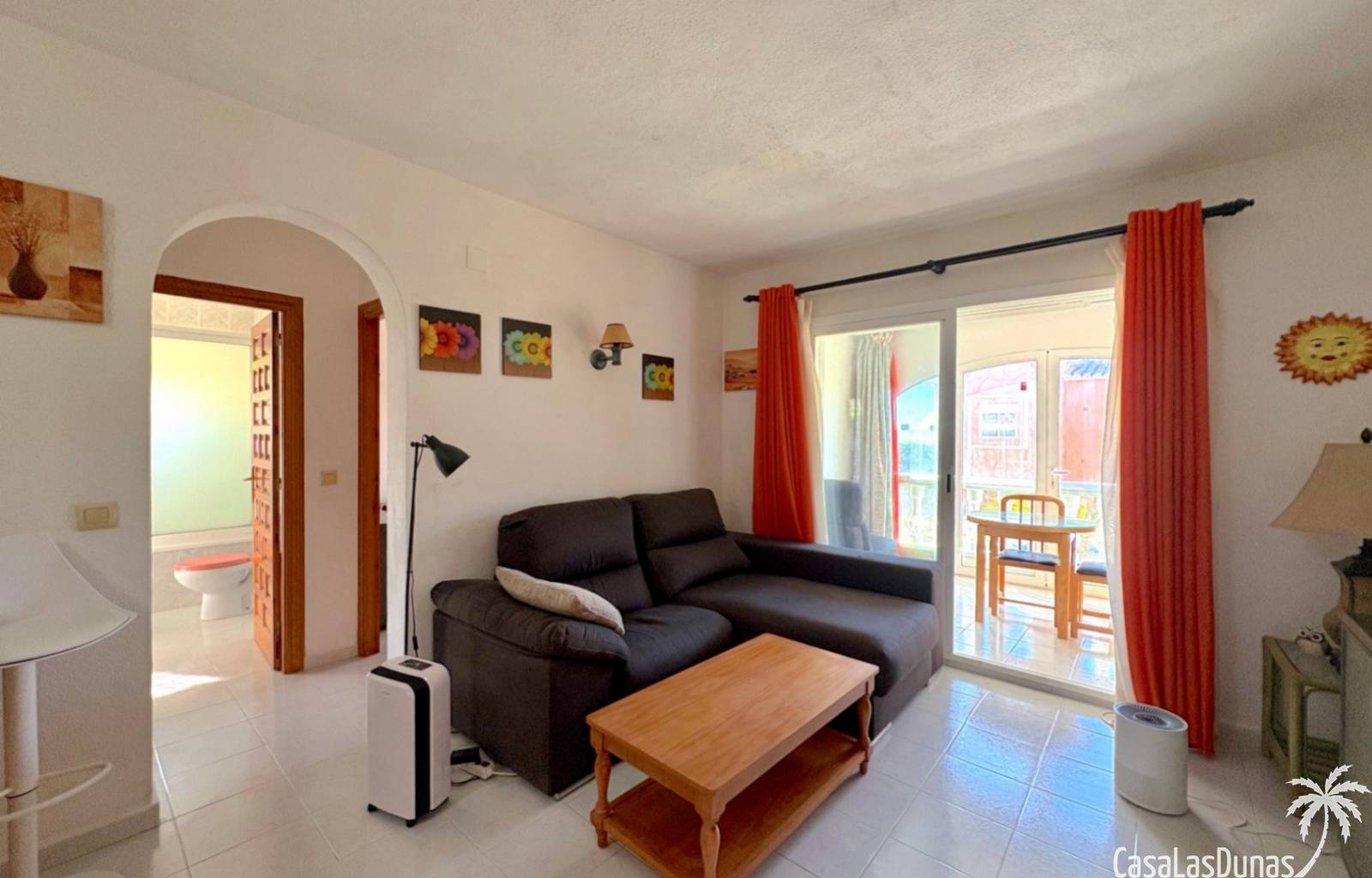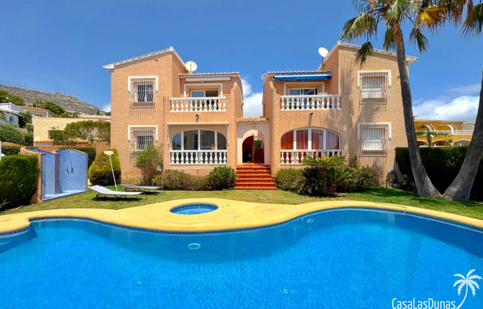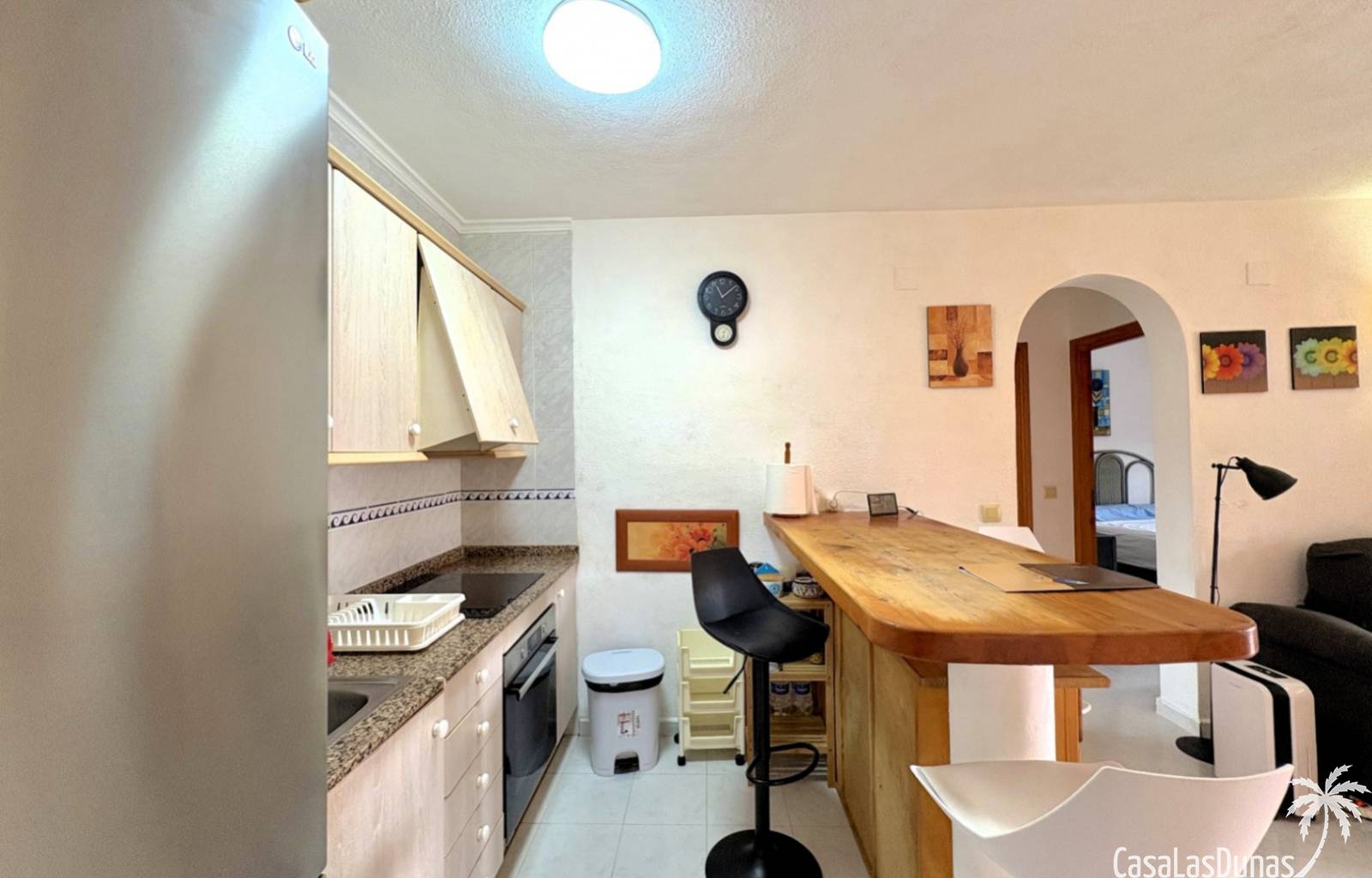 This apartment is located in a small community with a beautiful garden and swimming pool in the Cumbre del Sol residential area, a short walk from the Pepe la Sal supermarket and several restaurants. The ground-floor apartment features a living/dining room with an open-plan kitchen and access to a covered, glazed terrace, two bedrooms, and one bathroom.