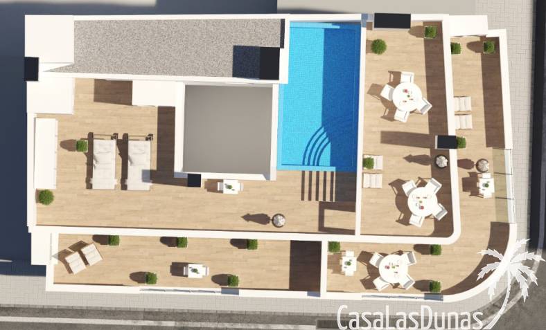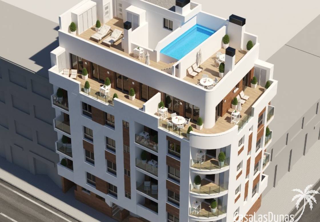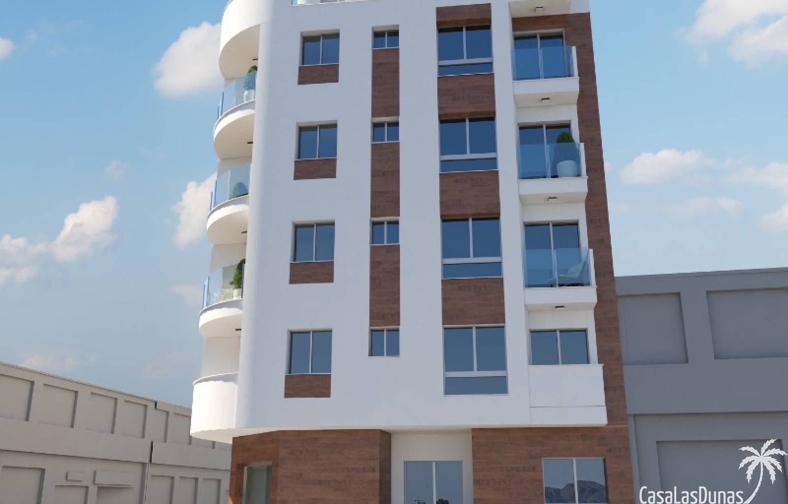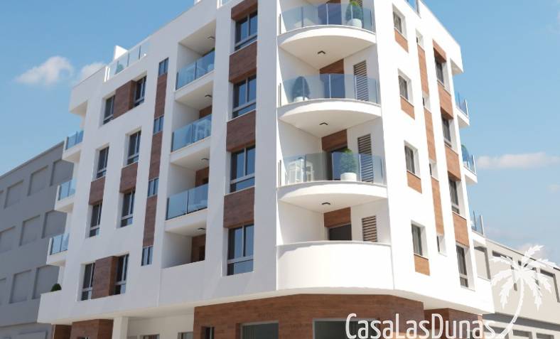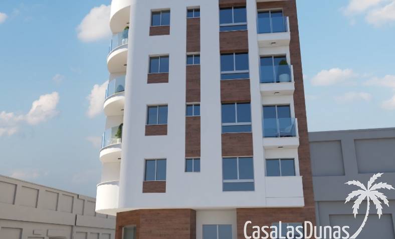 New apartments for sale in the center in TorreviejaNew apartments are situated only few minute from the beach (Playa del Cura) and close to the center and all amenities of Torrevieja.For sale apartments of 2 bedrooms and 2 bathrooms, living room, american style kitchen, terrace and community pool.Torrevieja is a tourist town on the Costa Blanca, a favorable climate and environmentally friendly nature with two salt lakes located within the city limits. The city stretches along the coast and therefore all the sandy beaches of the city are within walking distance. Infrastructure of the city perfectly developed. There are shopping centers, sports complexes, a nature preserve, many bars and restaurants.