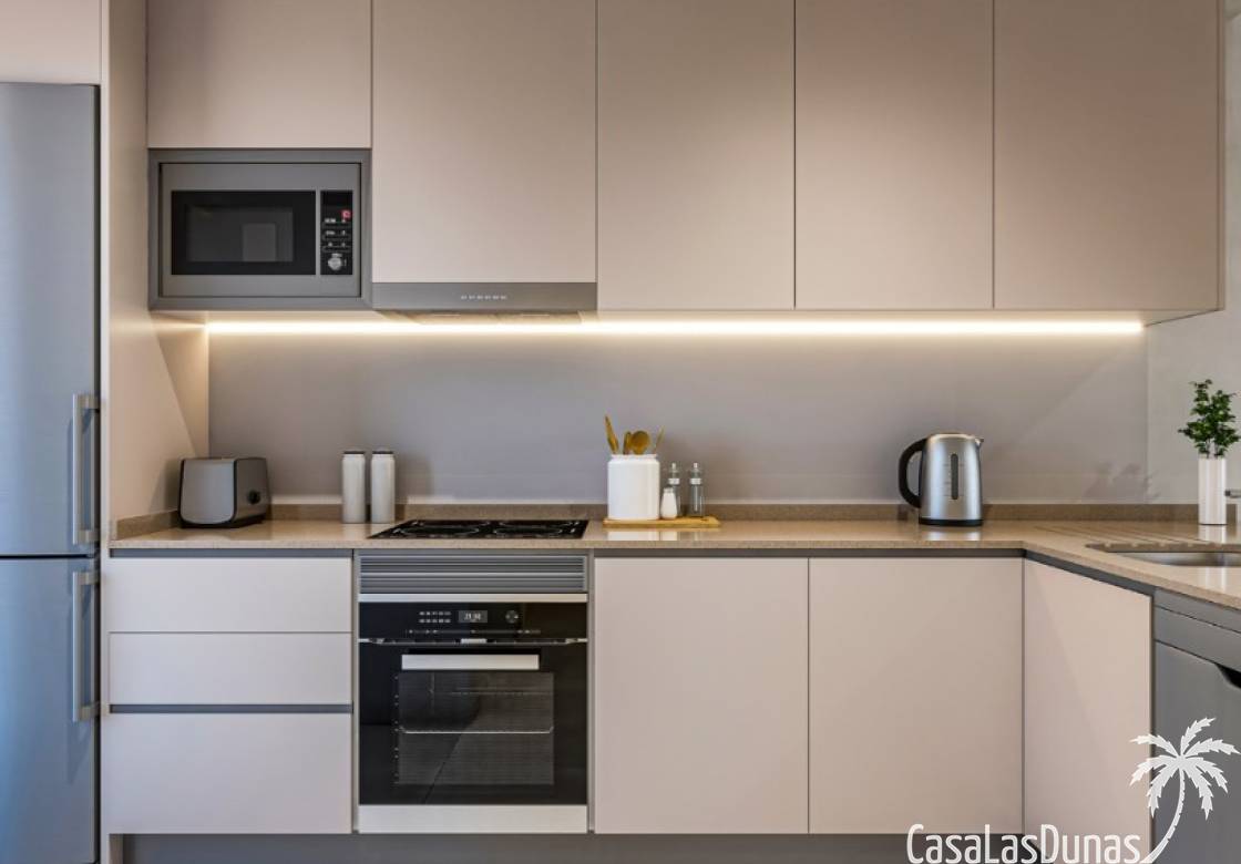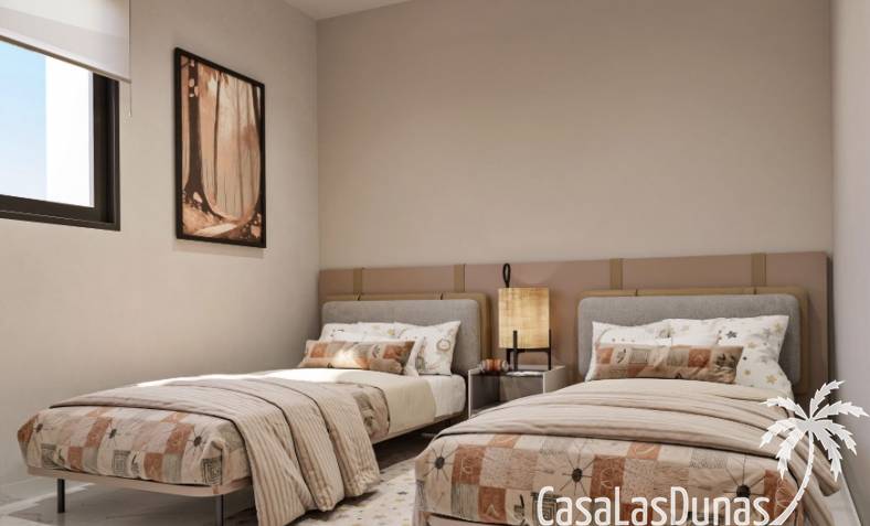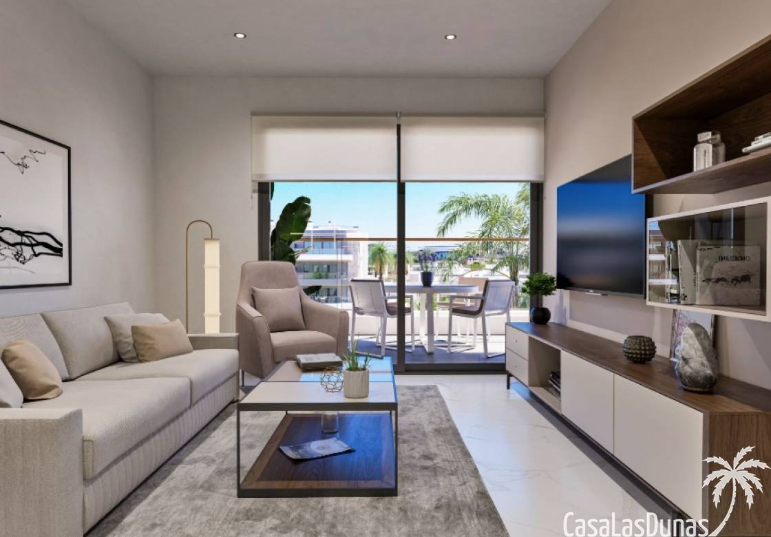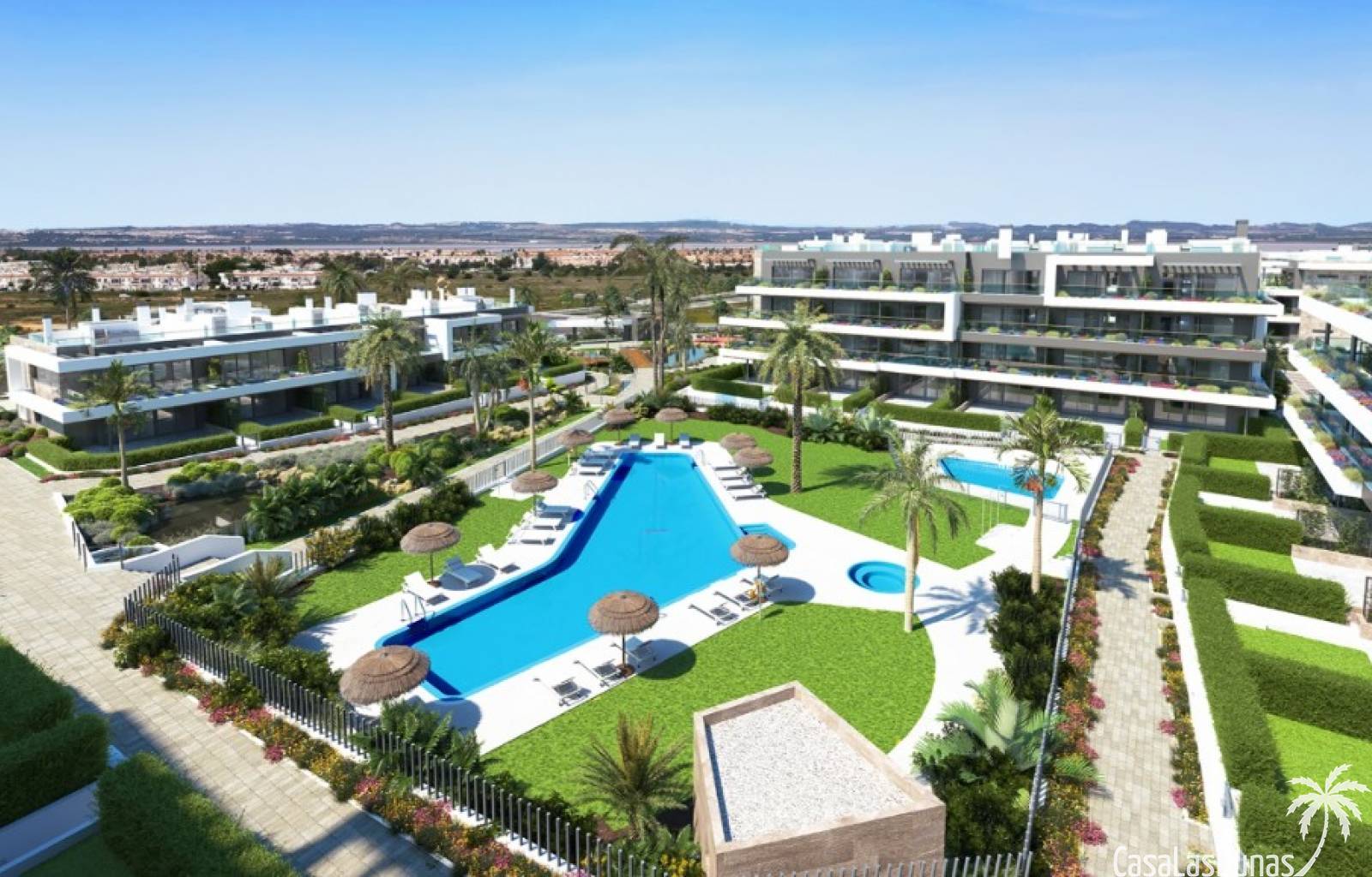 New apartments for sale in TorreviejaNew apartments in a residential complex are located in a magnificent natural área, between Lagunas de La Mata Natural Park and Laguna Rosa in Torrevieja. Apartments with 3 bedrooms, 2 bathrooms, living room, kitchen and large terrace. Apartments on the ground floors have large private garden, on the upper - a huge solarium. Optional: parking and storage.The communal areas include 2 children's pool, 2 heated jacuzzi, 2 pools, children's play area, boules courts and green garden areas with fragrant plants, palm trees, lakes, fountains, and paths.Only a few minutes by car you will reach beautiful sandy beaches, the city center, parks and other activities.Torrevieja is a tourist city in the south of the Costa Blanca, a popular place for recreation and life for the inhabitants of northern Europe. Here you will find the mild Mediterranean climate and more than 320 days a year the sun shines.