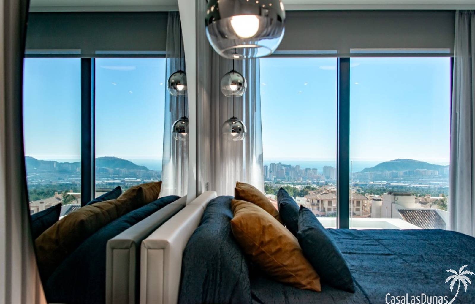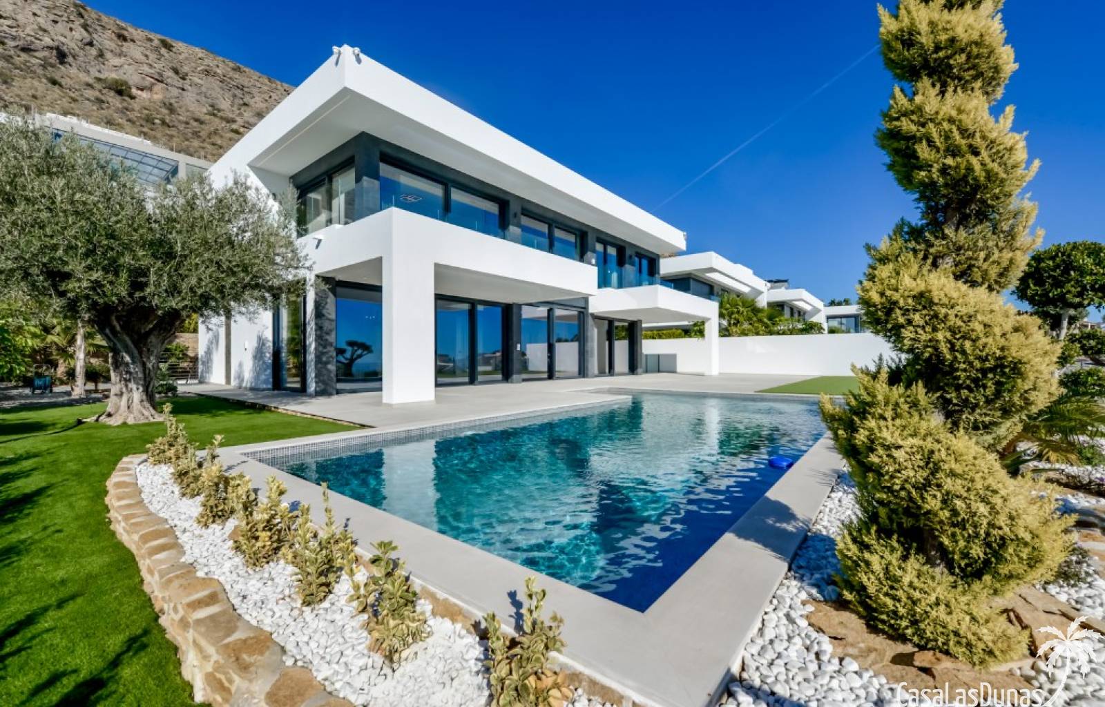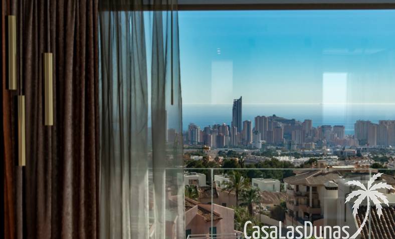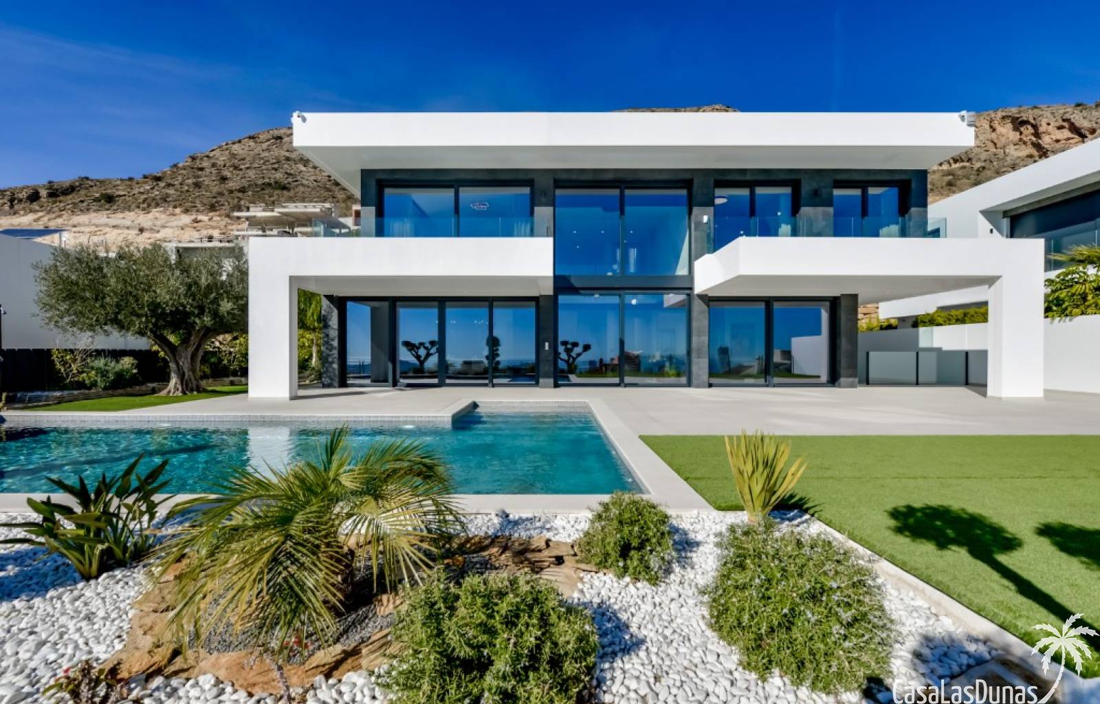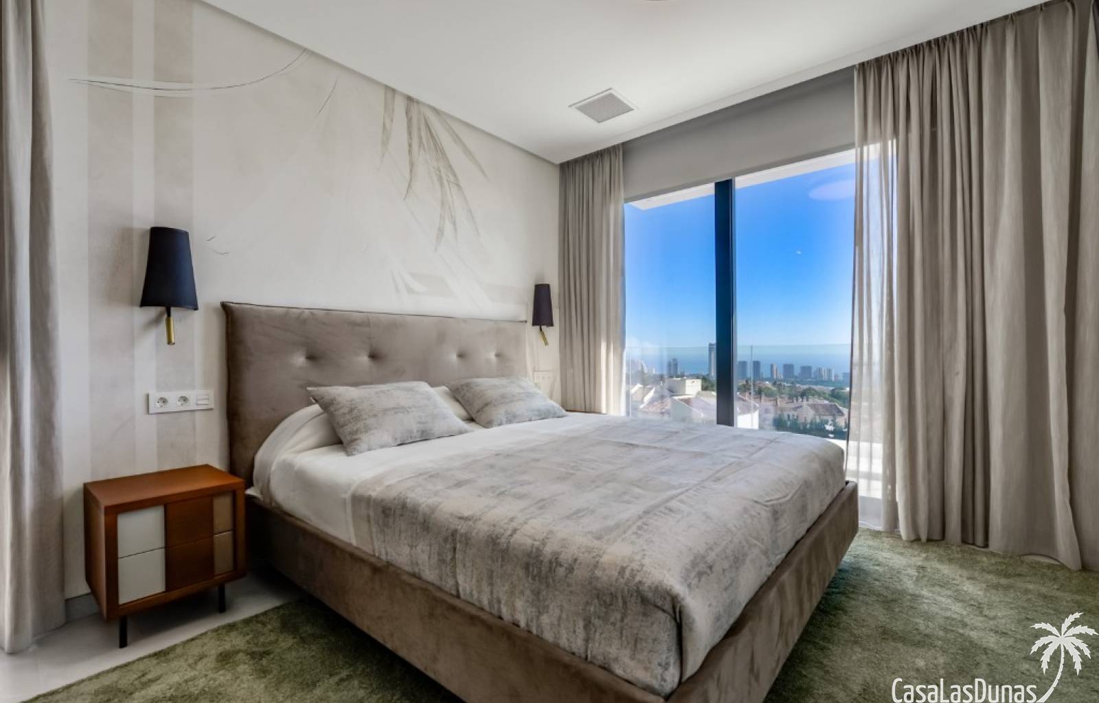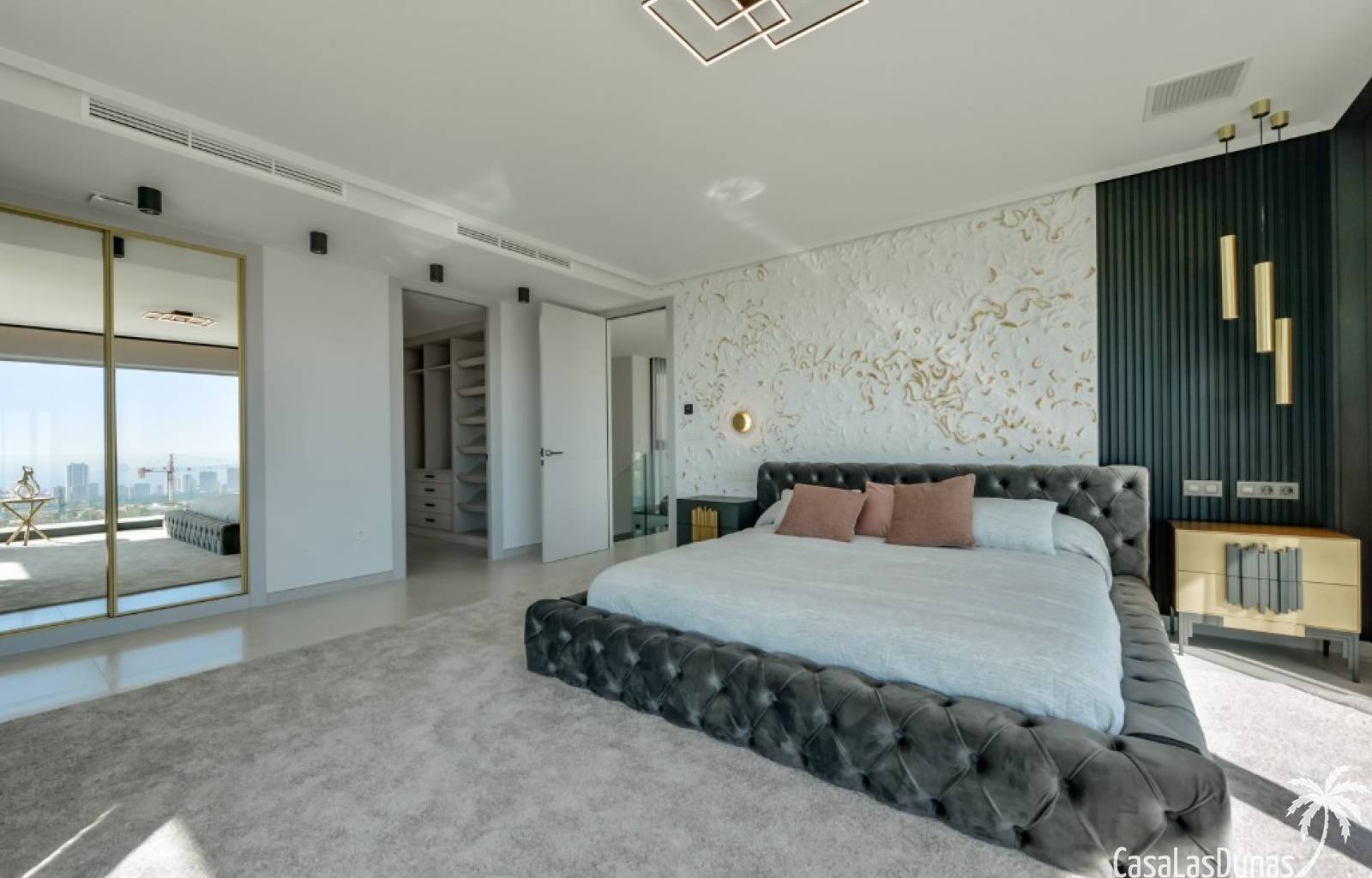 New build villa with sea view for sale in Finestrat.We offer new build luxury villa with 8 bedrooms, 5 bathrooms, large living room about 92 m2, kitchen, terrace, lovely outside garden with private pool.The construction works is carried out using only the highest quality materials and finishing works such as: double glazed aluminium windows, shower plates in the bathrooms, top quality porcelain used for the floor and interiors, air conditioning, domotic system, garage for 4 vehicles with automatic doors, garden completely finished with automatic irrigation and much more extras.The villa is located a few kilometers from the popular city of entertainment in Costa Blanca - Benidorm. Nearby you will find shops, supermarkets, banks, restaurants, schools. But if you want entertainment, then just a few minutes away golf, casinos, shopping malls, water parks, discos and much more great entertainment. Only 45 km from Alicante airport. Good choice to live in Spain all year around.