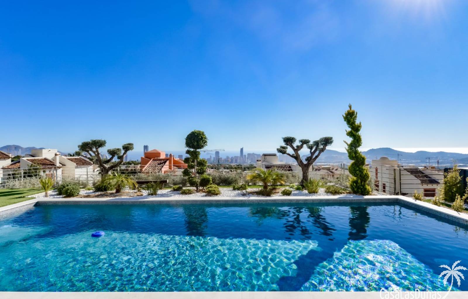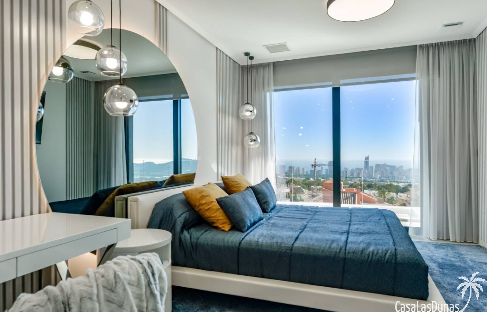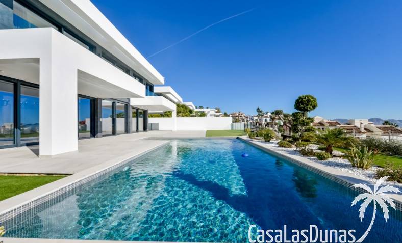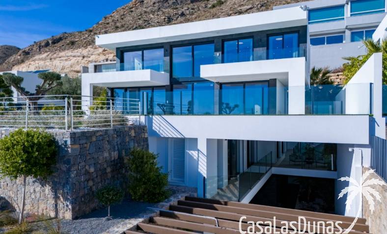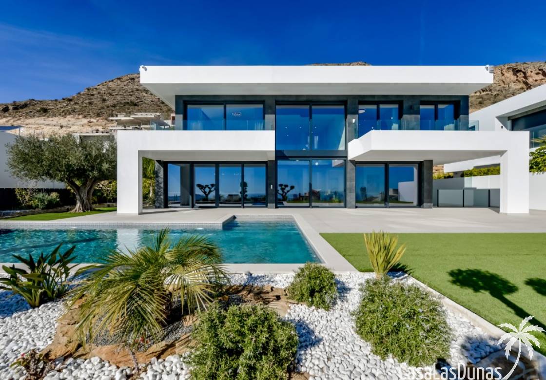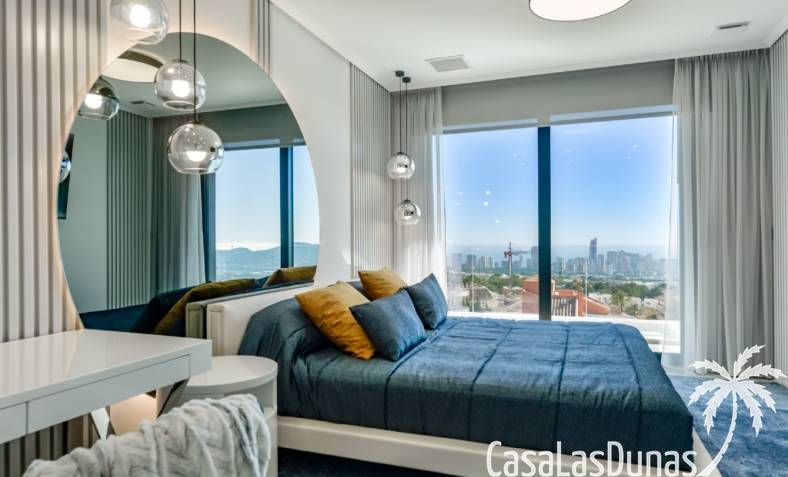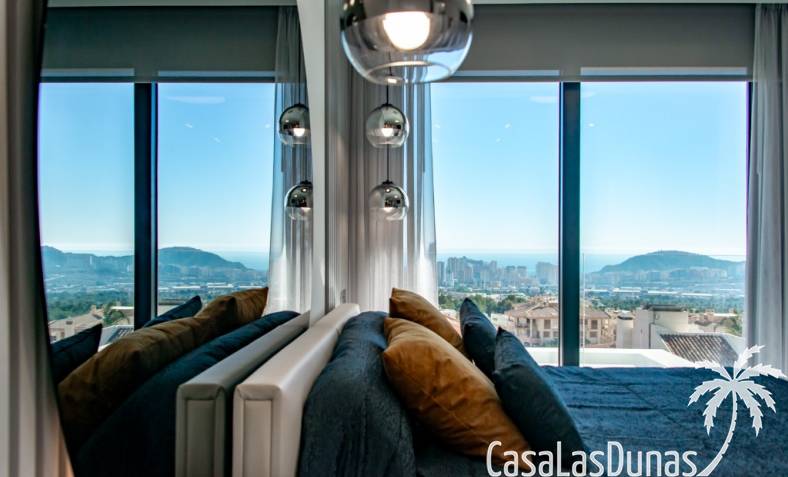 New build villa with sea view for sale in Finestrat.We offer new build luxury villa with 8 bedrooms, 5 bathrooms, large living room about 92 m2, kitchen, terrace, lovely outside garden with private pool.The construction works is carried out using only the highest quality materials and finishing works such as: double glazed aluminium windows, shower plates in the bathrooms, top quality porcelain used for the floor and interiors, air conditioning, domotic system, garage for 4 vehicles with automatic doors, garden completely finished with automatic irrigation and much more extras.The villa is located a few kilometers from the popular city of entertainment in Costa Blanca - Benidorm. Nearby you will find shops, supermarkets, banks, restaurants, schools. But if you want entertainment, then just a few minutes away golf, casinos, shopping malls, water parks, discos and much more great entertainment. Only 45 km from Alicante airport. Good choice to live in Spain all year around.