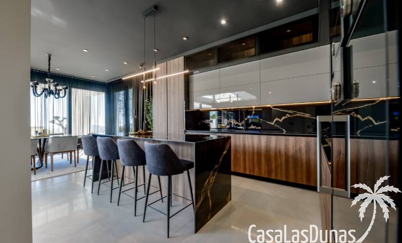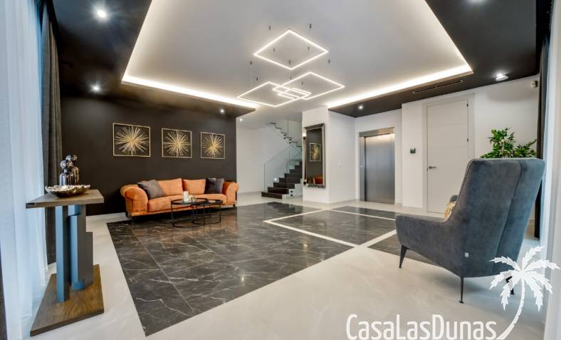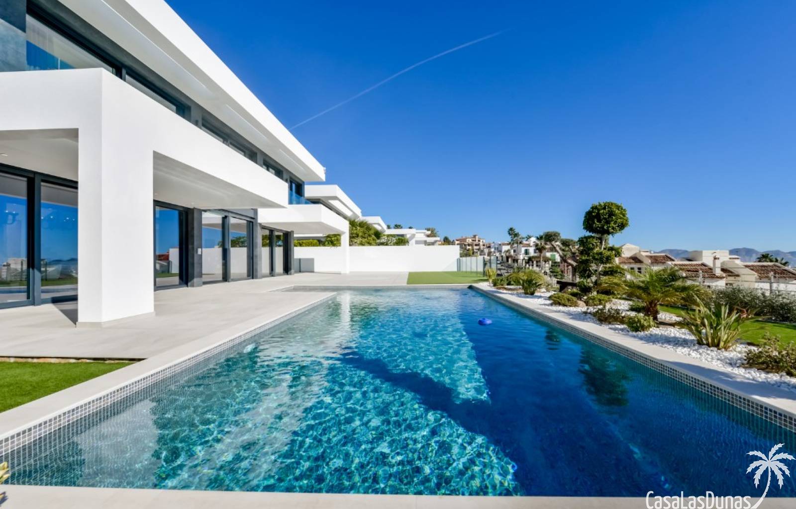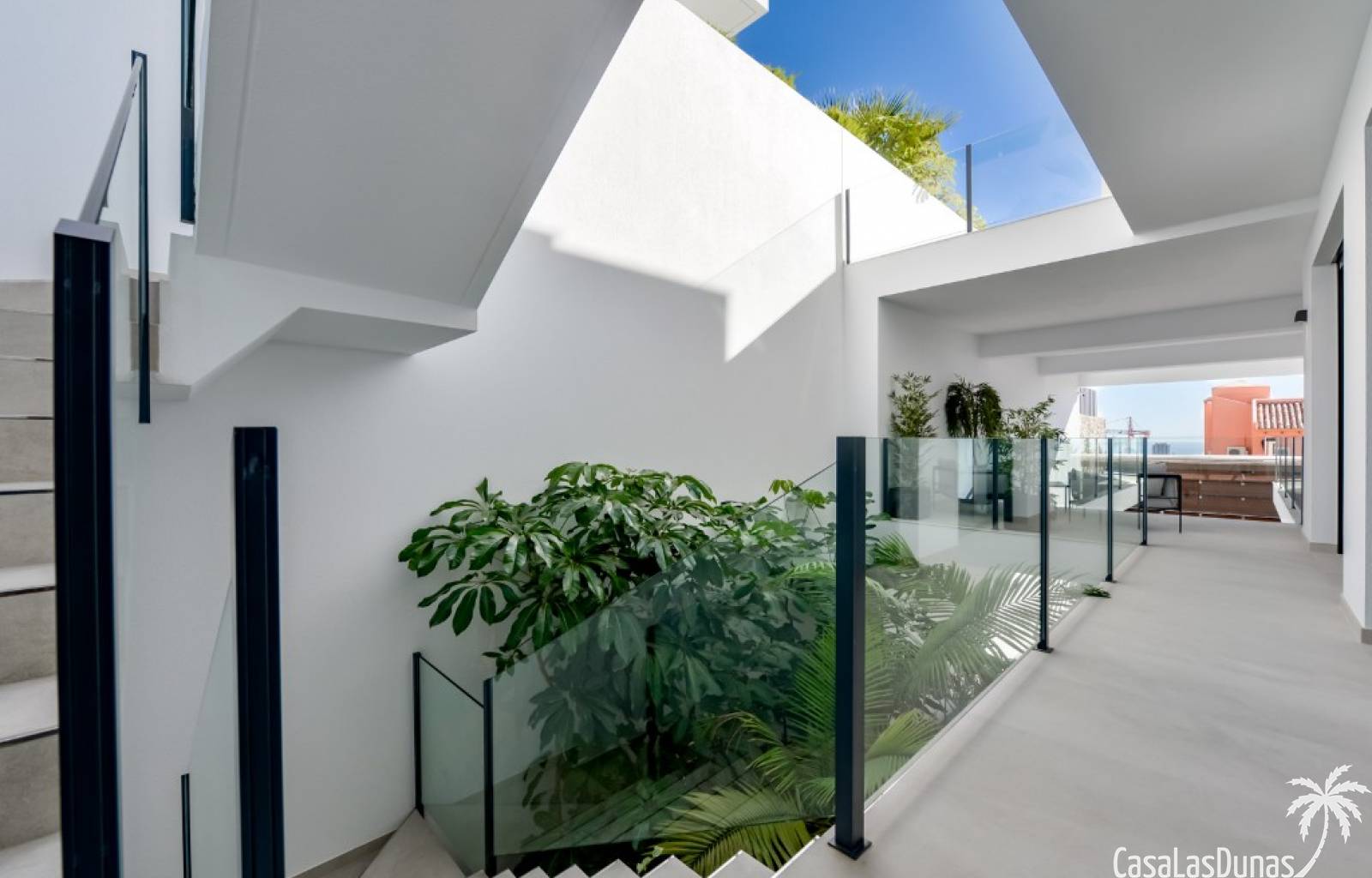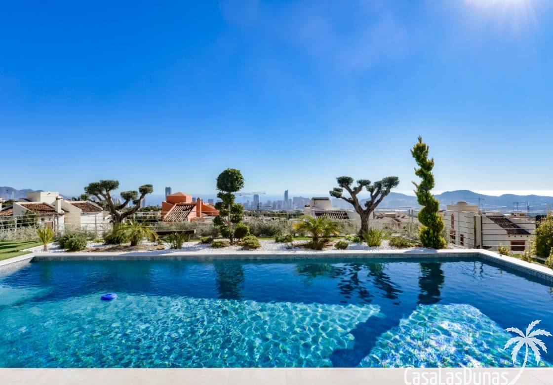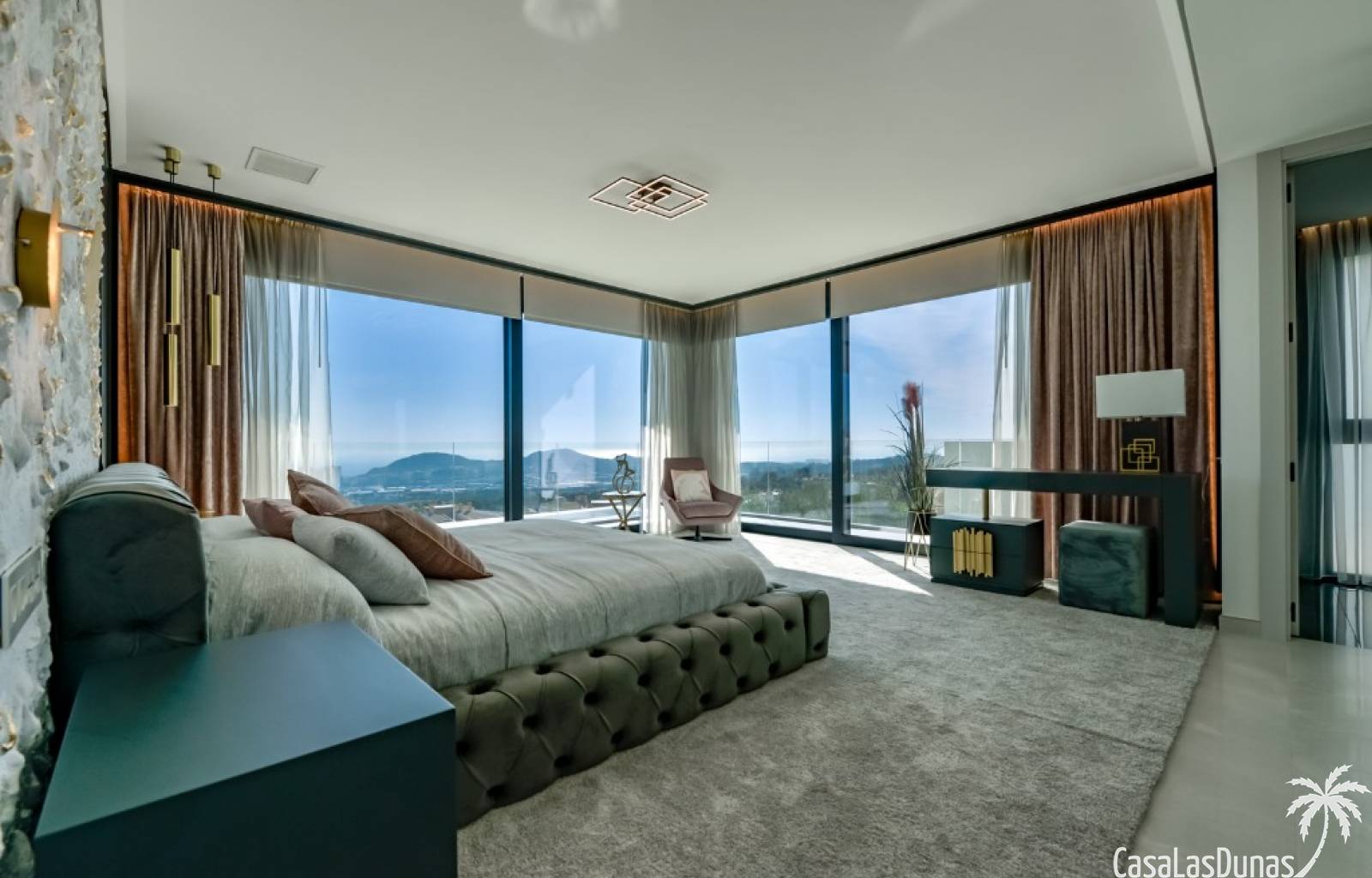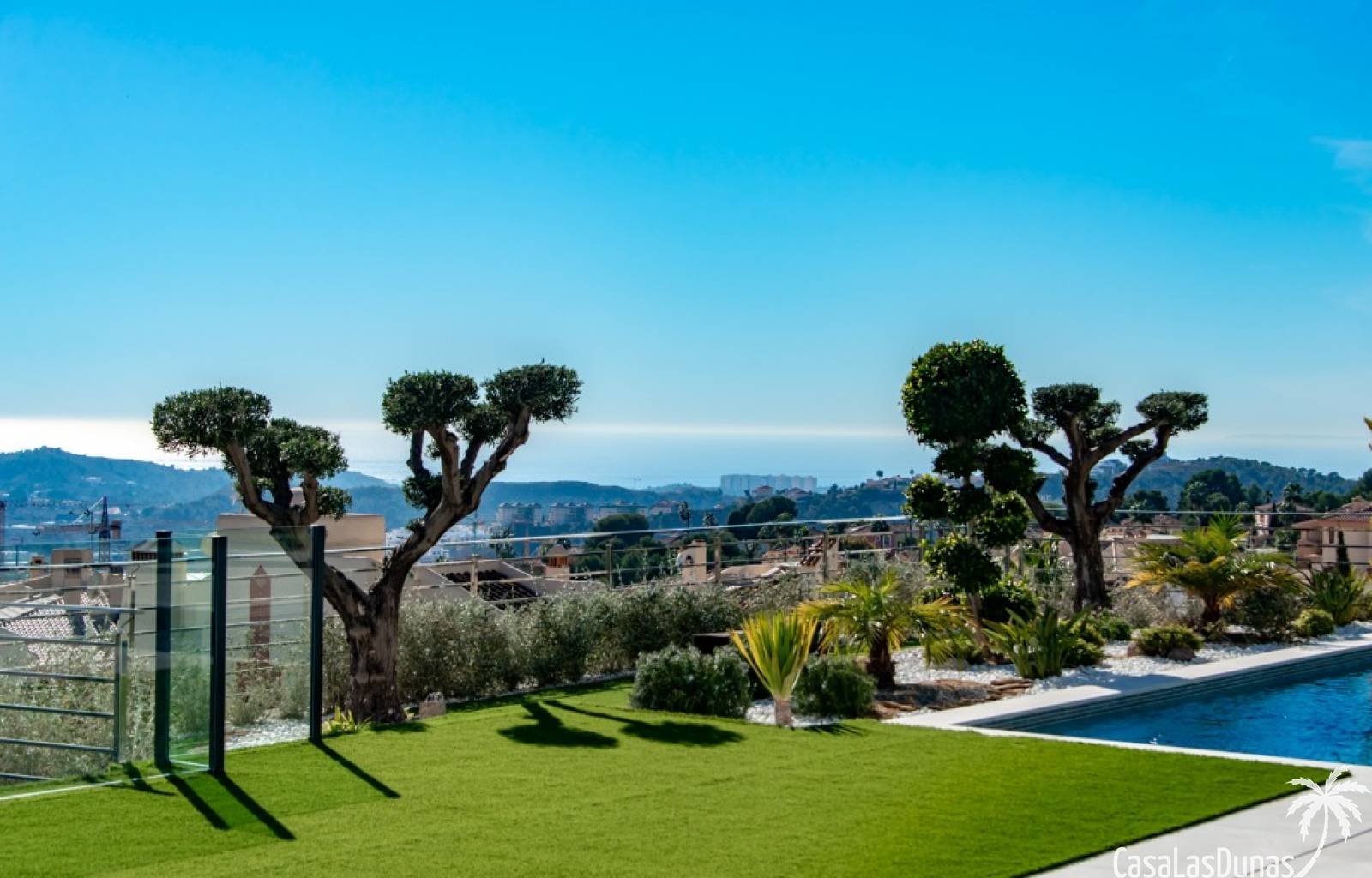 New build villa with sea view for sale in Finestrat.We offer new build luxury villa with 8 bedrooms, 5 bathrooms, large living room about 92 m2, kitchen, terrace, lovely outside garden with private pool.The construction works is carried out using only the highest quality materials and finishing works such as: double glazed aluminium windows, shower plates in the bathrooms, top quality porcelain used for the floor and interiors, air conditioning, domotic system, garage for 4 vehicles with automatic doors, garden completely finished with automatic irrigation and much more extras.The villa is located a few kilometers from the popular city of entertainment in Costa Blanca - Benidorm. Nearby you will find shops, supermarkets, banks, restaurants, schools. But if you want entertainment, then just a few minutes away golf, casinos, shopping malls, water parks, discos and much more great entertainment. Only 45 km from Alicante airport. Good choice to live in Spain all year around.