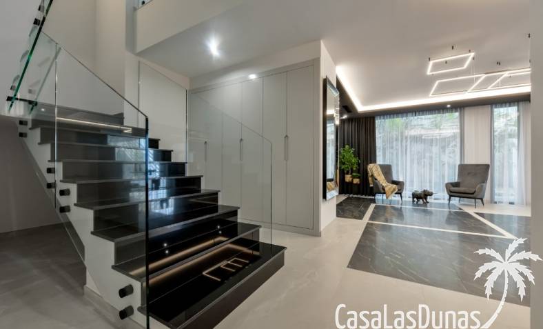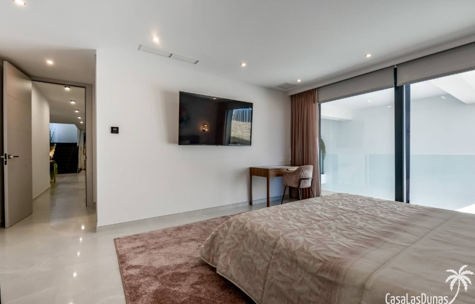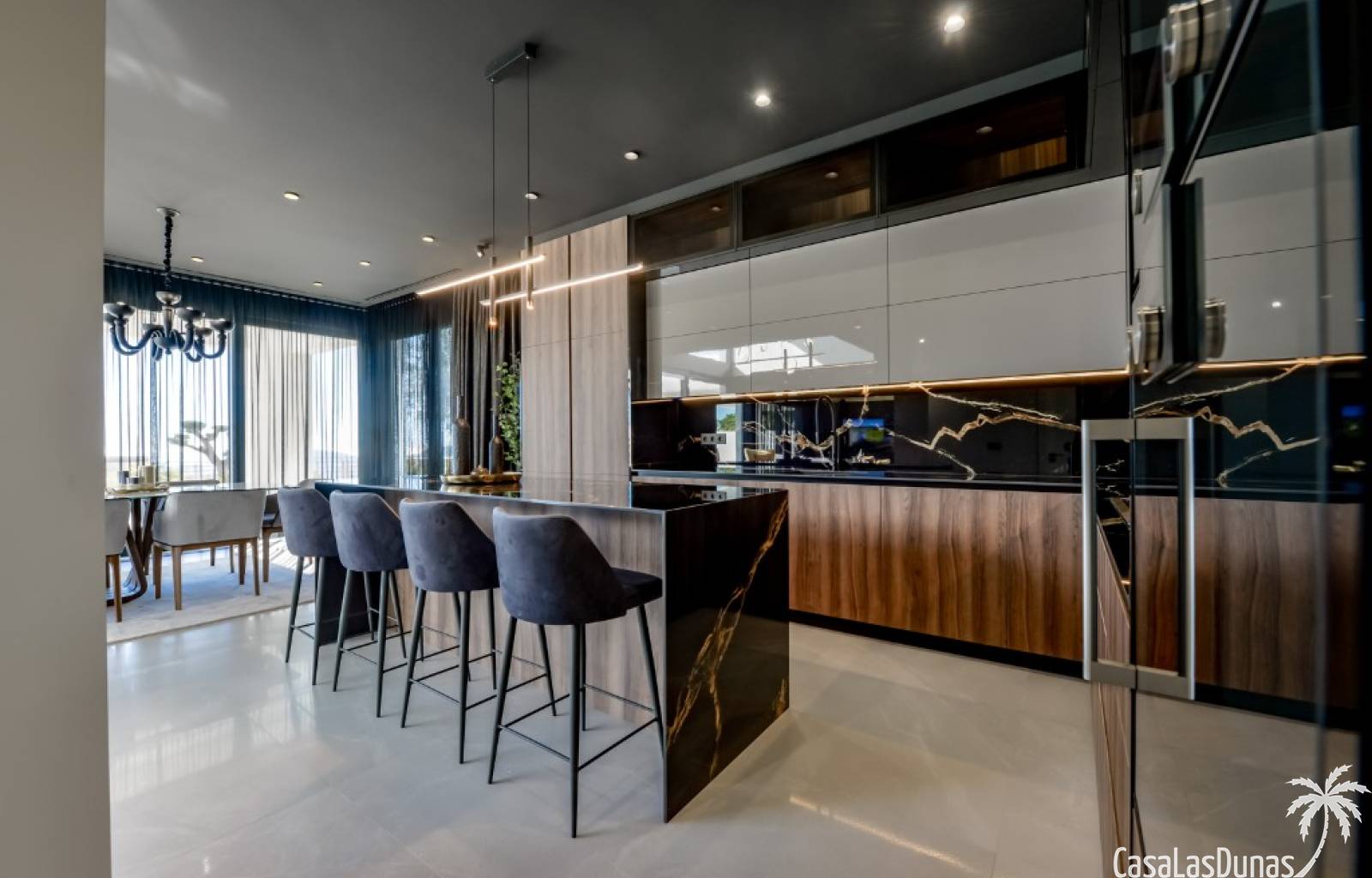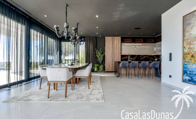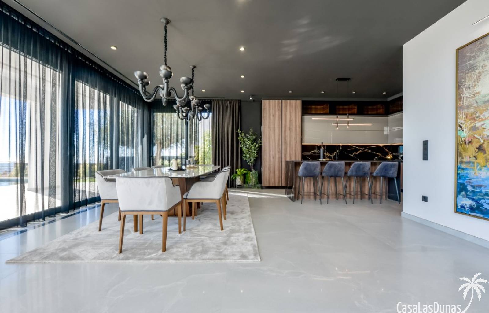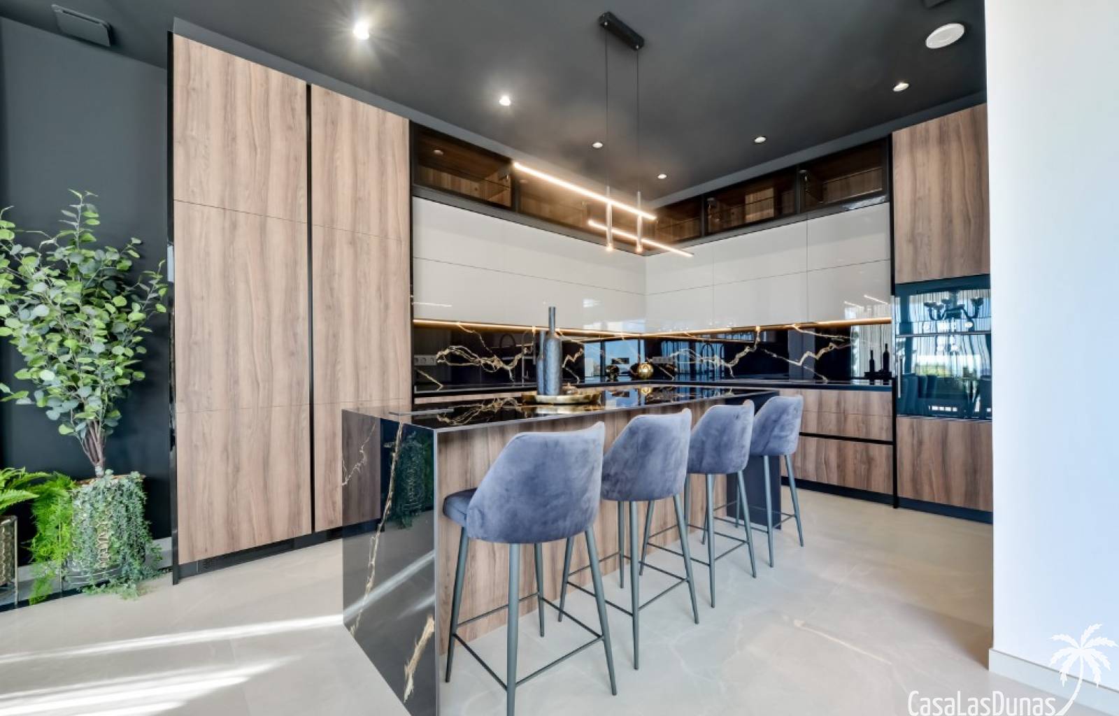 New build villa with sea view for sale in Finestrat.We offer new build luxury villa with 8 bedrooms, 5 bathrooms, large living room about 92 m2, kitchen, terrace, lovely outside garden with private pool.The construction works is carried out using only the highest quality materials and finishing works such as: double glazed aluminium windows, shower plates in the bathrooms, top quality porcelain used for the floor and interiors, air conditioning, domotic system, garage for 4 vehicles with automatic doors, garden completely finished with automatic irrigation and much more extras.The villa is located a few kilometers from the popular city of entertainment in Costa Blanca - Benidorm. Nearby you will find shops, supermarkets, banks, restaurants, schools. But if you want entertainment, then just a few minutes away golf, casinos, shopping malls, water parks, discos and much more great entertainment. Only 45 km from Alicante airport. Good choice to live in Spain all year around.