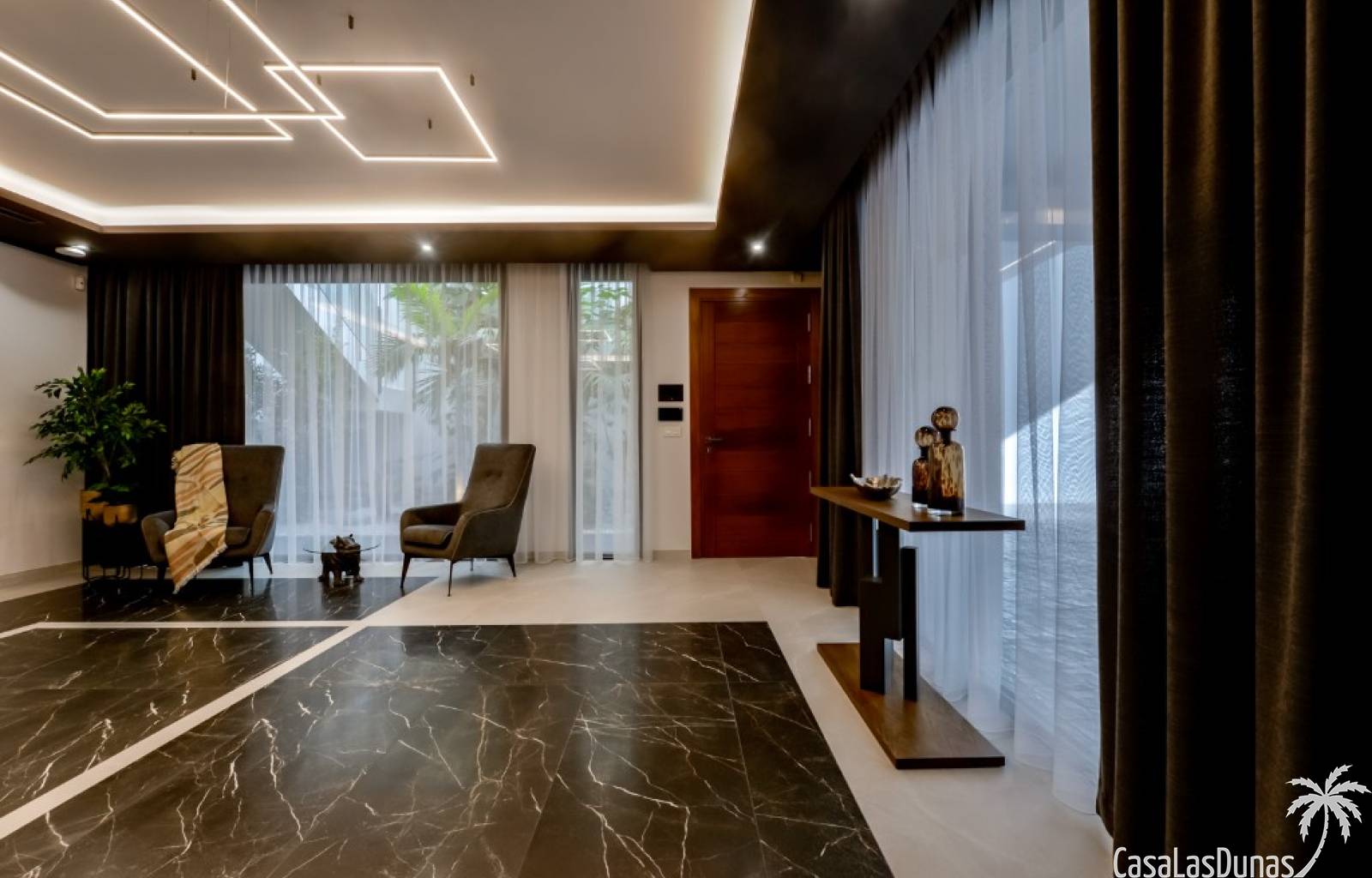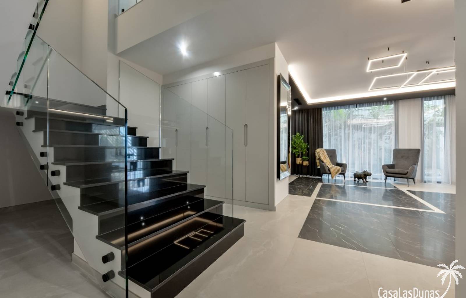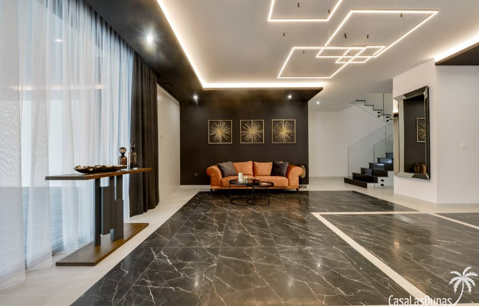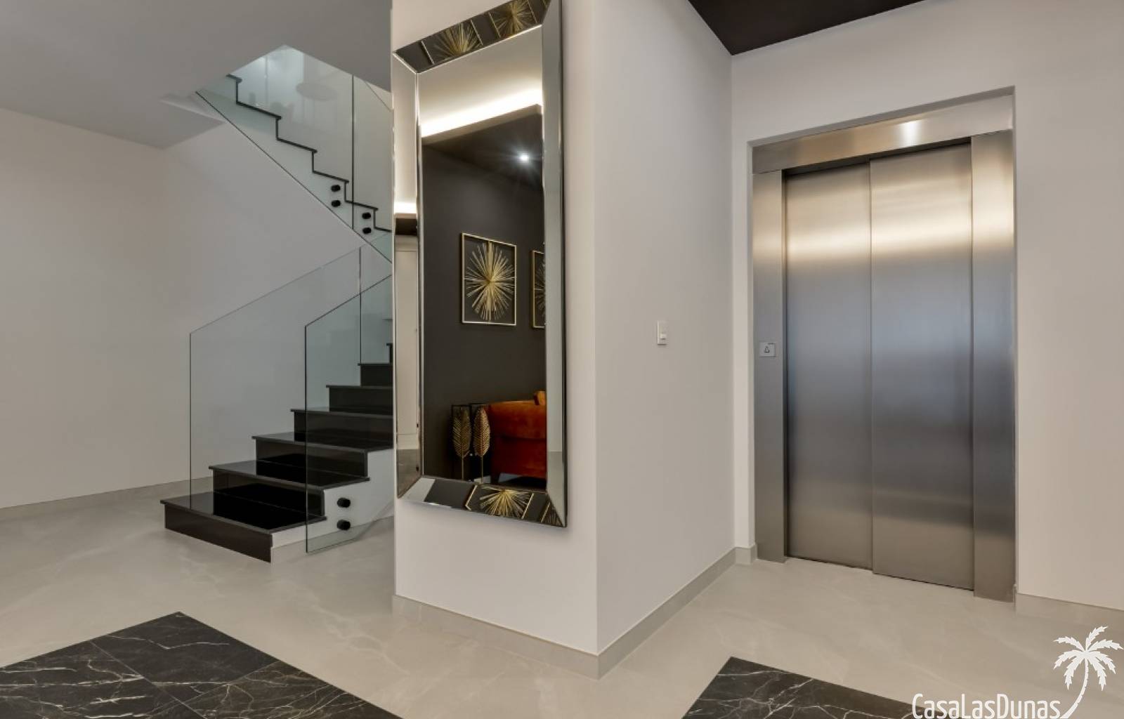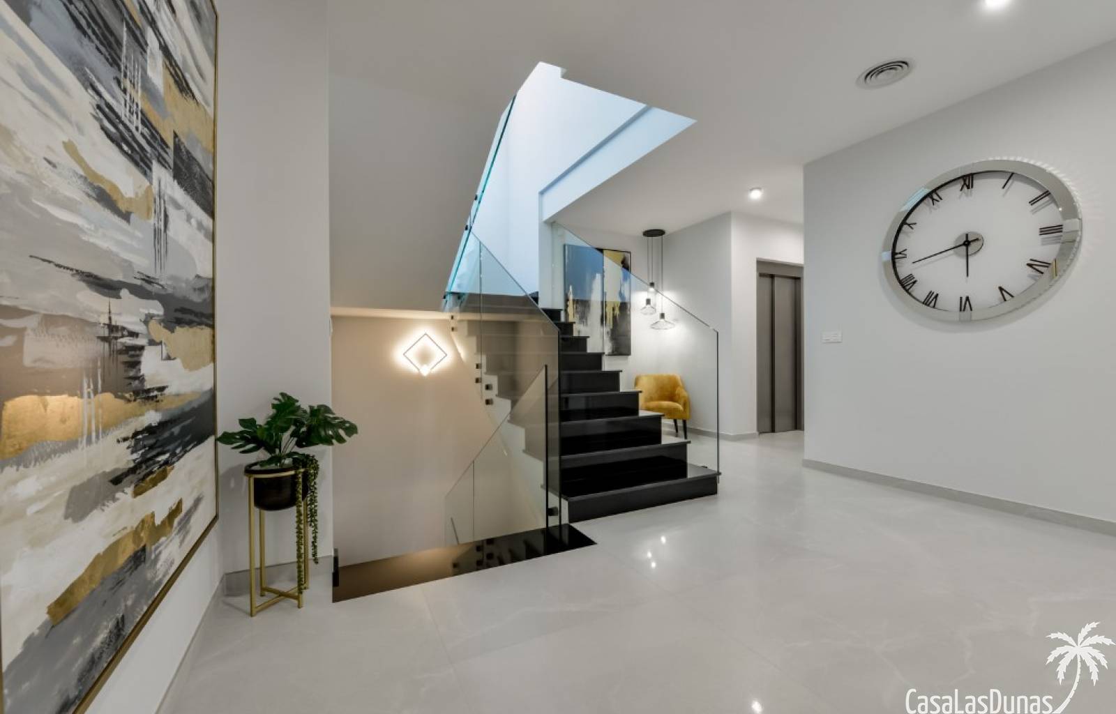 New build villa with sea view for sale in Finestrat.We offer new build luxury villa with 8 bedrooms, 5 bathrooms, large living room about 92 m2, kitchen, terrace, lovely outside garden with private pool.The construction works is carried out using only the highest quality materials and finishing works such as: double glazed aluminium windows, shower plates in the bathrooms, top quality porcelain used for the floor and interiors, air conditioning, domotic system, garage for 4 vehicles with automatic doors, garden completely finished with automatic irrigation and much more extras.The villa is located a few kilometers from the popular city of entertainment in Costa Blanca - Benidorm. Nearby you will find shops, supermarkets, banks, restaurants, schools. But if you want entertainment, then just a few minutes away golf, casinos, shopping malls, water parks, discos and much more great entertainment. Only 45 km from Alicante airport. Good choice to live in Spain all year around.
