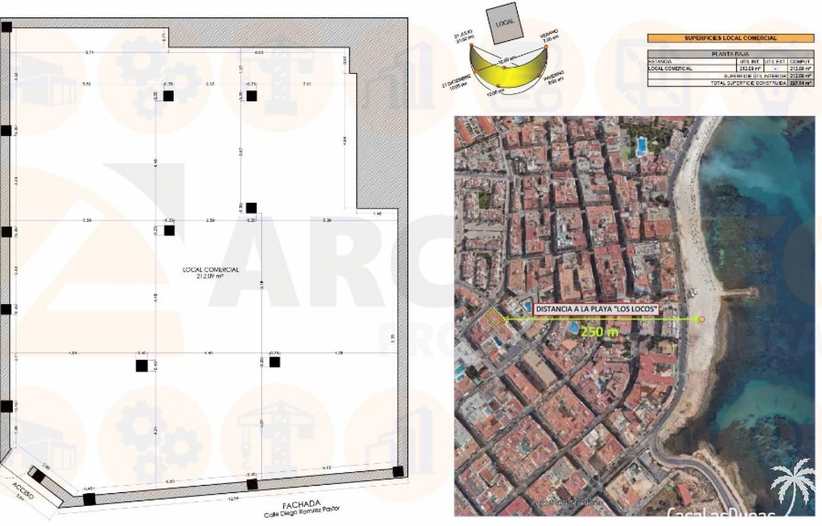 PROFITABLE INVESTMENTS. A COMMERCIAL PROPERTY FOR SALE FOR 5 TOURIST APARTMENTS 250 M FROM THE BEACH IN TORREVIEJAWe have for sale large commercial property of more than 220 m² just 250 meters from "Playa de Los Locos" in Torrevieja and very close to all services. The geometry and surface of this magnificent commercial ground floor allows it to be converted into 5 individual homes or tourist apartments. The estimated cost of conditioning and renovation work would be €750 - €800/m². After all the investments and expenses, the average cost of each home would be €75,000 - €80,000, with its sales value on the insured market being a minimum of €135,000. In the case of tourist rentals, the investment amortization period taking into account the average degree of occupancy would be up to 4 years. The best option: exploit it during the amortization period and then sell the apartments separately, profitability more than 200%.