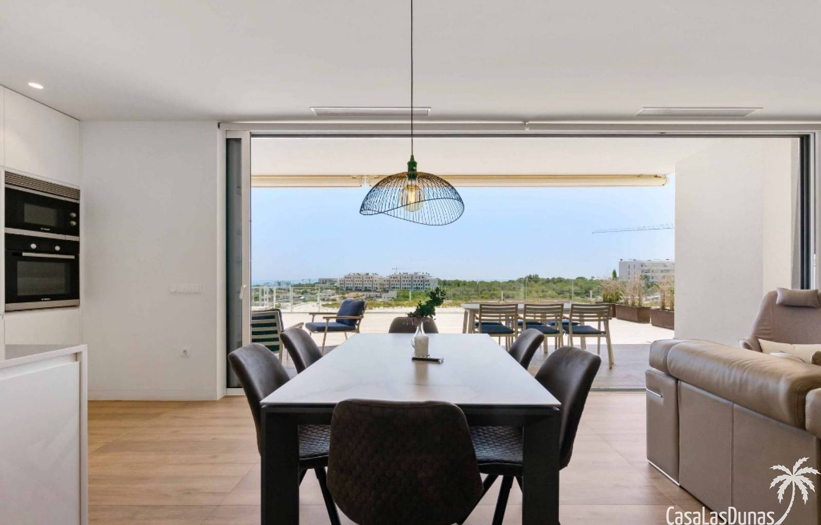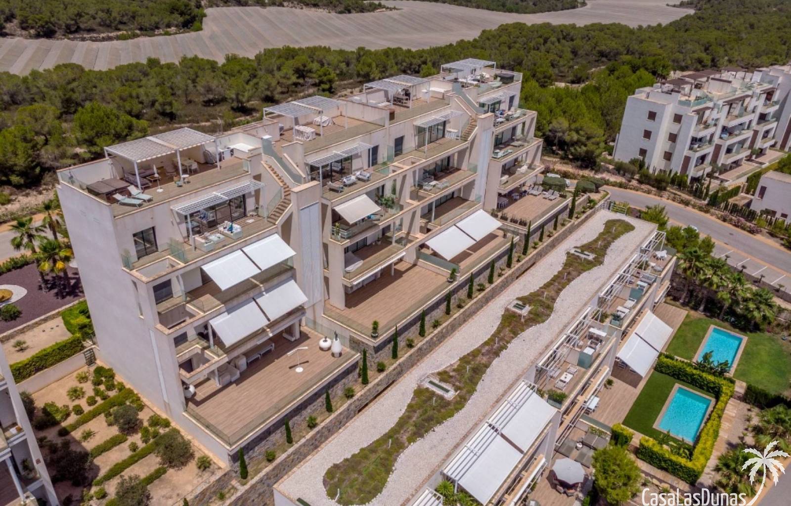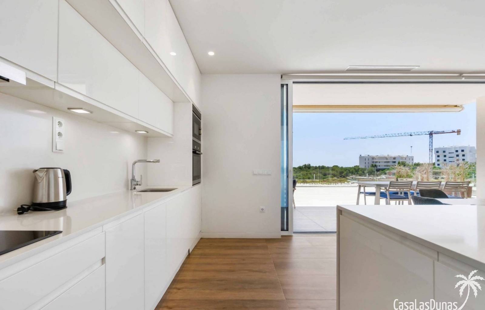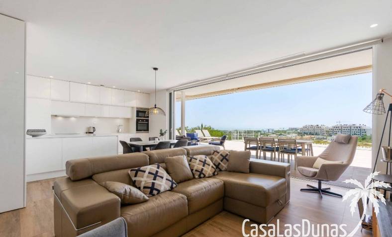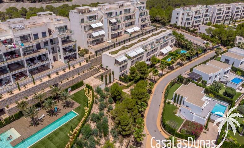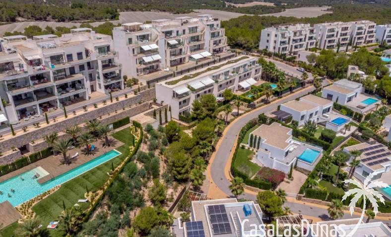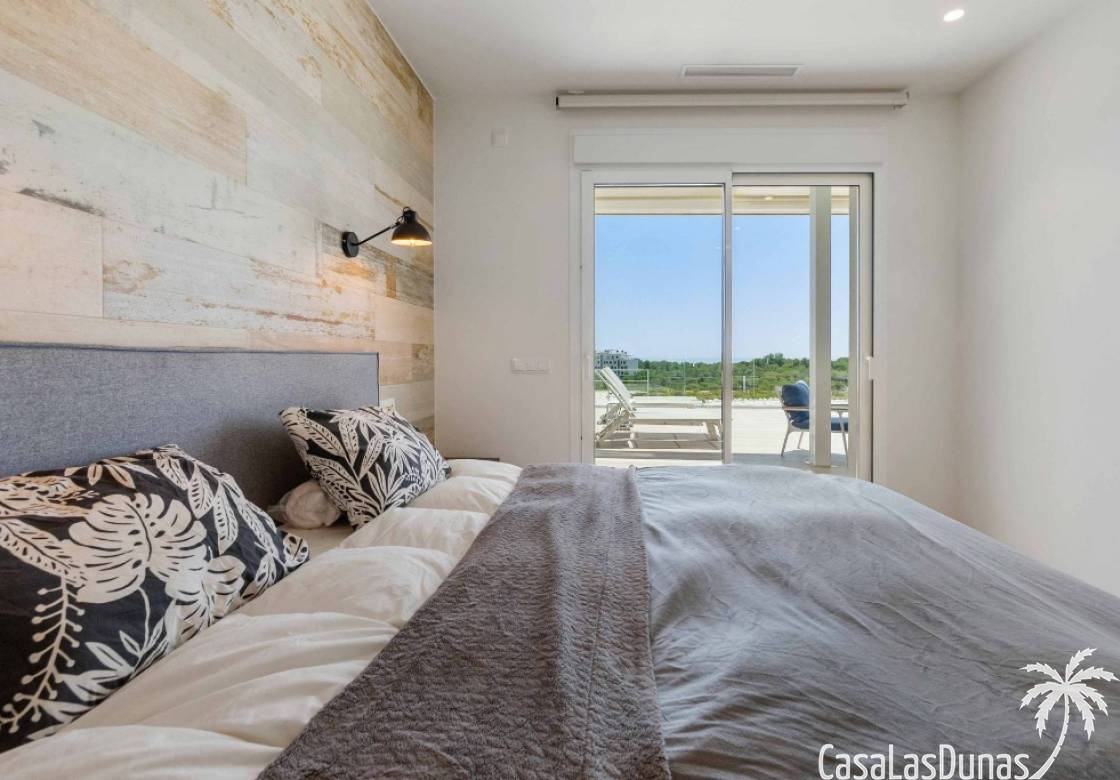 For sale amazing ground floor apartment in Naranjo Community at Las Colinas Golf & Country Club! The apartment built in 2018 is South-facing and offers a living room, dining area, kitchen, three bedrooms, two bathrooms and amazing terraces facing South and North. The apartment is on a slope, which means that you have fantastic views even from the grund floor.Entering the apartment you find the living room and kitchen to your right. From here you have access to an amazing South-facing terrace of 110m2! The large sliding windows are hidden completely in the wall, giving the experience that you are simply extending the inside to the outside. The kitchen has a half kitchen island and plenty of space for cooking and storage. The living area you will find the bedrooms and bathrooms. Two of the bedrooms share a bathroom. These bedrooms also have access to their own terrace and garden facing North. Further on you have the master bedroom with ensuite bathroom. The master bedroom also has direct access to the spacious terrace looking South.The apartment is sold fully equipped and furnished.Las Colinas Golf & Country Club offers an inviting range of restaurants and leisure options. These amenities are concentrated around the Clubhouse, a large Mediterranean-style building (1,500 sq. metres), only a few steps away from tees 1 and 10, greens 9 and 18 and the practice facilities, with magnificent views over the lake at hole 18.Only a short drive away you will find the very popular shopping Center ¨ Zenia Boulevard ¨