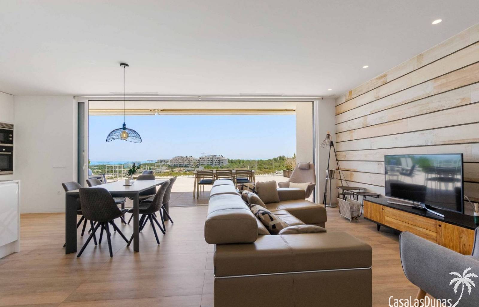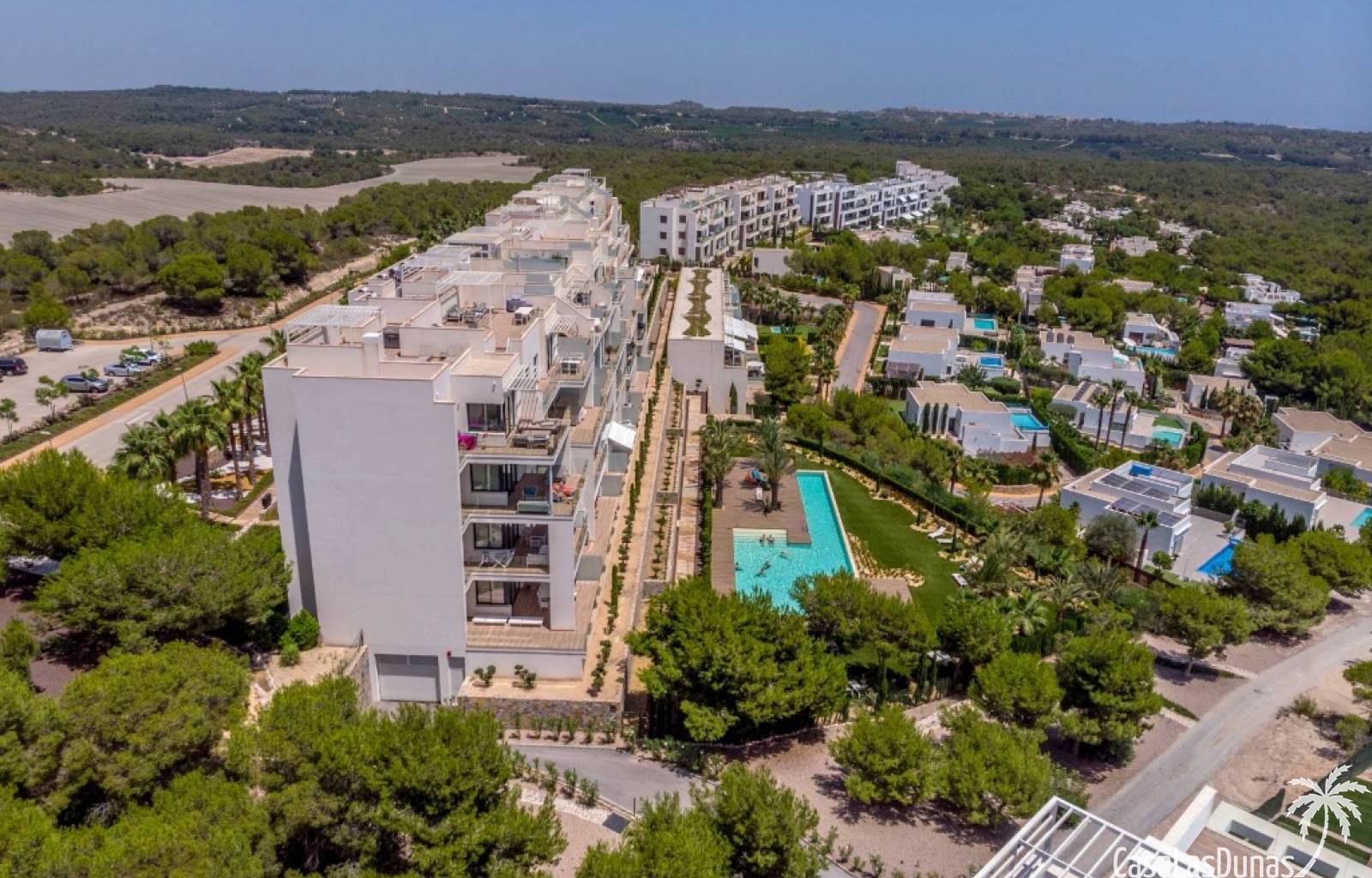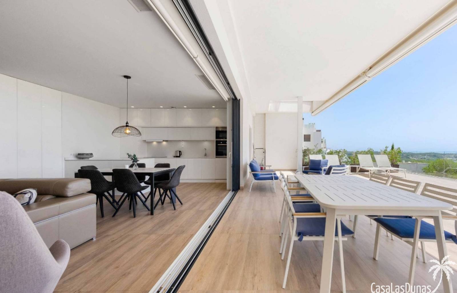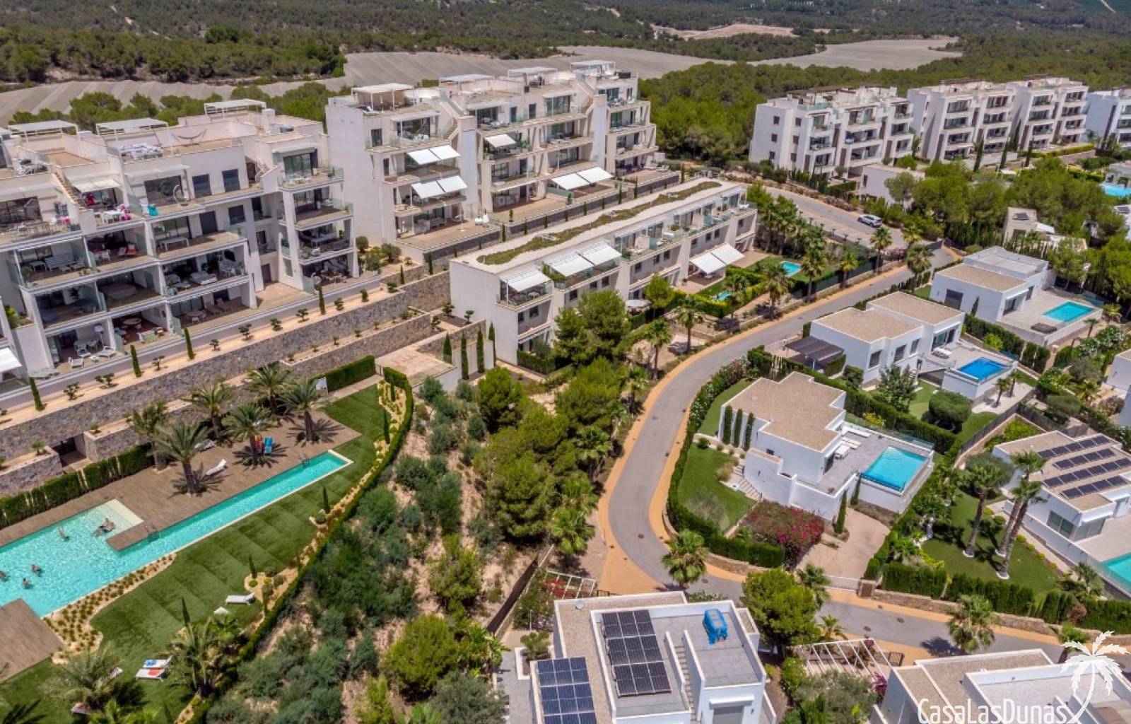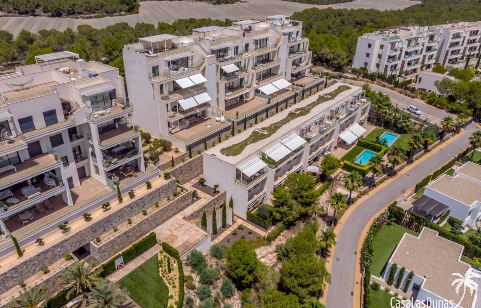 For sale amazing ground floor apartment in Naranjo Community at Las Colinas Golf & Country Club! The apartment built in 2018 is South-facing and offers a living room, dining area, kitchen, three bedrooms, two bathrooms and amazing terraces facing South and North. The apartment is on a slope, which means that you have fantastic views even from the grund floor.Entering the apartment you find the living room and kitchen to your right. From here you have access to an amazing South-facing terrace of 110m2! The large sliding windows are hidden completely in the wall, giving the experience that you are simply extending the inside to the outside. The kitchen has a half kitchen island and plenty of space for cooking and storage. The living area you will find the bedrooms and bathrooms. Two of the bedrooms share a bathroom. These bedrooms also have access to their own terrace and garden facing North. Further on you have the master bedroom with ensuite bathroom. The master bedroom also has direct access to the spacious terrace looking South.The apartment is sold fully equipped and furnished.Las Colinas Golf & Country Club offers an inviting range of restaurants and leisure options. These amenities are concentrated around the Clubhouse, a large Mediterranean-style building (1,500 sq. metres), only a few steps away from tees 1 and 10, greens 9 and 18 and the practice facilities, with magnificent views over the lake at hole 18.Only a short drive away you will find the very popular shopping Center ¨ Zenia Boulevard ¨