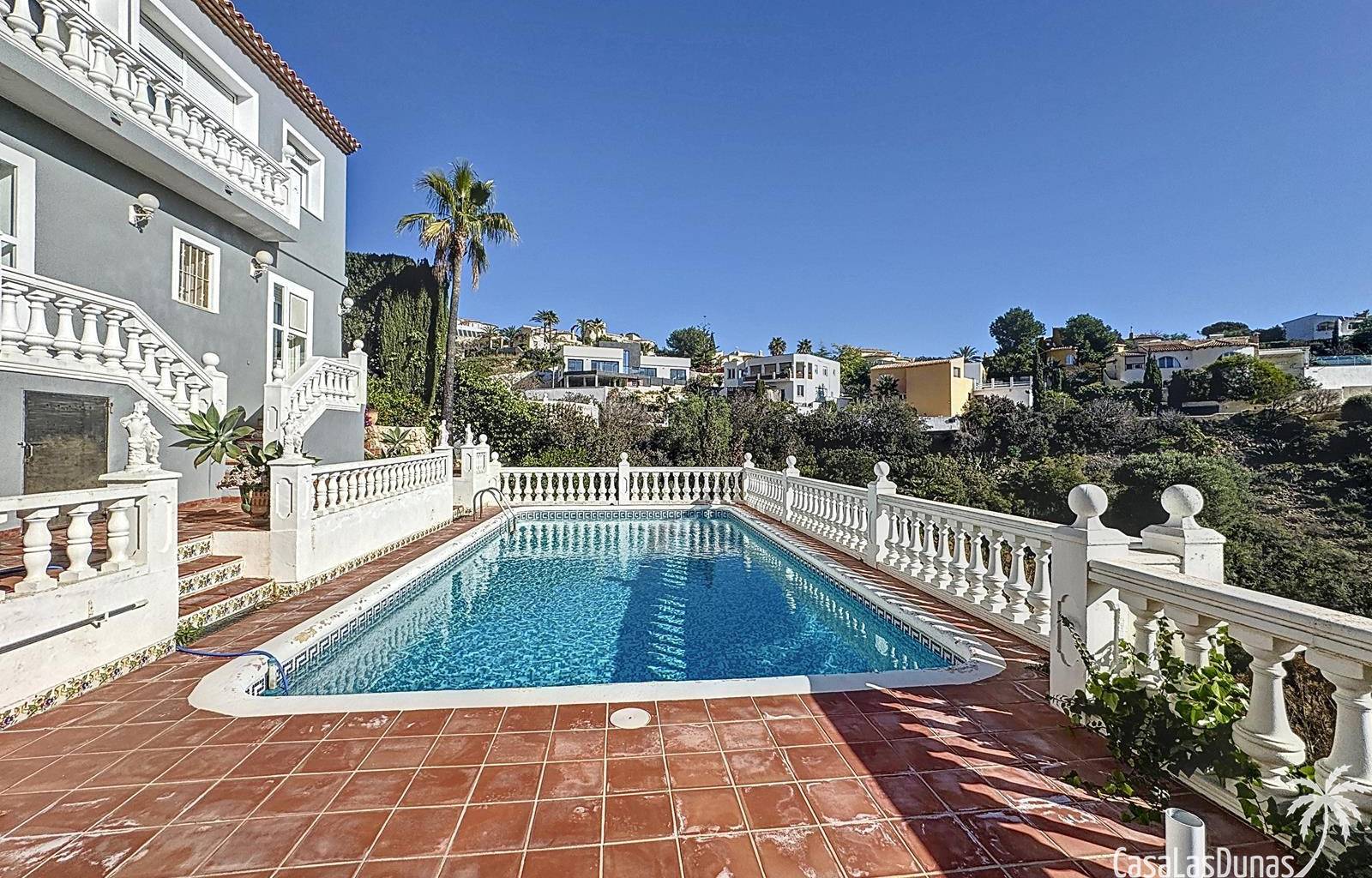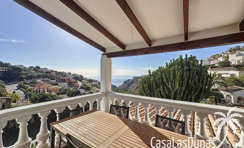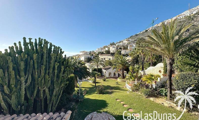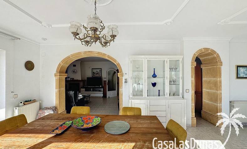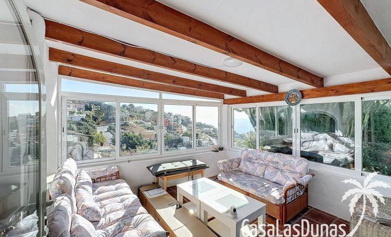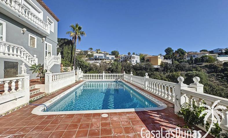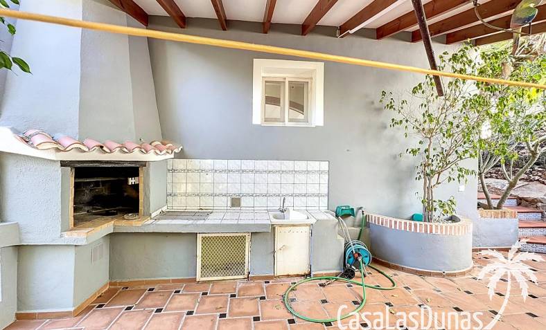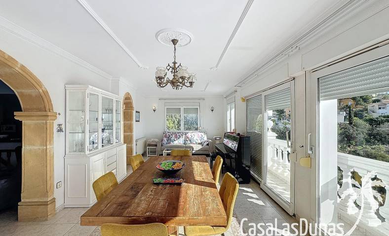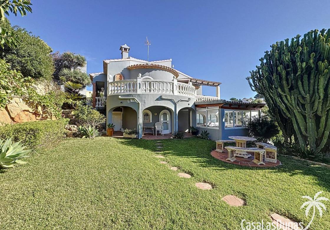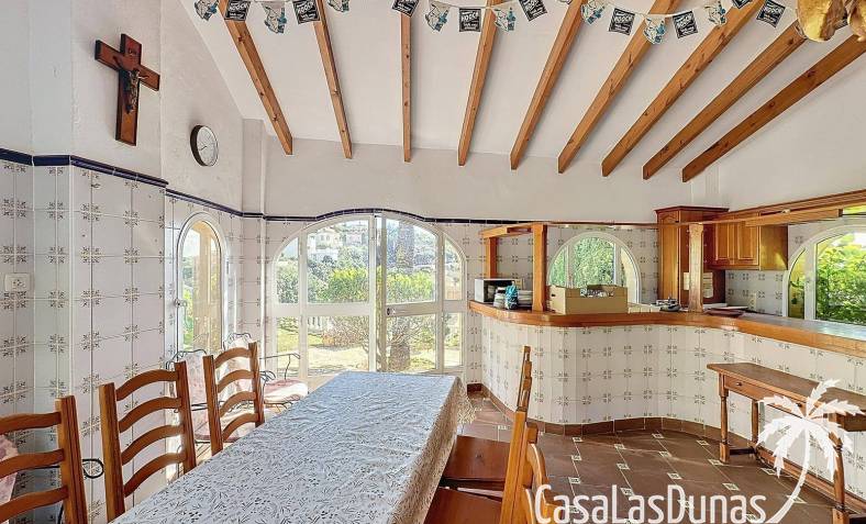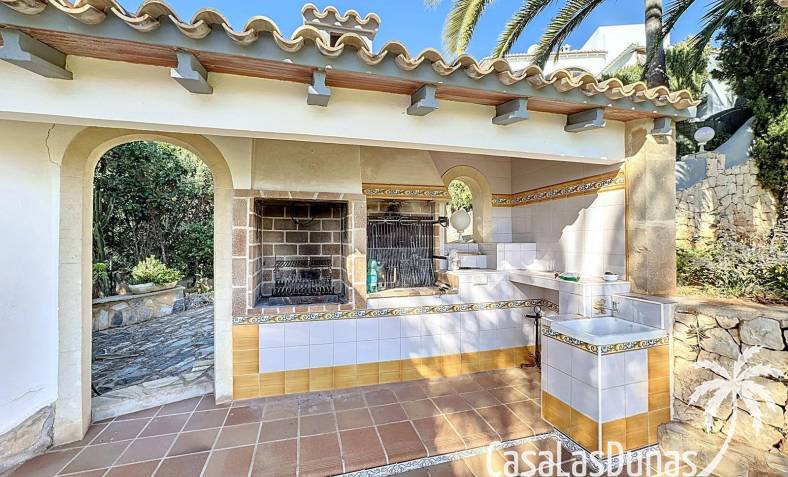 This villa with a private pool is situated on a double plot of 1,755m2 with stunning sea views, just a short distance from Cala Moraig beach in the Cumbre del Sol residential area. The house features three large double bedrooms, two bathrooms, a living room with a fireplace, a spacious dining room, and a fully equipped open-plan kitchen. There is also an additional structure in the garden with a summer kitchen, a dining room, and a covered barbecue area, perfect for enjoying unforgettable moments outdoors.