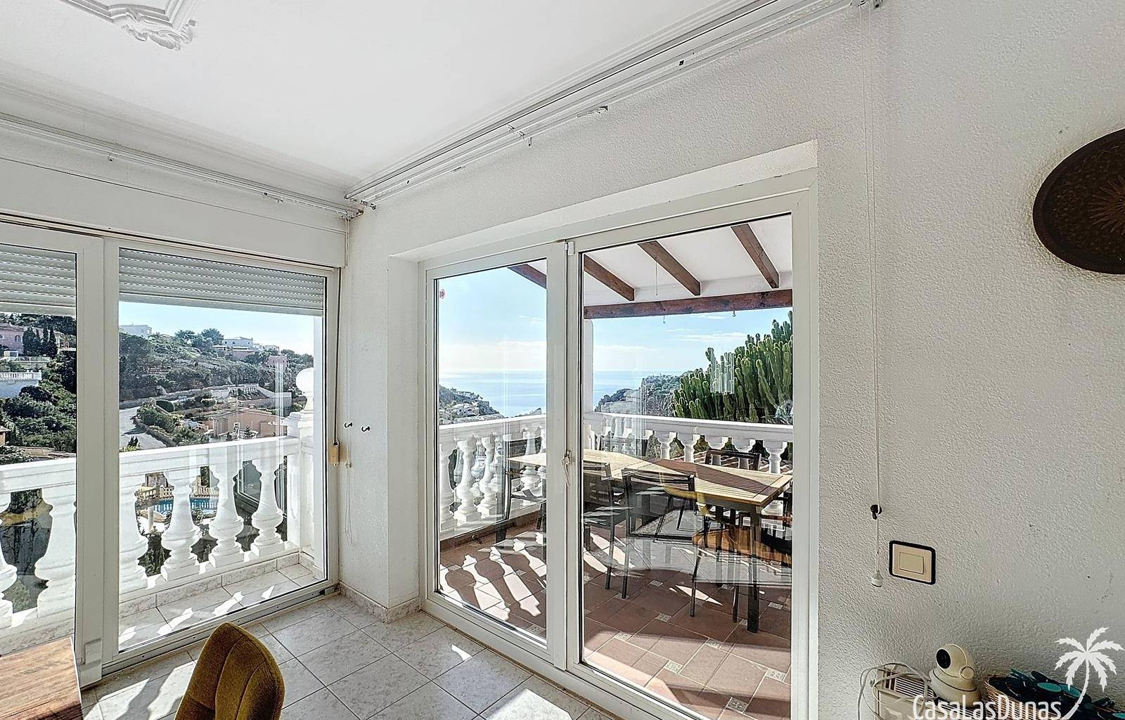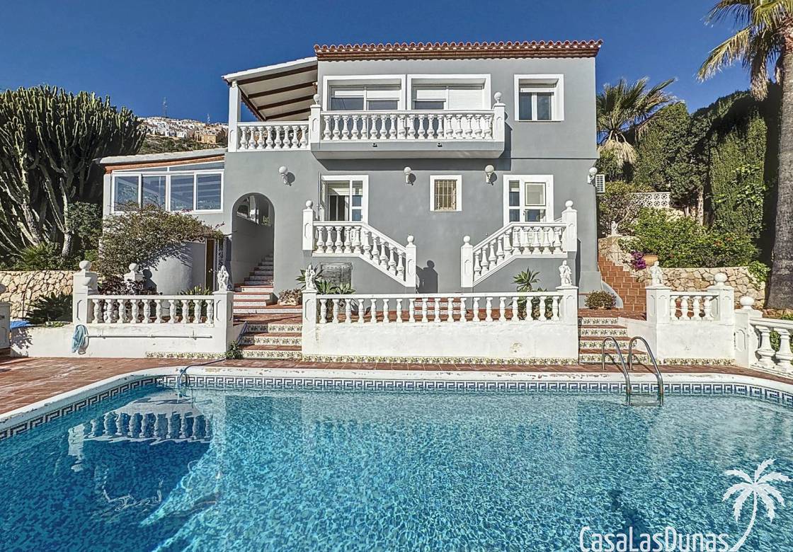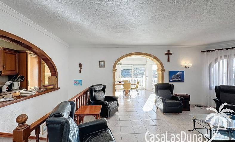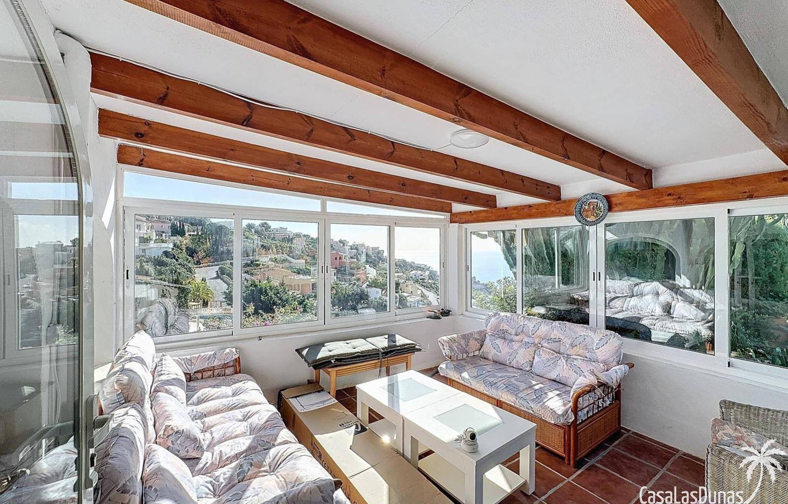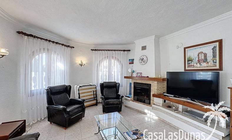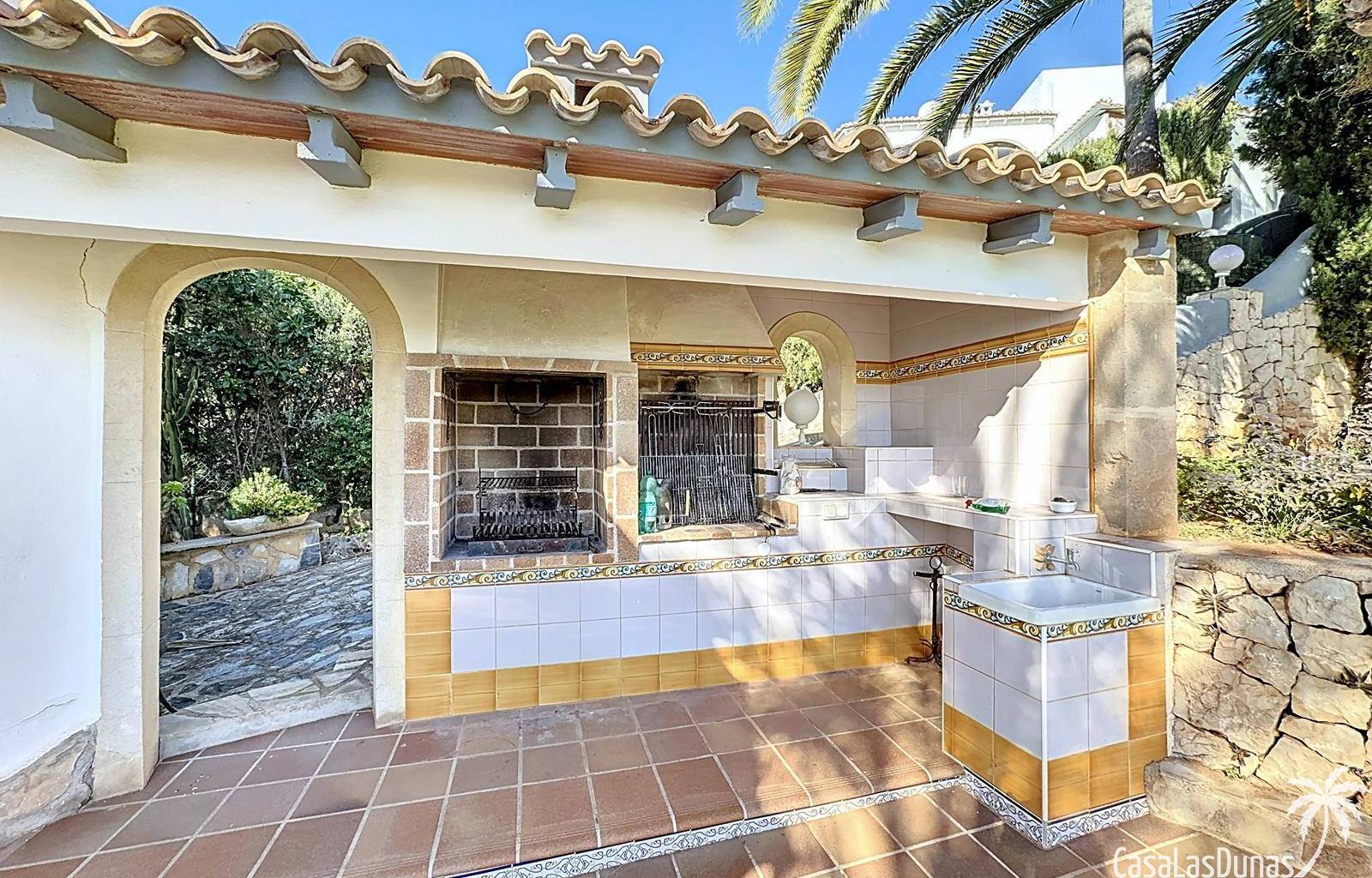 This villa with a private pool is situated on a double plot of 1,755m2 with stunning sea views, just a short distance from Cala Moraig beach in the Cumbre del Sol residential area. The house features three large double bedrooms, two bathrooms, a living room with a fireplace, a spacious dining room, and a fully equipped open-plan kitchen. There is also an additional structure in the garden with a summer kitchen, a dining room, and a covered barbecue area, perfect for enjoying unforgettable moments outdoors.