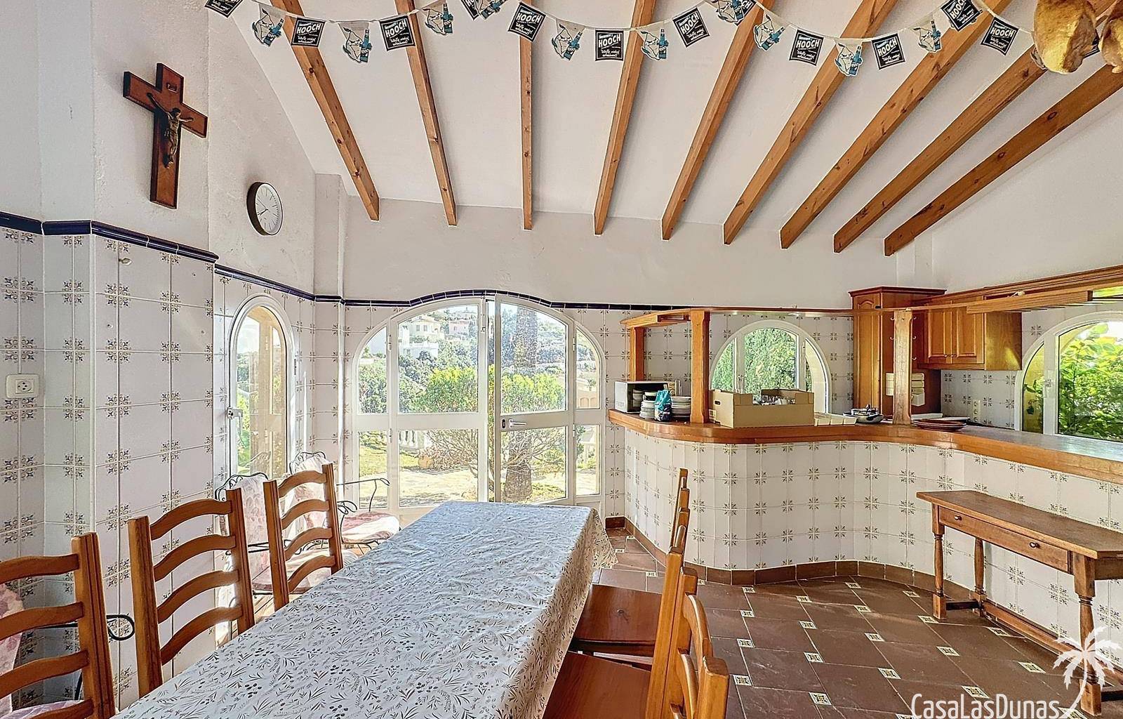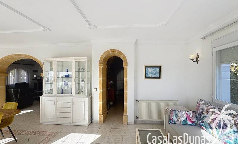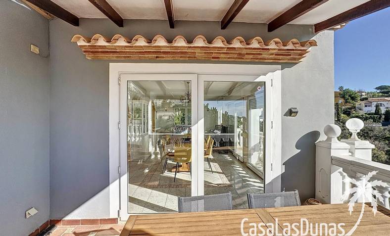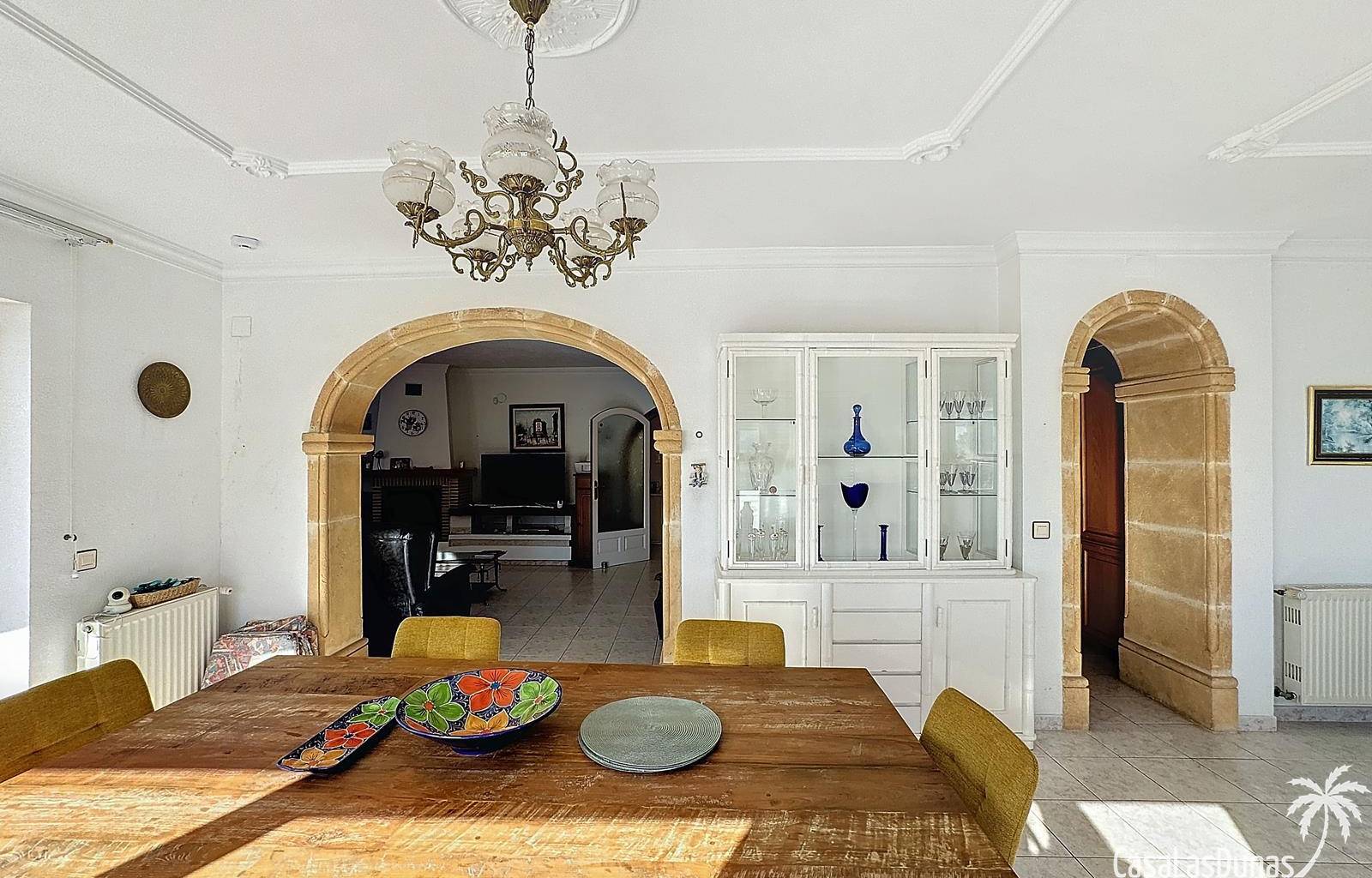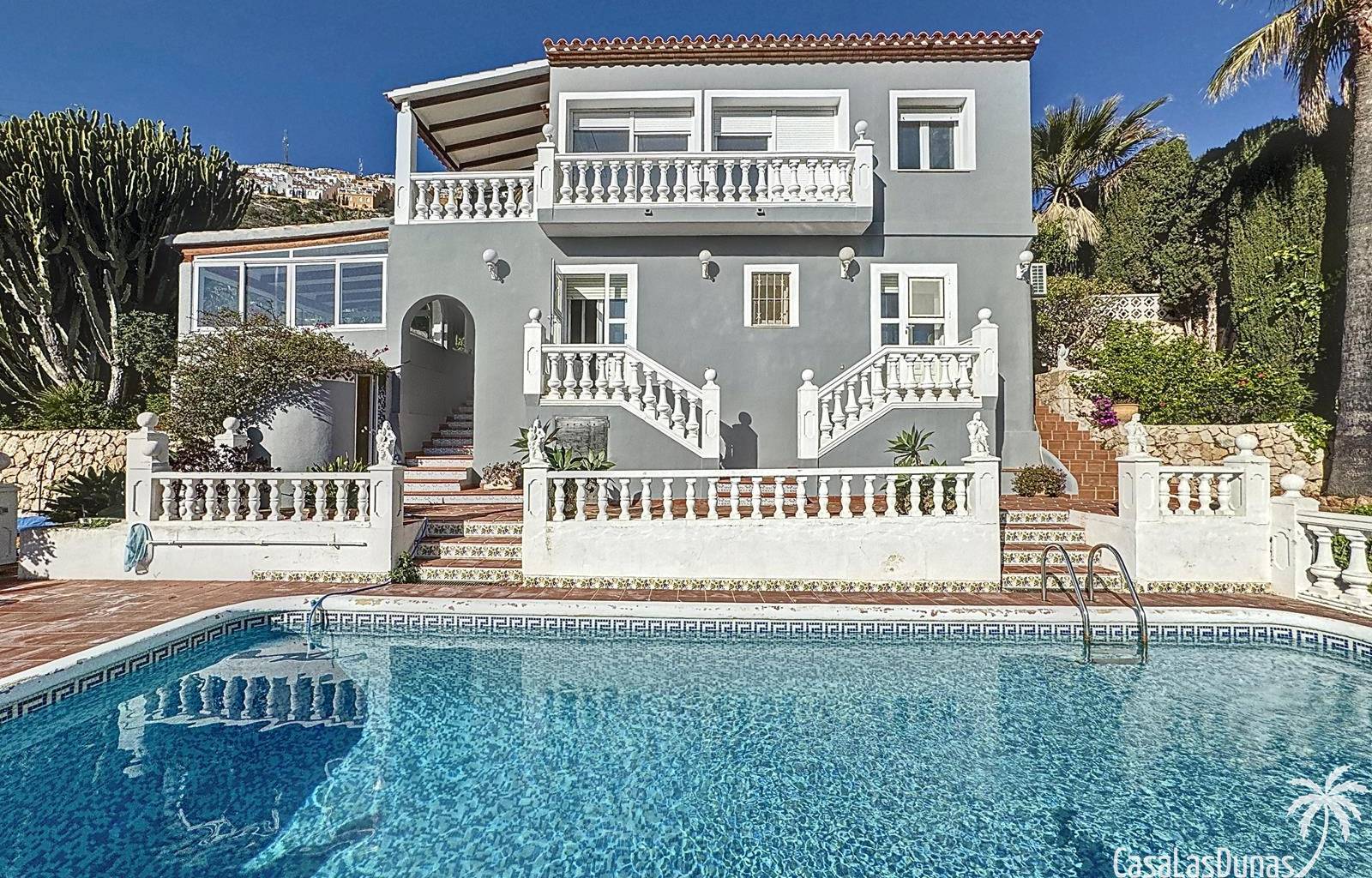This villa with a private pool is situated on a double plot of 1,755m2 with stunning sea views, just a short distance from Cala Moraig beach in the Cumbre del Sol residential area. The house features three large double bedrooms, two bathrooms, a living room with a fireplace, a spacious dining room, and a fully equipped open-plan kitchen. There is also an additional structure in the garden with a summer kitchen, a dining room, and a covered barbecue area, perfect for enjoying unforgettable moments outdoors.