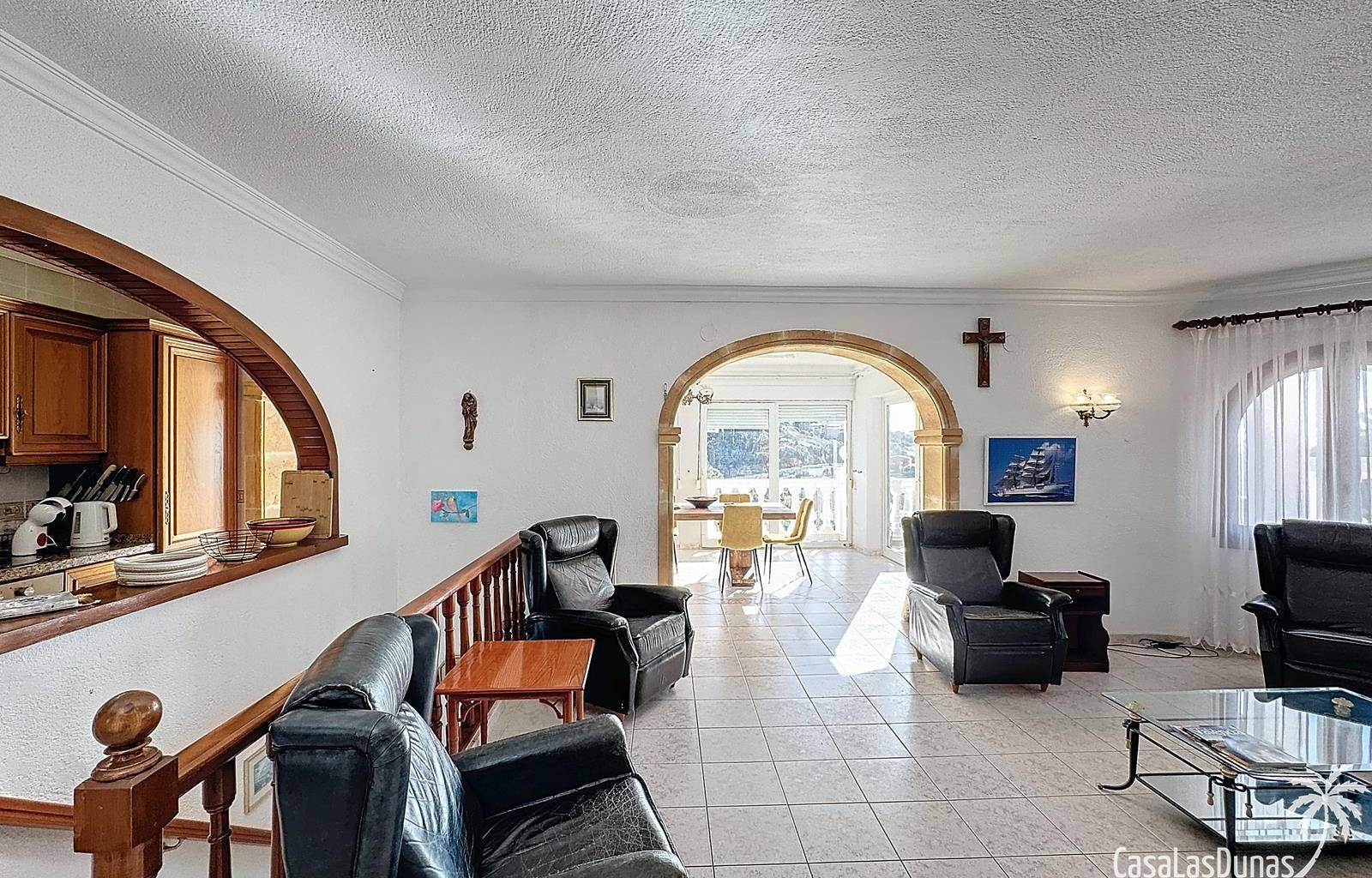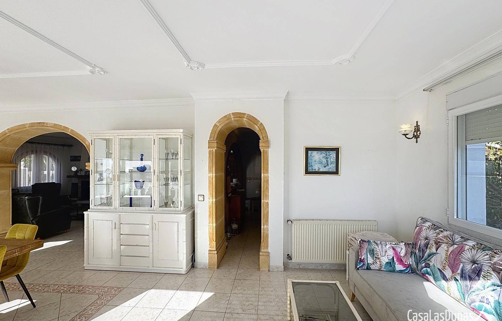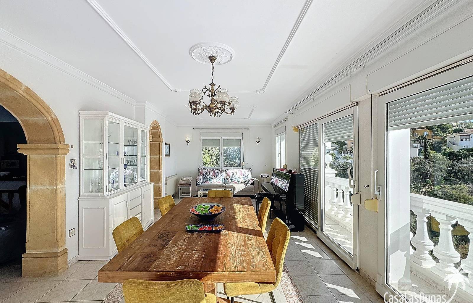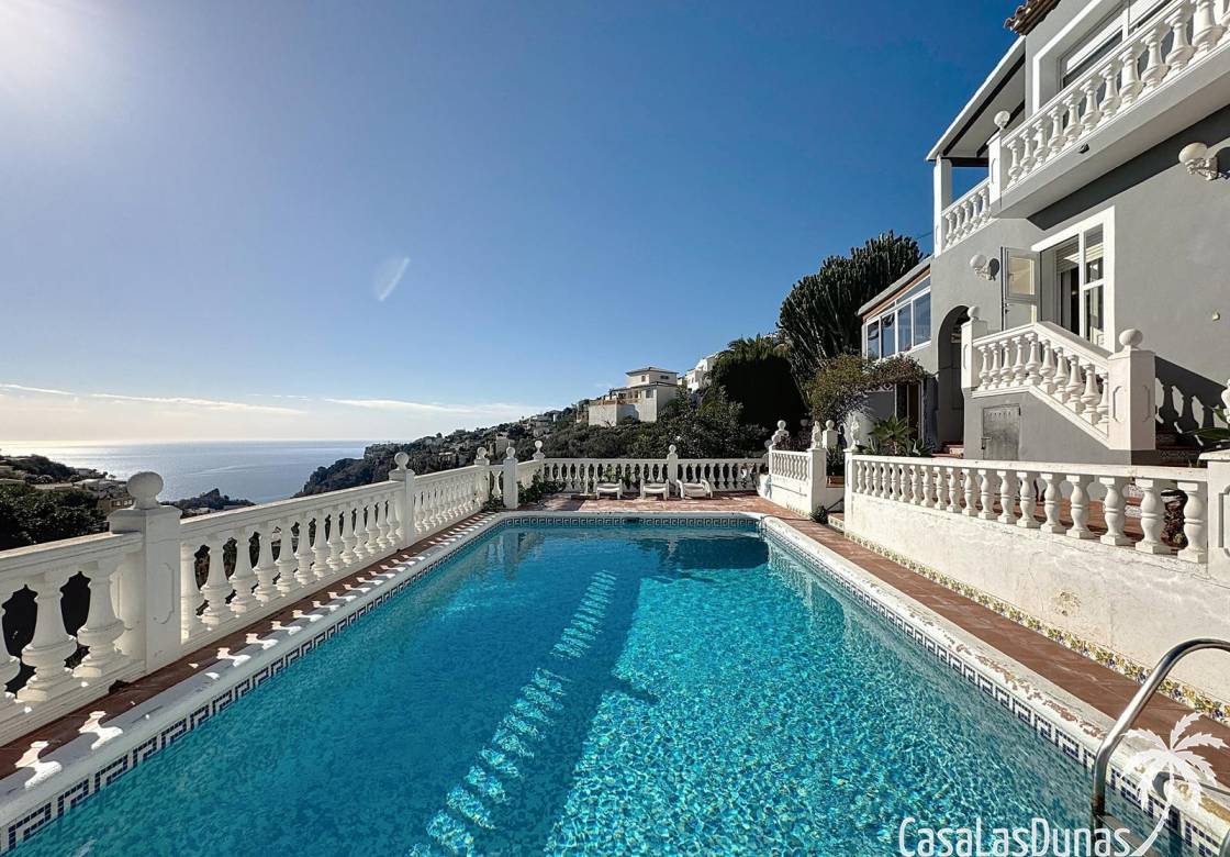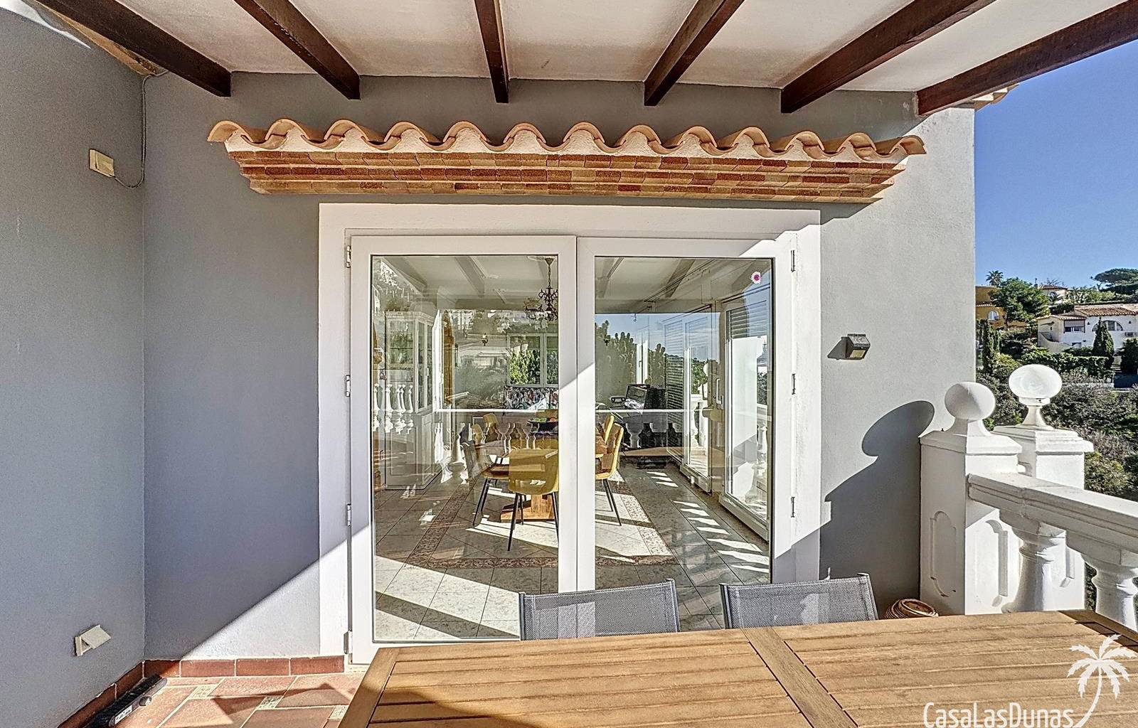 This villa with a private pool is situated on a double plot of 1,755m2 with stunning sea views, just a short distance from Cala Moraig beach in the Cumbre del Sol residential area. The house features three large double bedrooms, two bathrooms, a living room with a fireplace, a spacious dining room, and a fully equipped open-plan kitchen. There is also an additional structure in the garden with a summer kitchen, a dining room, and a covered barbecue area, perfect for enjoying unforgettable moments outdoors.