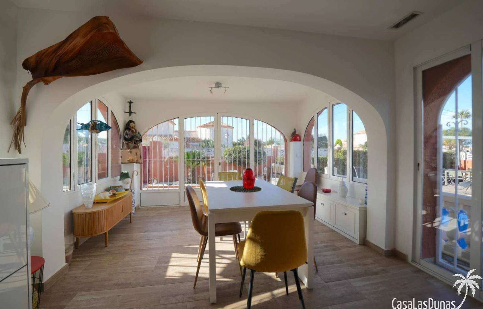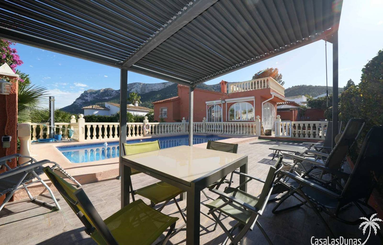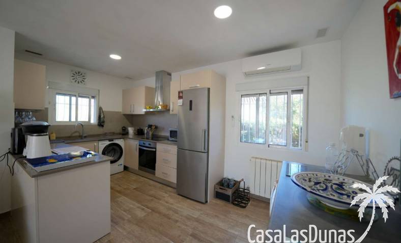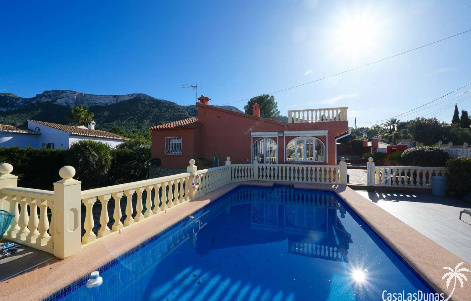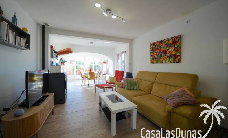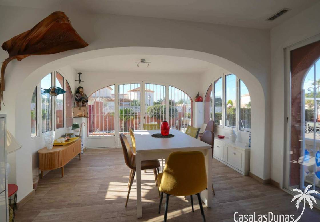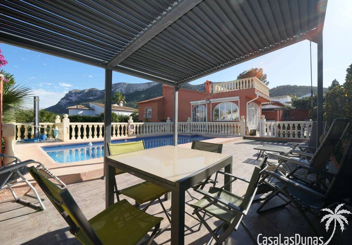 This charming villa in the Montgo area sits on a flat 635 m² plot and offers stunning views of the sea and the Montgo mountain. The approximately 134 m² house comprises a main living area and a separate guest area, ideal for privacy and comfort. Indoors and outdoors, it seamlessly blends with multiple terraces, a sunny roof terrace, and an 8 x 4 meter swimming pool. The center of Dénia is also just a few minutes away.
