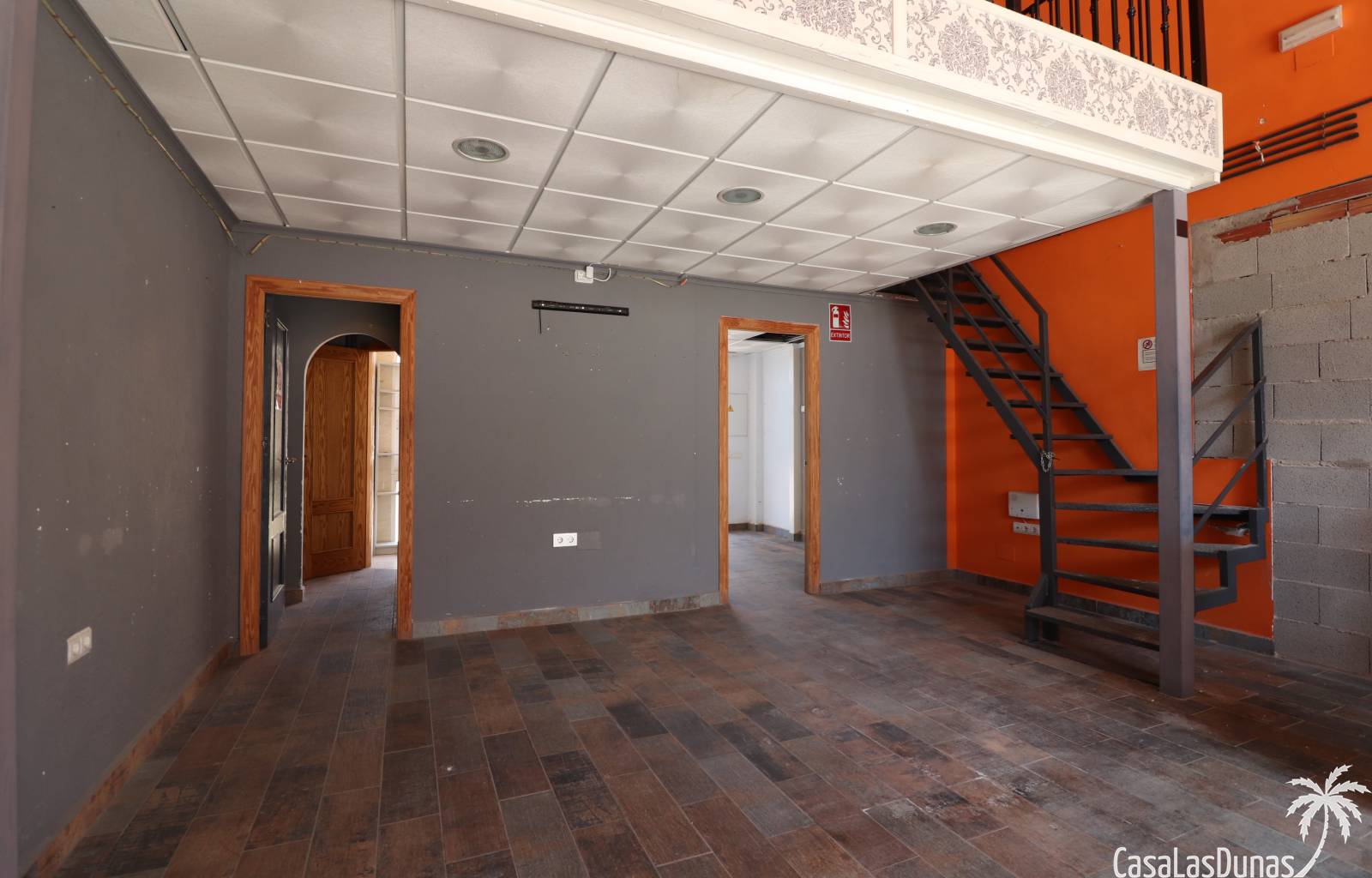 East Facing, Empty Unit in La Finca Golf Resort, Algorfa. Situated on the first floor of this well established commercial centre. Comprising inside of an open area on the ground floor with what could be a fitted bar; bathroom; shower room; additional room for storage or potential small kitchen; on the first floor is the mezzanine level, benefiting from two storerooms + an open area. To the front of a unit is a private use terrace of some 15m2, ideal for outdoor seating or an external waiting area. This unit has the potential to be a bar, restaurant, office, shop, salon or anything you can put your mind too. Also available for just rental for 750 euros per month, if you did not wish to purchase the freehold!