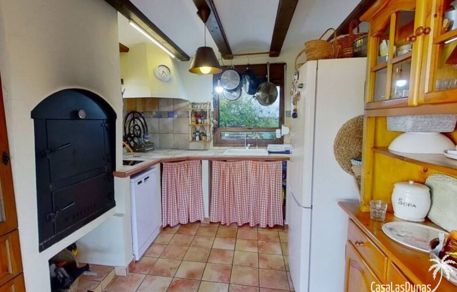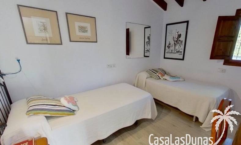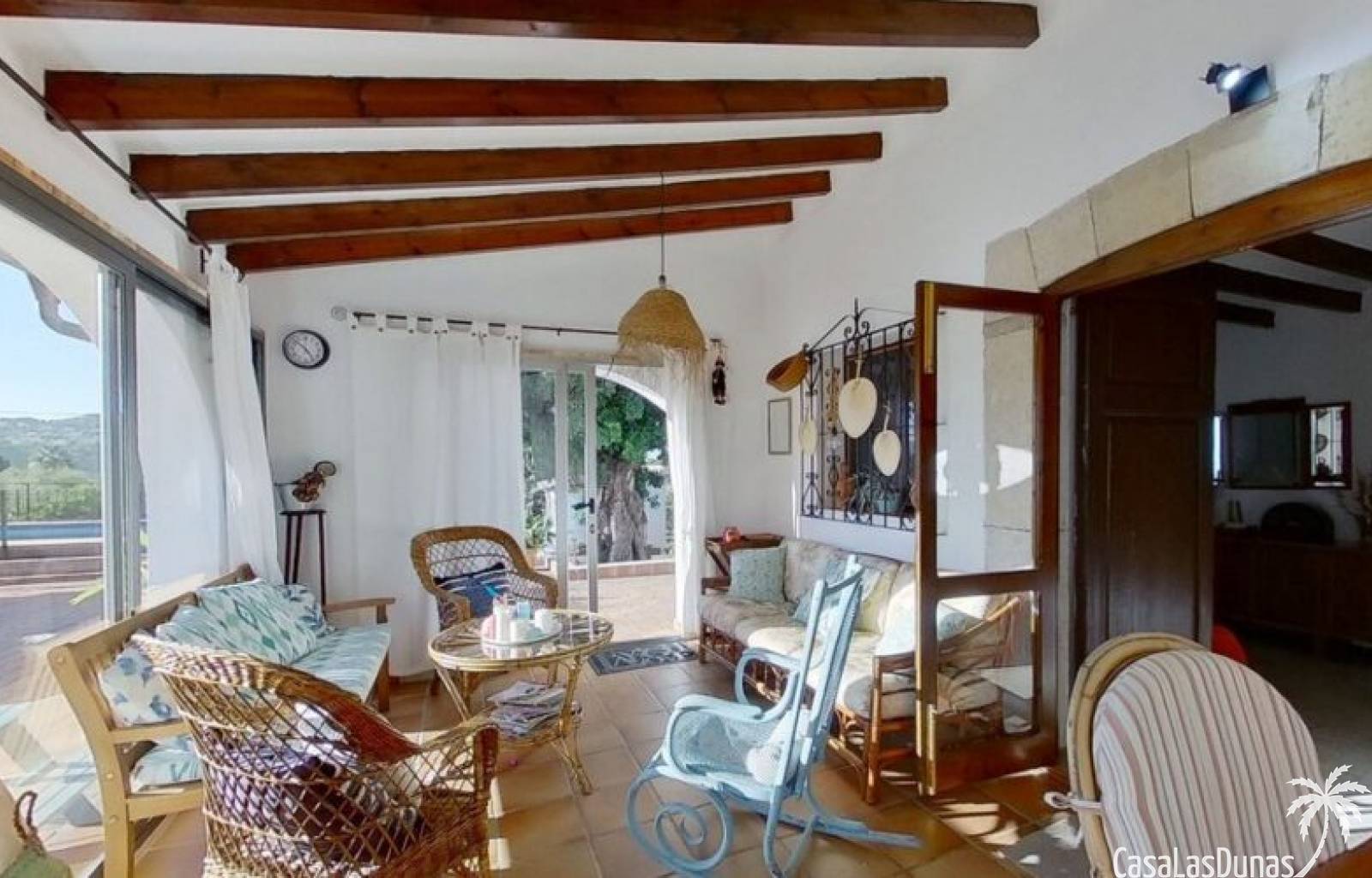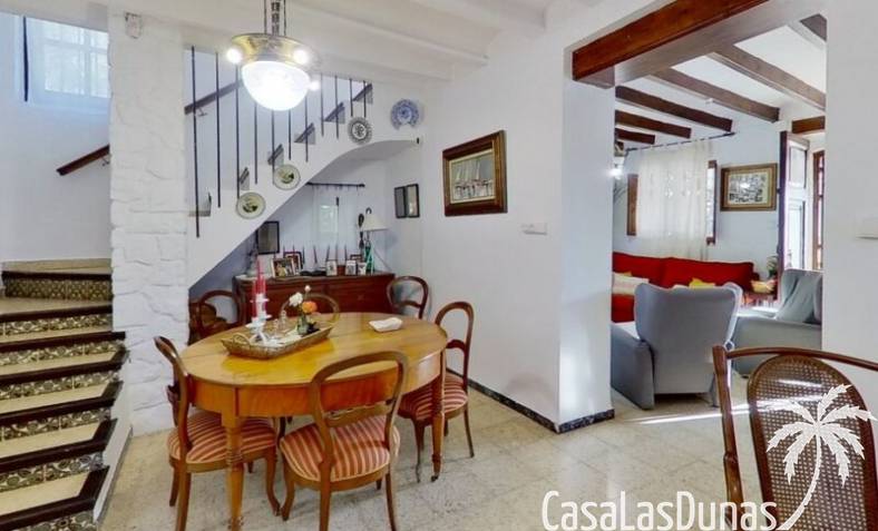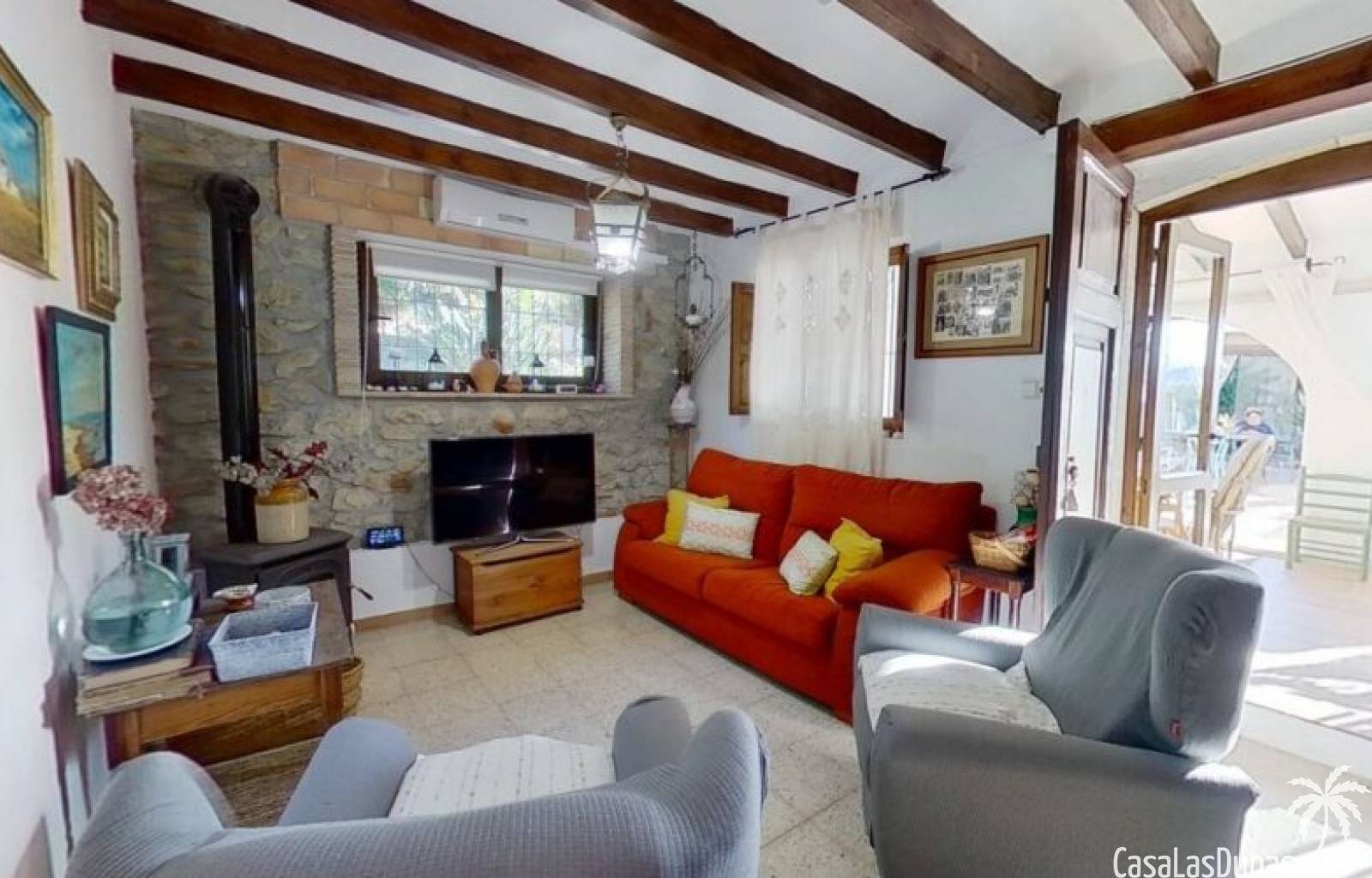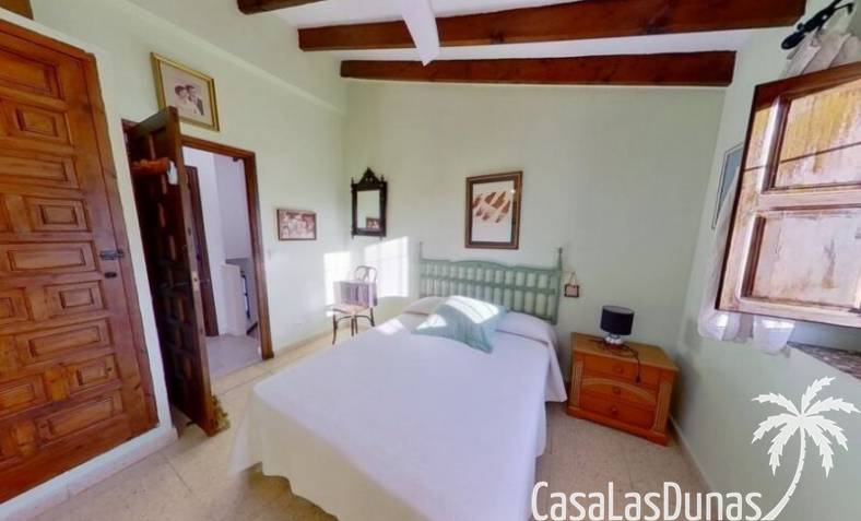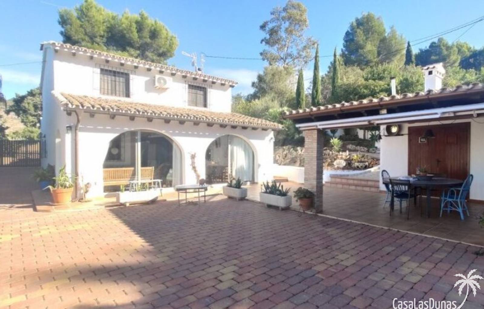 This charming finca is located a short distance from the center of Jesus Pobre and the Montgo Natural Park, and sits on a beautiful plot of almost 2,000m² with unobstructed views over the valley and complete privacy. The house offers 230m² spread over two floors, including a summer kitchen with a shower and a pergola. Entrance is through the glazed naya with double doors leading into the living room with a wood-burning stove and air conditioning. An archway from the living room leads to the dining room with a fireplace and built-in pellet stove. Double doors lead into the traditional farmhouse kitchen with access to the rear garden and a laundry/storage room. A few steps from the kitchen lead to the new guest shower room. Stairs from the dining room lead to the sleeping accommodation, which comprises: two guest bedrooms, a new bathroom with a shower and access to an open terrace, and the master bedroom with air conditioning. Outside, there is a beautiful summer kitchen with a pizza oven, an outdoor shower, and ample parking with a double carport.