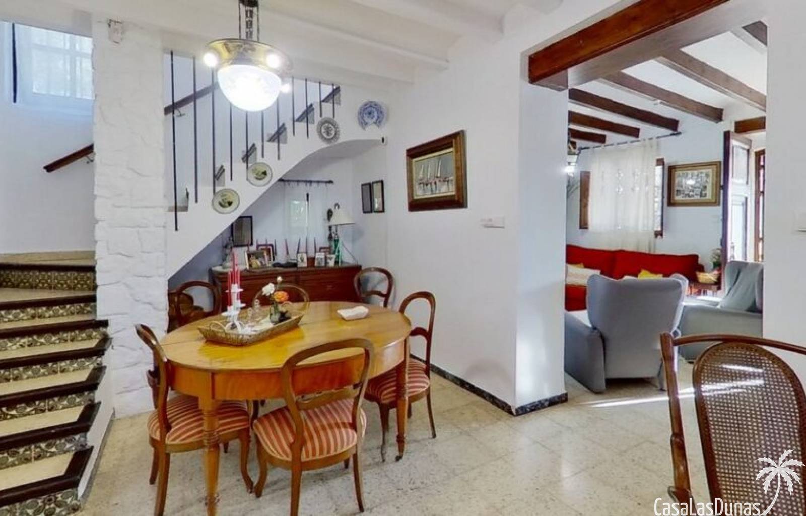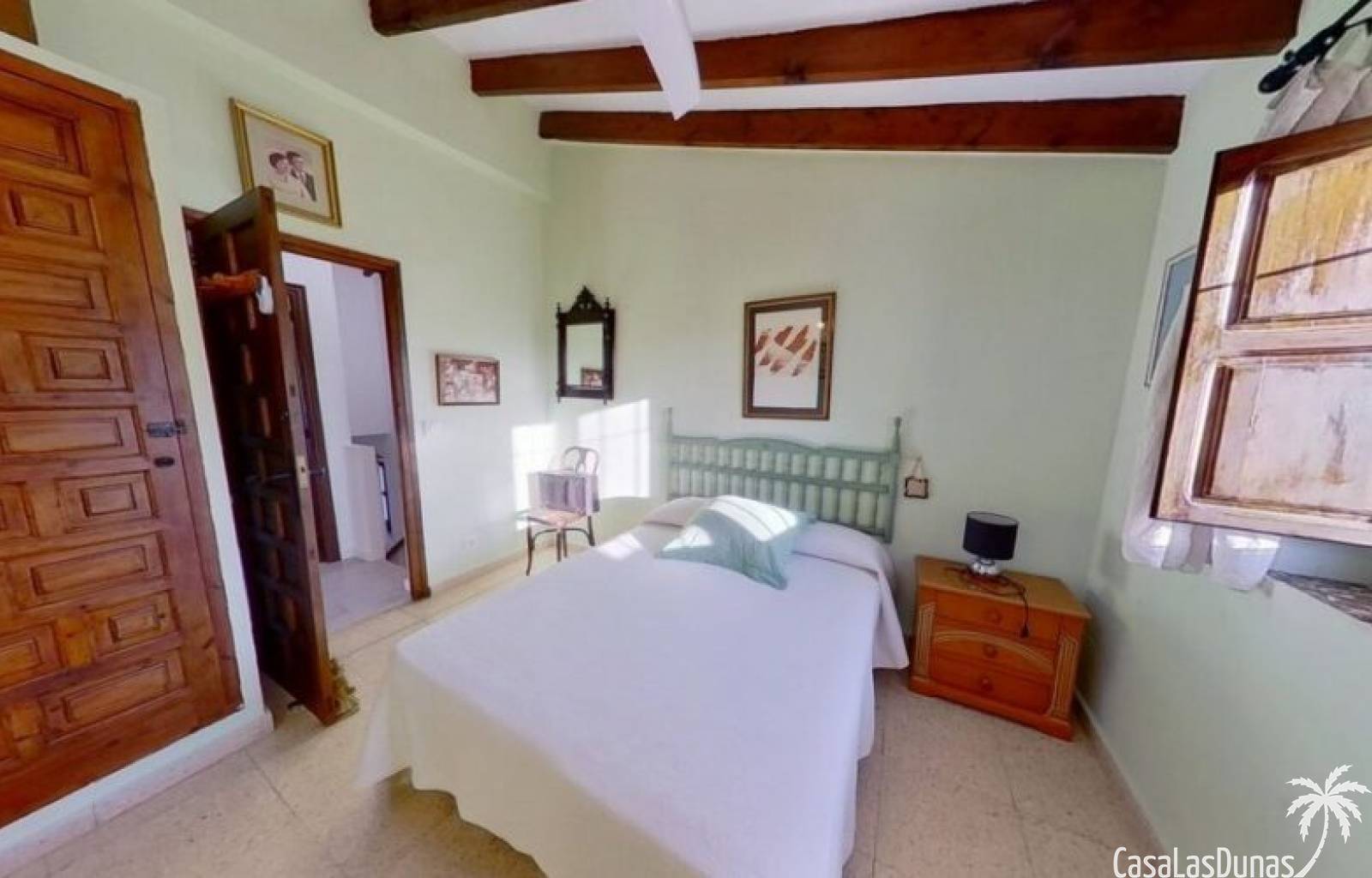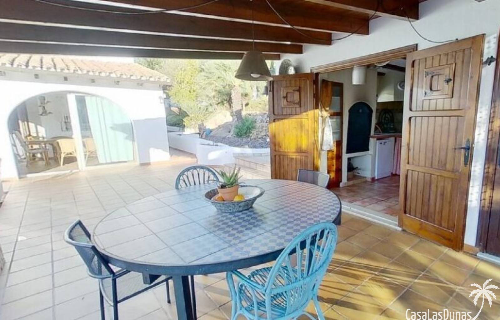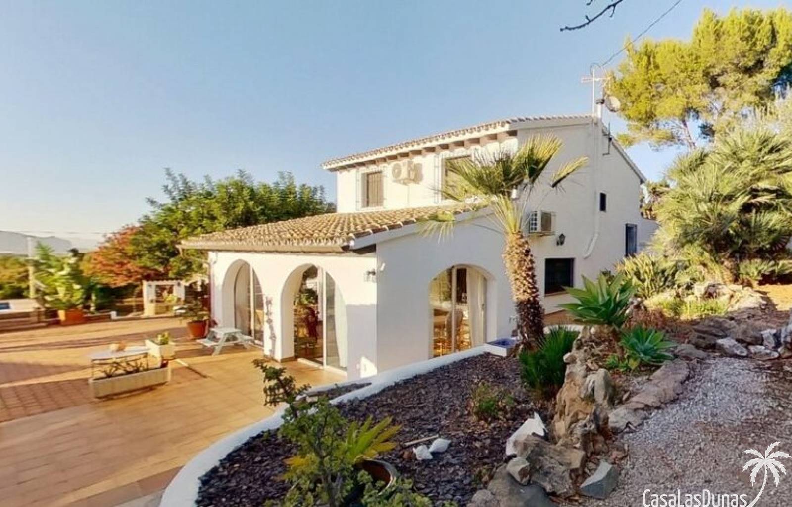 This charming finca is located a short distance from the center of Jesus Pobre and the Montgo Natural Park, and sits on a beautiful plot of almost 2,000m² with unobstructed views over the valley and complete privacy. The house offers 230m² spread over two floors, including a summer kitchen with a shower and a pergola. Entrance is through the glazed naya with double doors leading into the living room with a wood-burning stove and air conditioning. An archway from the living room leads to the dining room with a fireplace and built-in pellet stove. Double doors lead into the traditional farmhouse kitchen with access to the rear garden and a laundry/storage room. A few steps from the kitchen lead to the new guest shower room. Stairs from the dining room lead to the sleeping accommodation, which comprises: two guest bedrooms, a new bathroom with a shower and access to an open terrace, and the master bedroom with air conditioning. Outside, there is a beautiful summer kitchen with a pizza oven, an outdoor shower, and ample parking with a double carport.