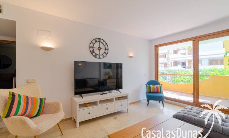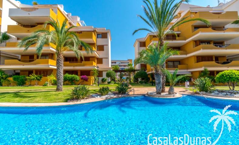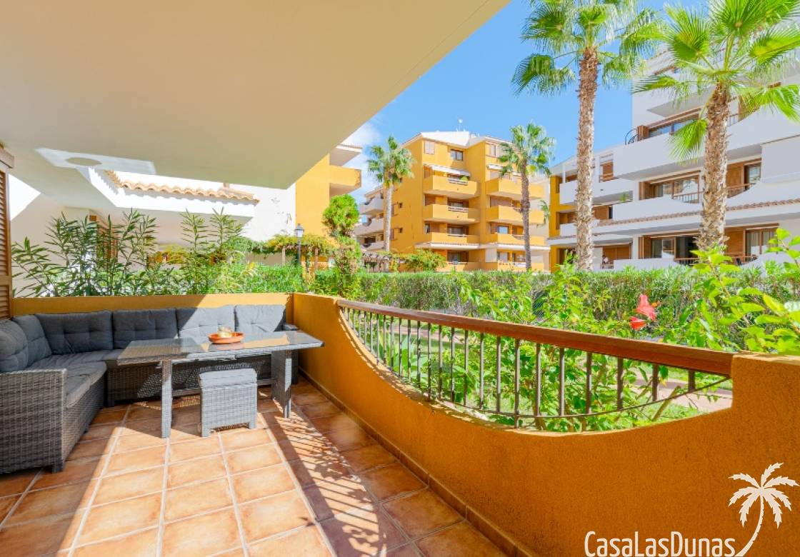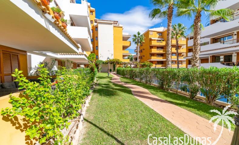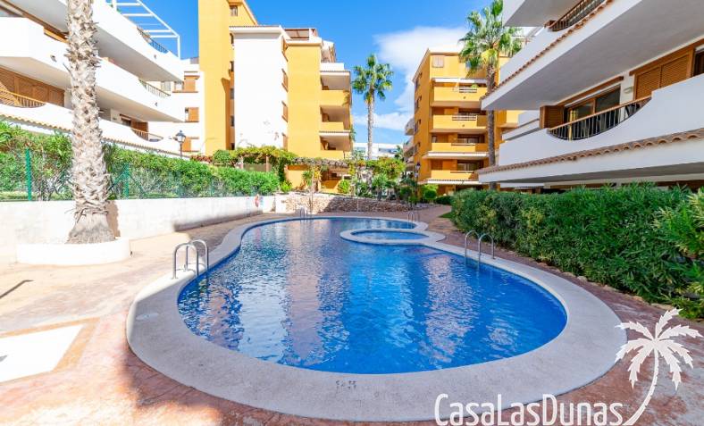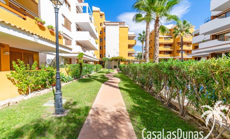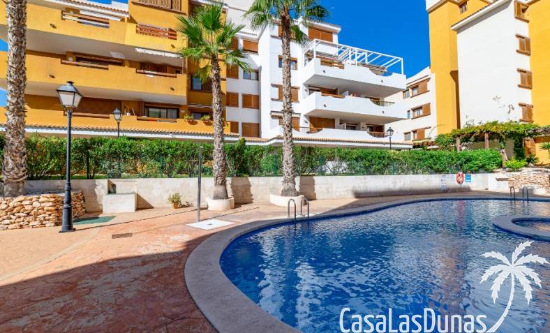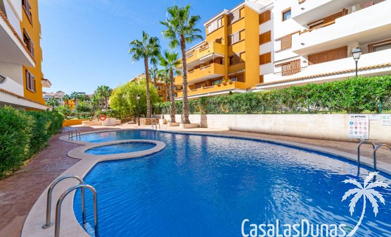 Nice apartment for sale located in a gated community ¨La Entrada¨ with 2 bedrooms, 2 bathrooms, kitchen, living room and a terrace. The Punta Prima beach is only few minutes walking distance as well as local amenities. It has underground parking and storage room included in the price.