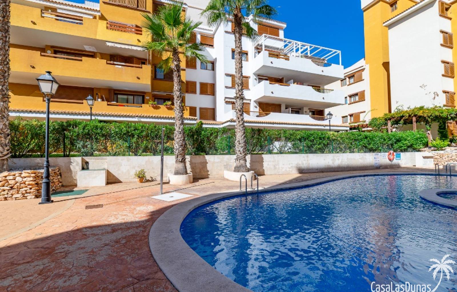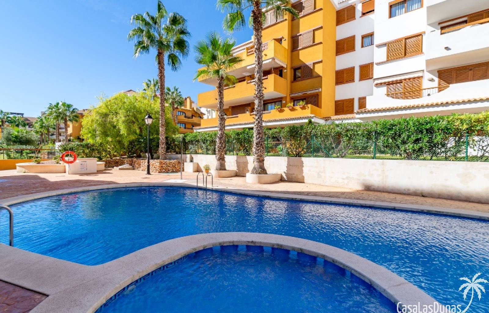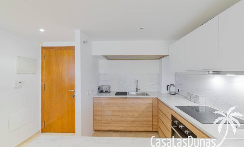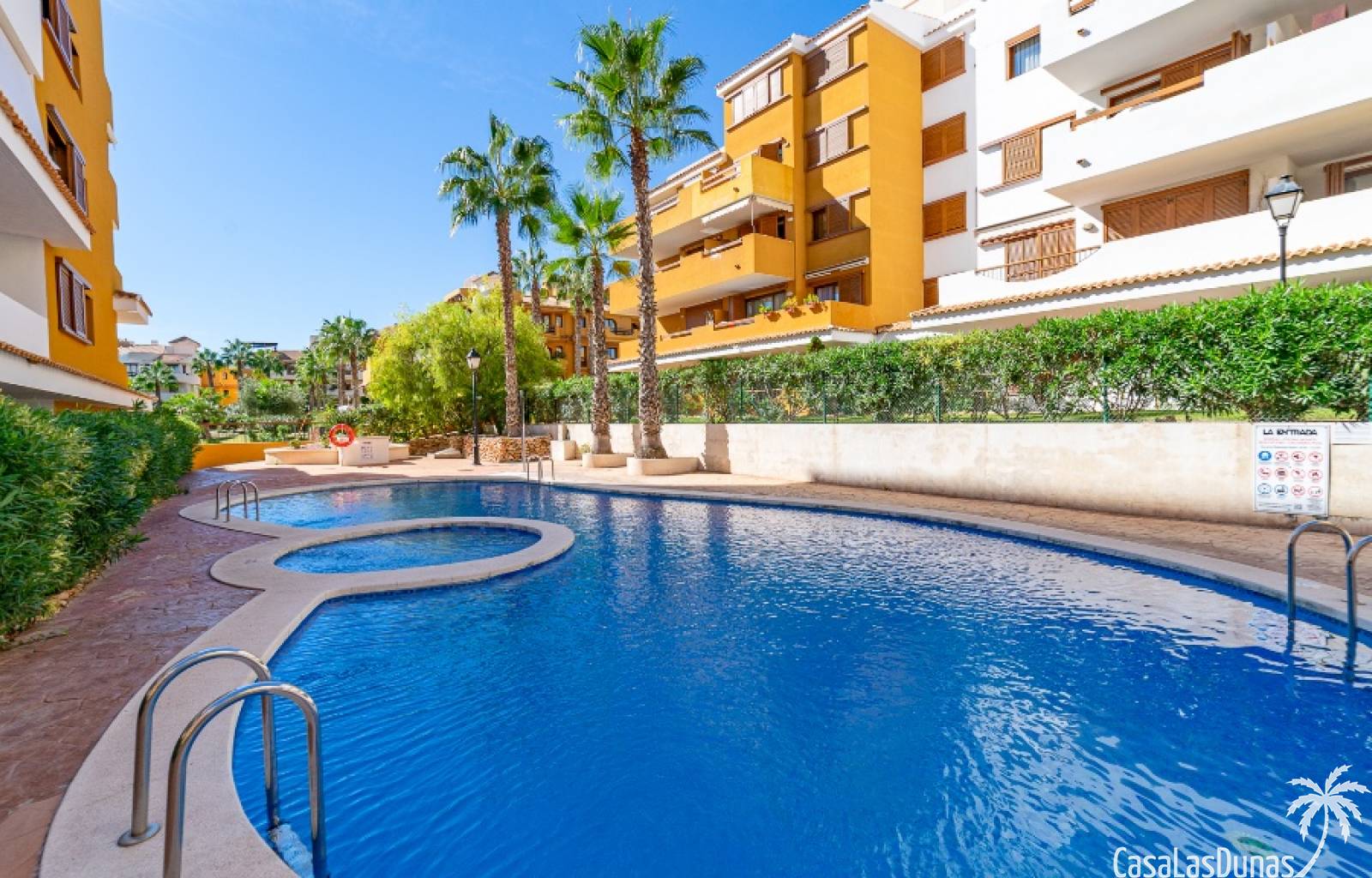 Nice apartment for sale located in a gated community ¨La Entrada¨ with 2 bedrooms, 2 bathrooms, kitchen, living room and a terrace. The Punta Prima beach is only few minutes walking distance as well as local amenities. It has underground parking and storage room included in the price.