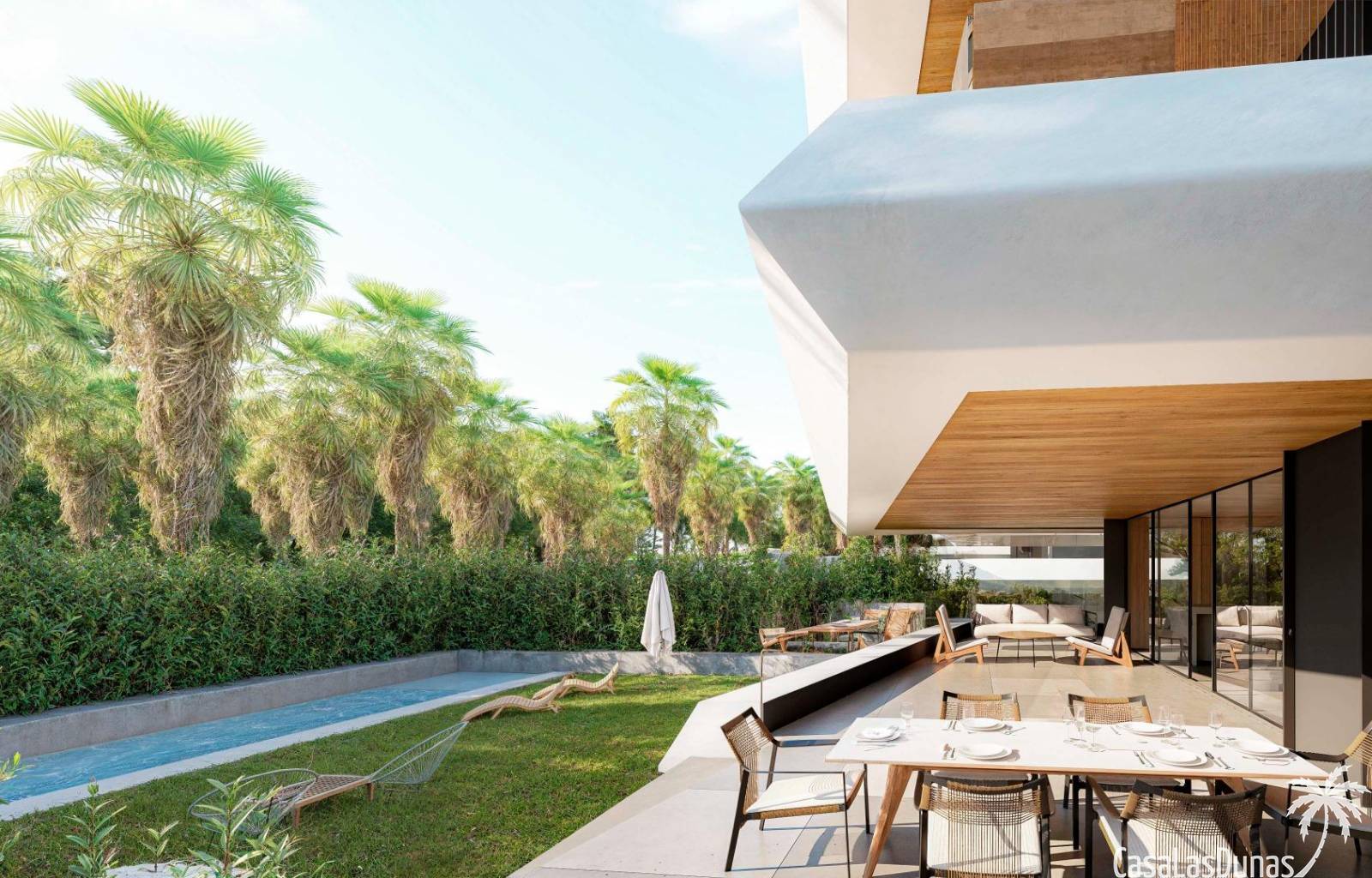 Buyers can choose between several property types. Ground floor apartments feature private gardens and their own private swimming pool. Middle floor apartments offer large terraces with the option to add a jacuzzi as an upgrade. The top floor penthouses include private rooftop solariums and a private pool, creating an ideal space for sunbathing and outdoor entertaining.