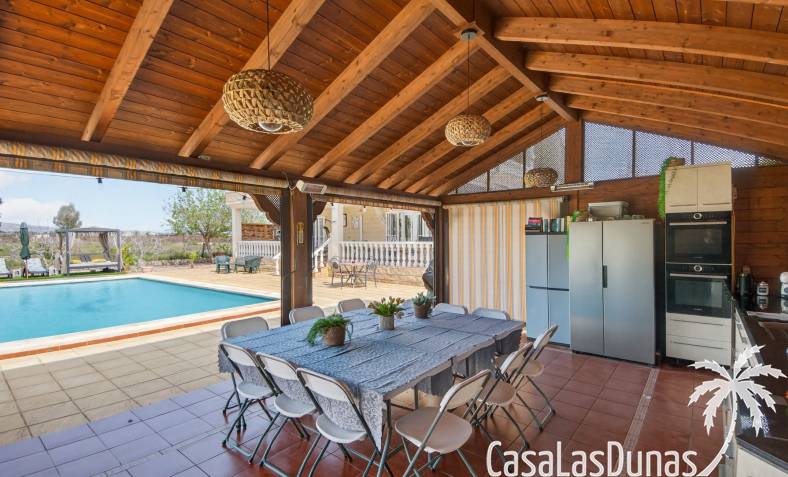 Outside, the property truly shines with excellent facilities and entertaining areas. The finca includes a private swimming pool with a new pump system, ready to be converted to saltwater, as well as a covered outdoor kitchen with BBQ area and a traditional stone pizza oven. There is also a separate exterior bathroom and Bedroom and a laundry room with plenty of storage space throughout the home.