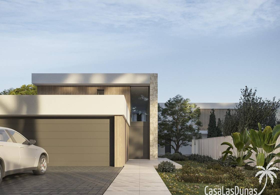 The development offers four different villa designs with built areas ranging from approximately 250 m2 to 380 m2, all located on generous plots of more than 1000 m2. The architecture combines contemporary design with traditional Mediterranean elements such as white stucco walls, natural stone and warm wood accents.
