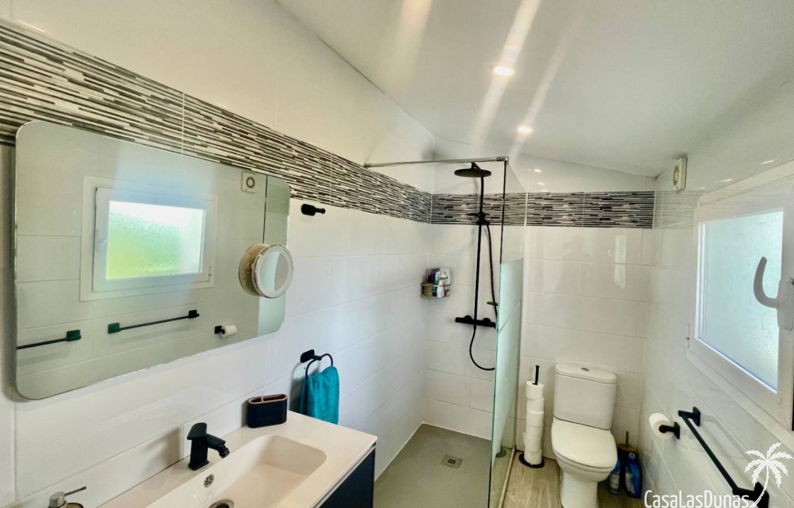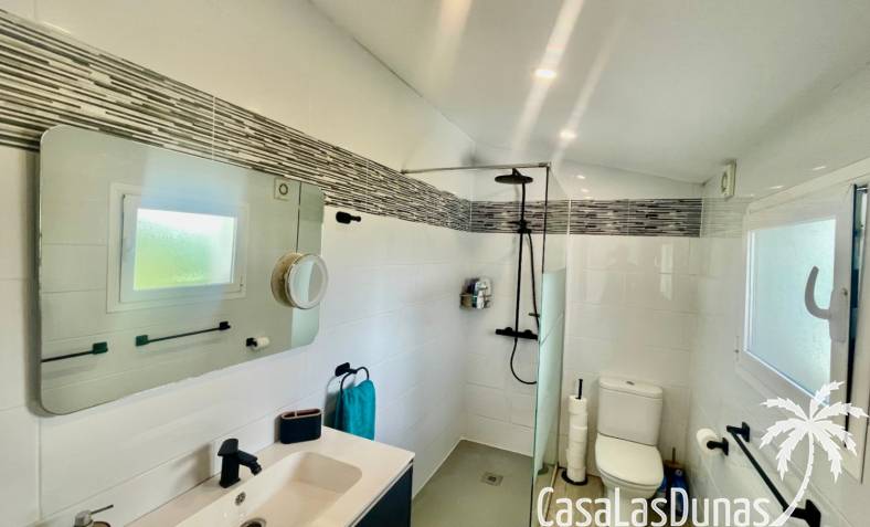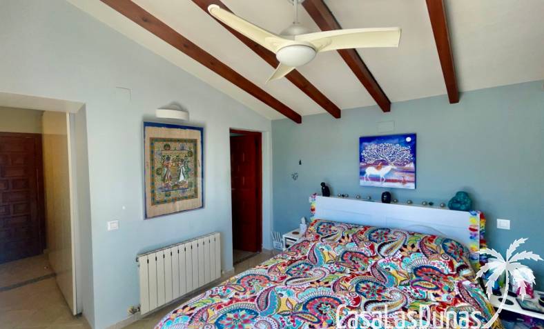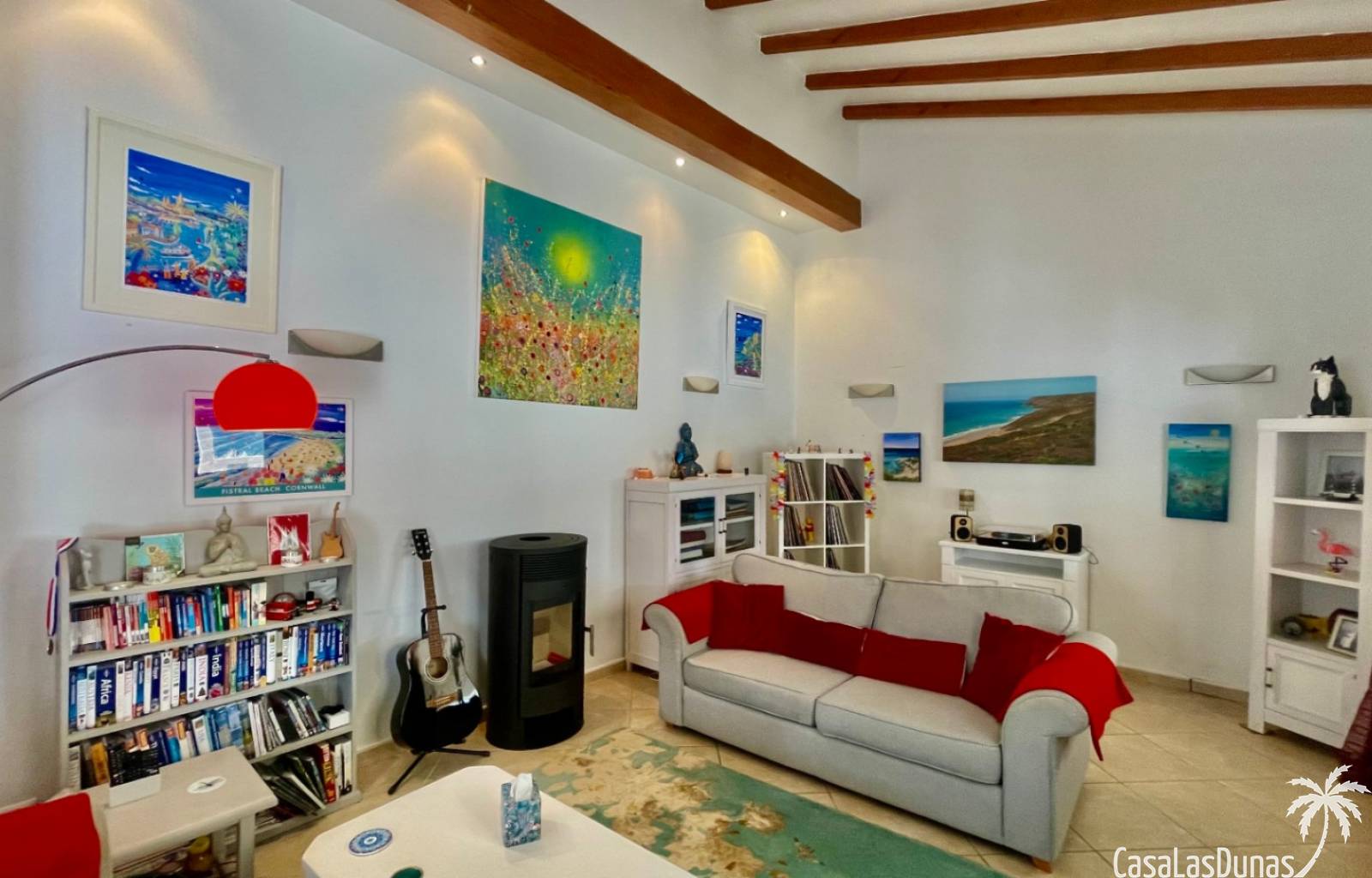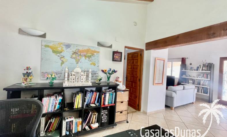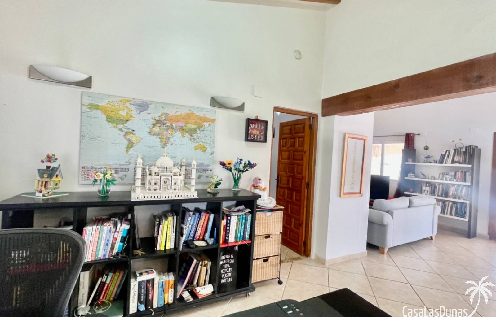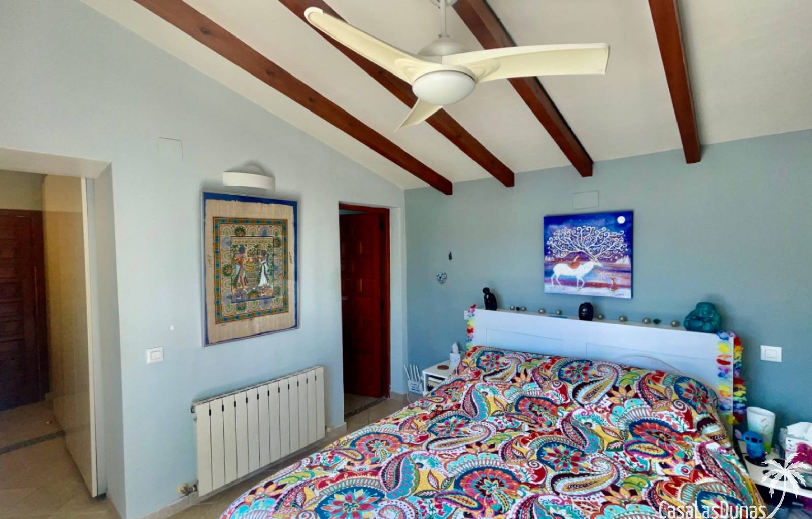 This south-facing detached villa is situated on a flat plot of 1,010 m², within walking distance of the picturesque village of Alcalalí. The house is entirely single-story and offers bright, well-laid-out rooms, culminating in an impressive 45 m² glass naya with a wooden beamed ceiling, ideal for relaxing, dining, or entertaining guests year-round. The villa features a large living room with a wood-burning stove and air conditioning (hot/cold), a spacious fully equipped kitchen with a breakfast bar, a utility room with access to the pool terrace, and three bedrooms, all with en-suite bathrooms; the master suite has three built-in wardrobes, a dressing room, a ceiling fan, patio doors to the private terrace, and a spacious walk-in shower. Outside, the plot offers an 8 x 4 m swimming pool, an outdoor shower, a sunny terrace with a pergola, a chill-out and BBQ area, an additional pergola for shade, and low-maintenance Mediterranean gardens. The fully fenced plot features an entrance gate, ample parking, double glazing, and gas central heating, making this an ideal family or holiday home offering space, privacy, and comfort close to the center of Alcalalí.