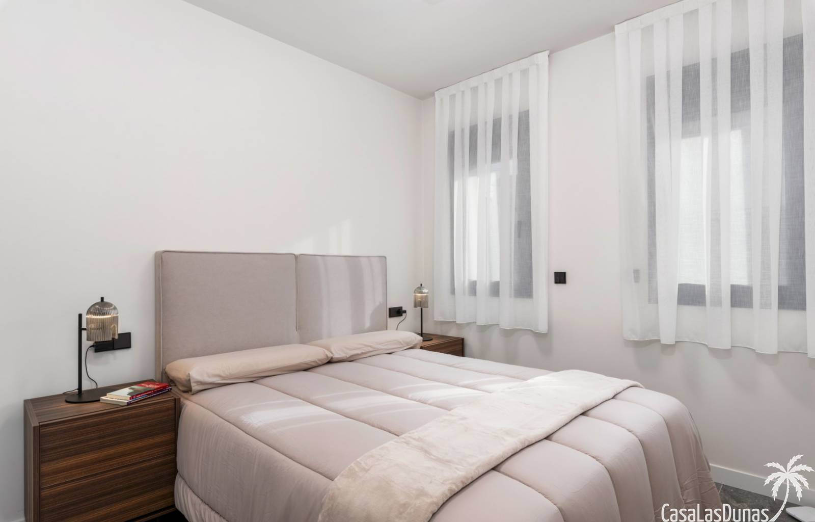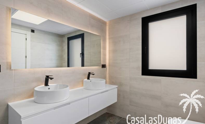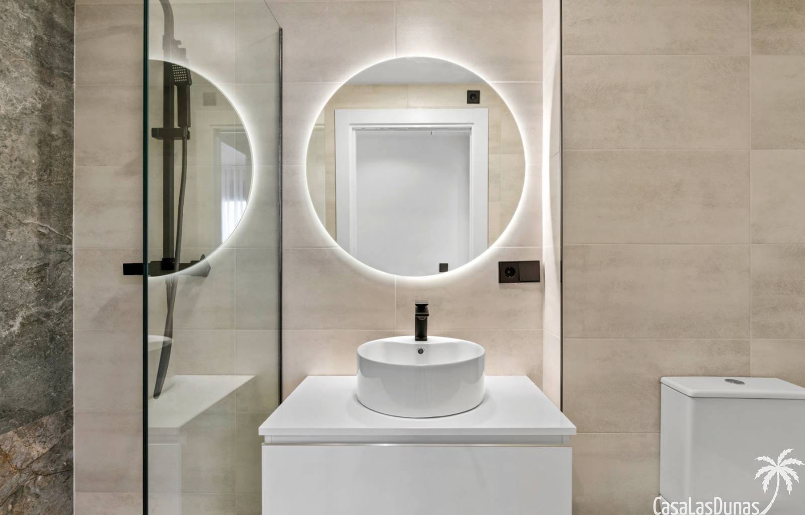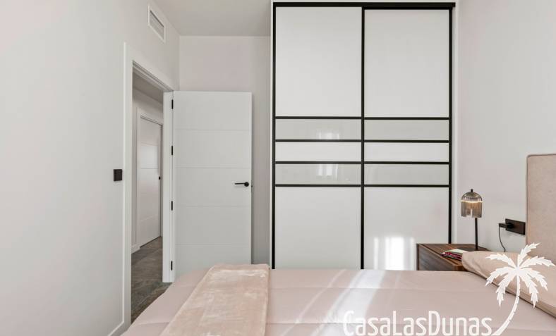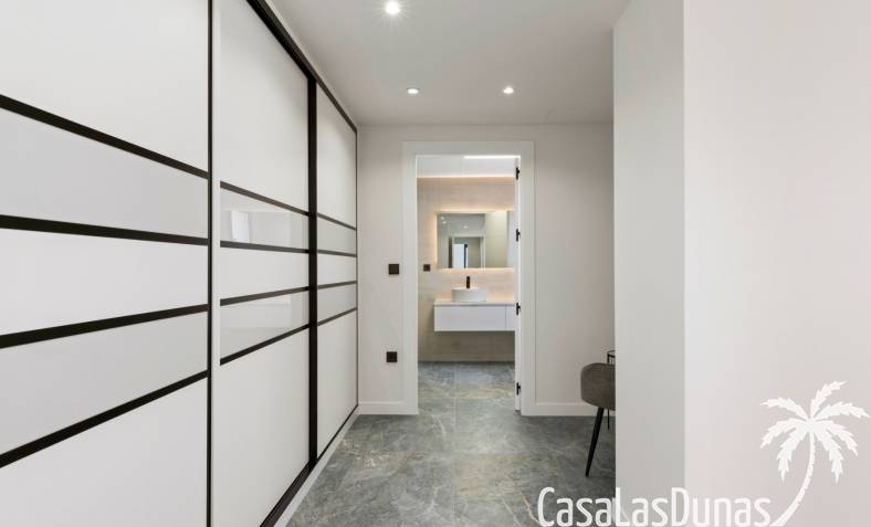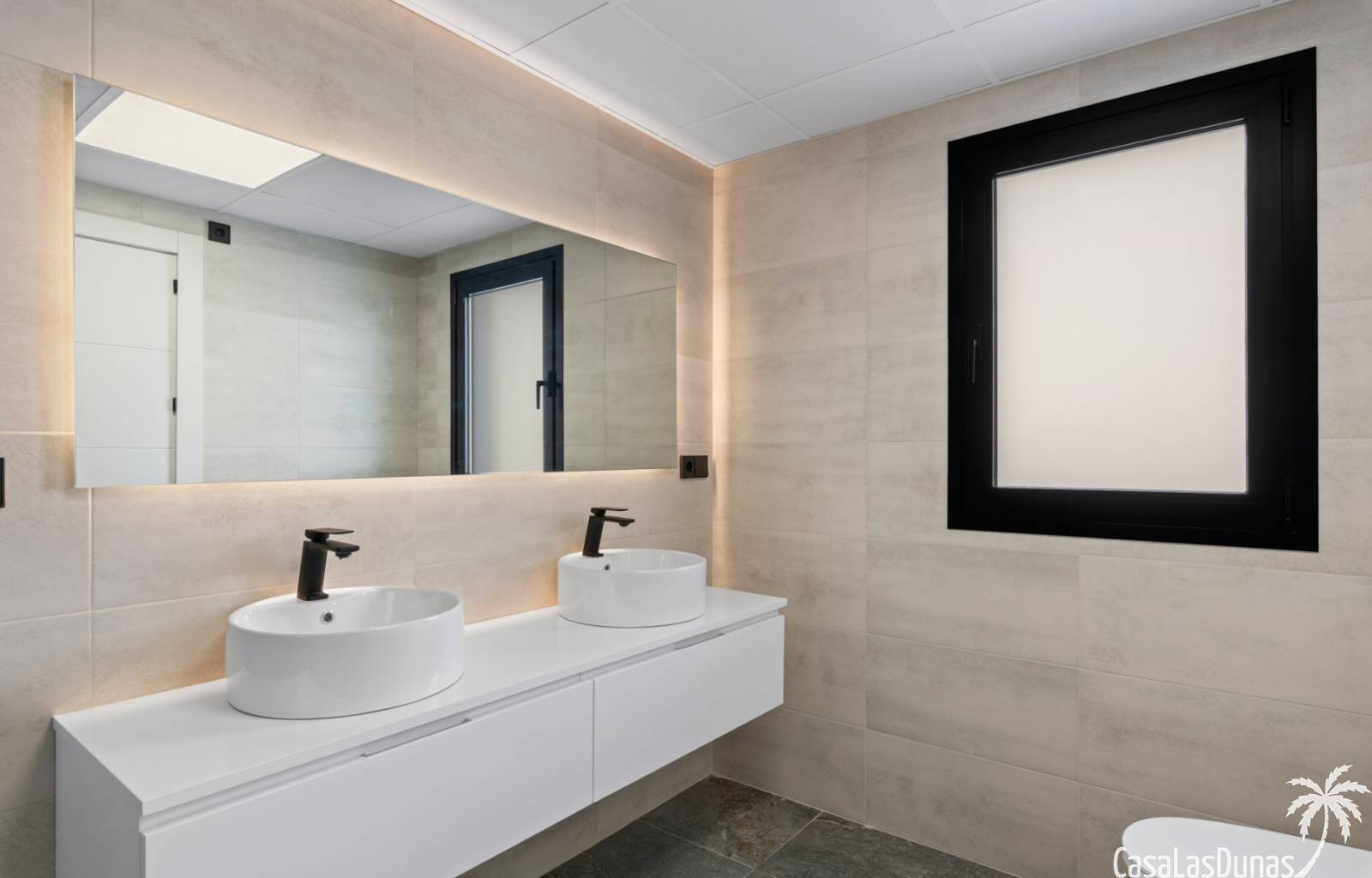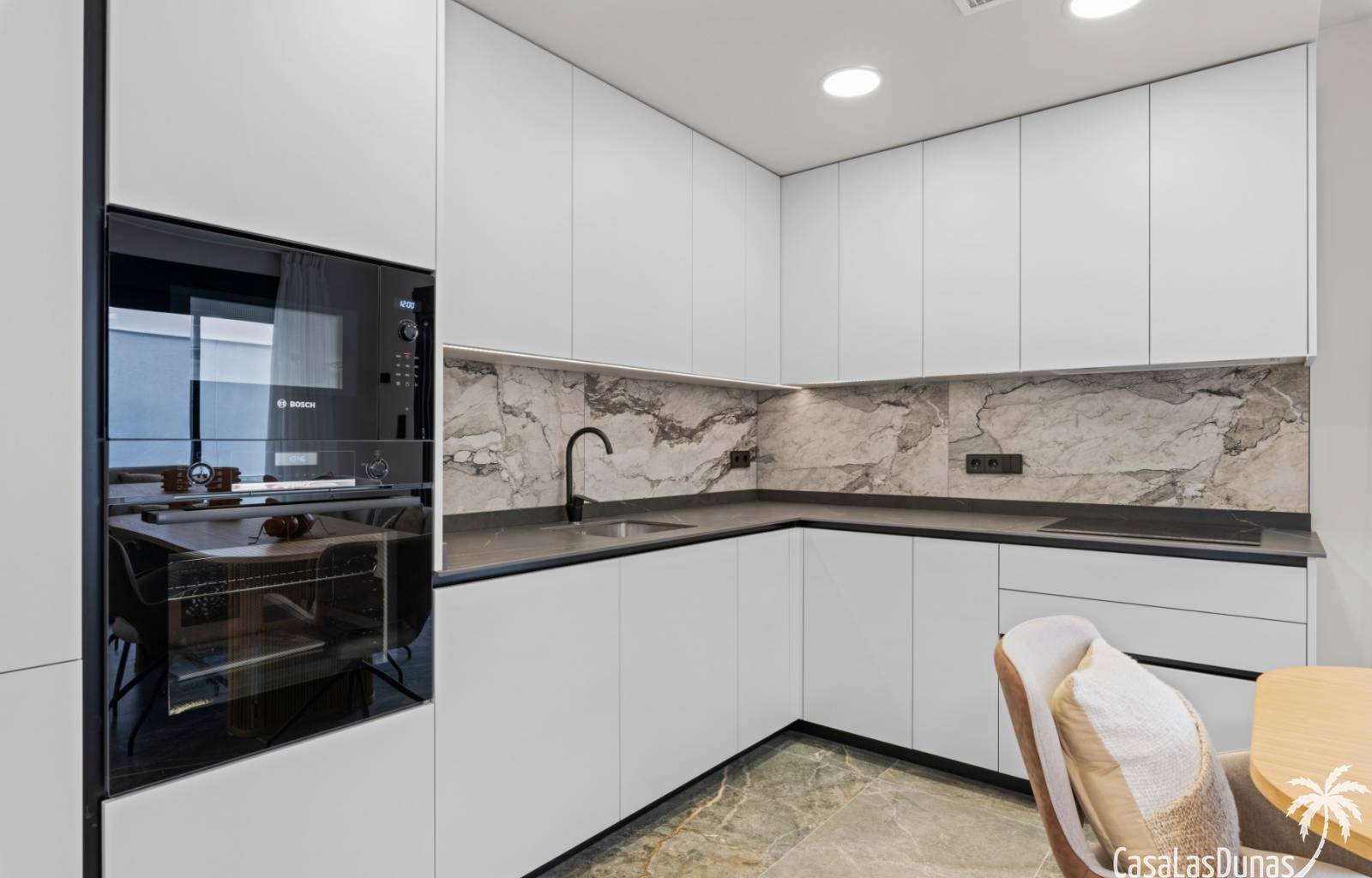 This East Facing, Four Bedroom, Renovated, Semi Detached Villa in Torre de la Horadada is located just a 3 minute walk to the beach, positioned one street behind the sea and promenade which leads you to the marina and a larger stretch of sandy coastline. Torre de la Horadada is a typically Spanish seaside town offering a variety of restaurants and café bars, while Pilar de la Horadada is just a couple of minutes’ drive away. Orihuela Costa, La Zenia Boulevard shopping centre, and several golf courses can all be reached in approximately 15 minutes. Recently renovated to a high standard with a unique and stylish design, this impressive 121m2 villa is set over two floors and even enjoys sea views. The property offers a bright open plan living space that flows seamlessly to the exterior, along with a well fitted modern kitchen. A hallway leads to the stairs for the first floor, while the ground floor also features a double bedroom with double sliding glazed doors out to the garden, and a contemporary shower room. On the first floor, there are three further double bedrooms, including a spacious master with dressing area and an en suite shower room featuring a double vanity. Bedroom four benefits from its own private terrace, and there is also an additional modern family shower room. The 45m2 private solarium is laid with artificial grass and includes a brick-built area with sink — ideal for outdoor entertaining. The garden is tiled and partly laid with artificial grass, and offers off road parking, a private swimming pool, outdoor shower, and an extensive covered kitchen/work area. Additional extras include ducted air conditioning, an irrigation system, and a store room. An exceptional, fully renovated villa in a prime coastal location, perfect for enjoying modern Mediterranean living on the Costa Blanca South.