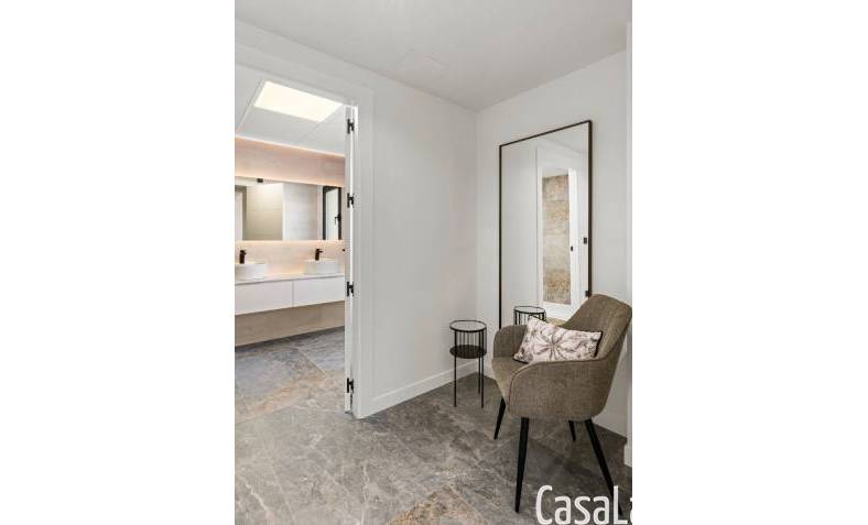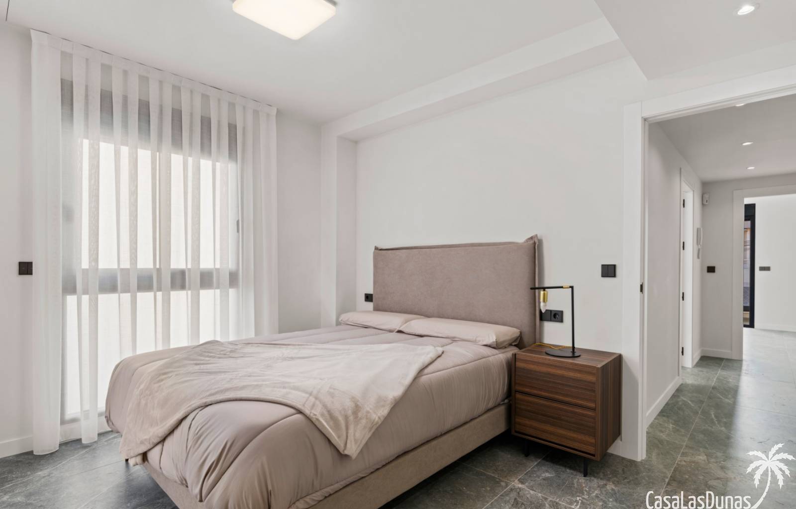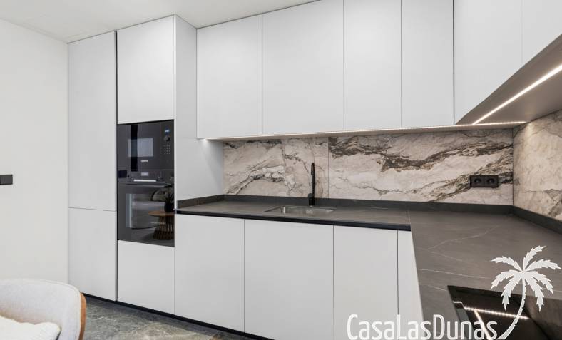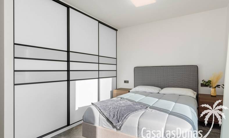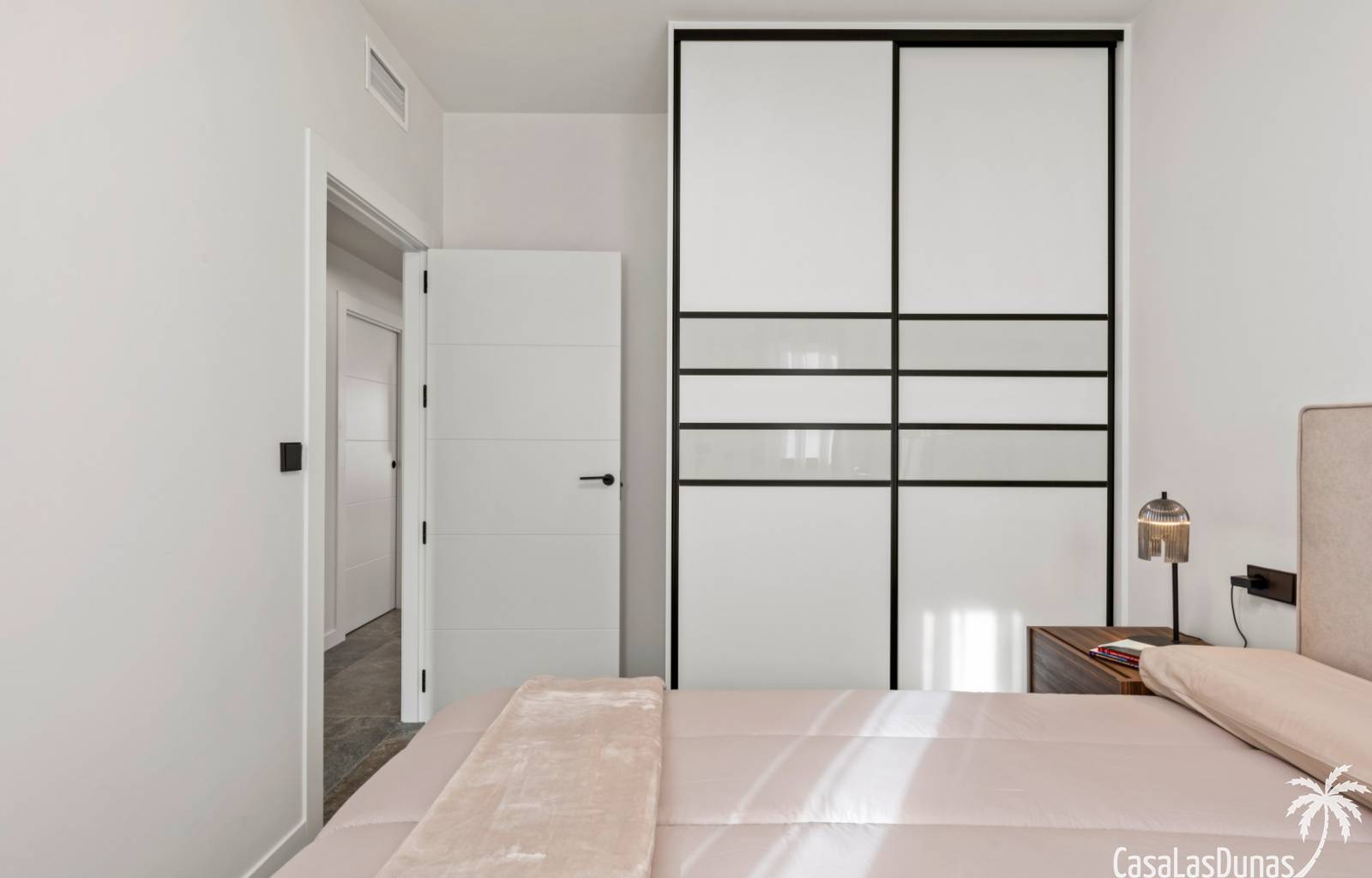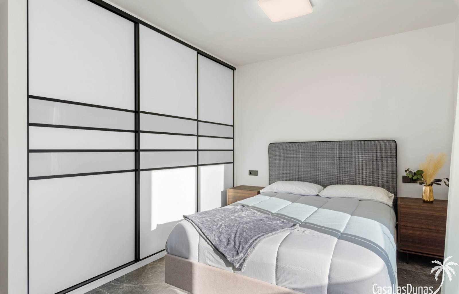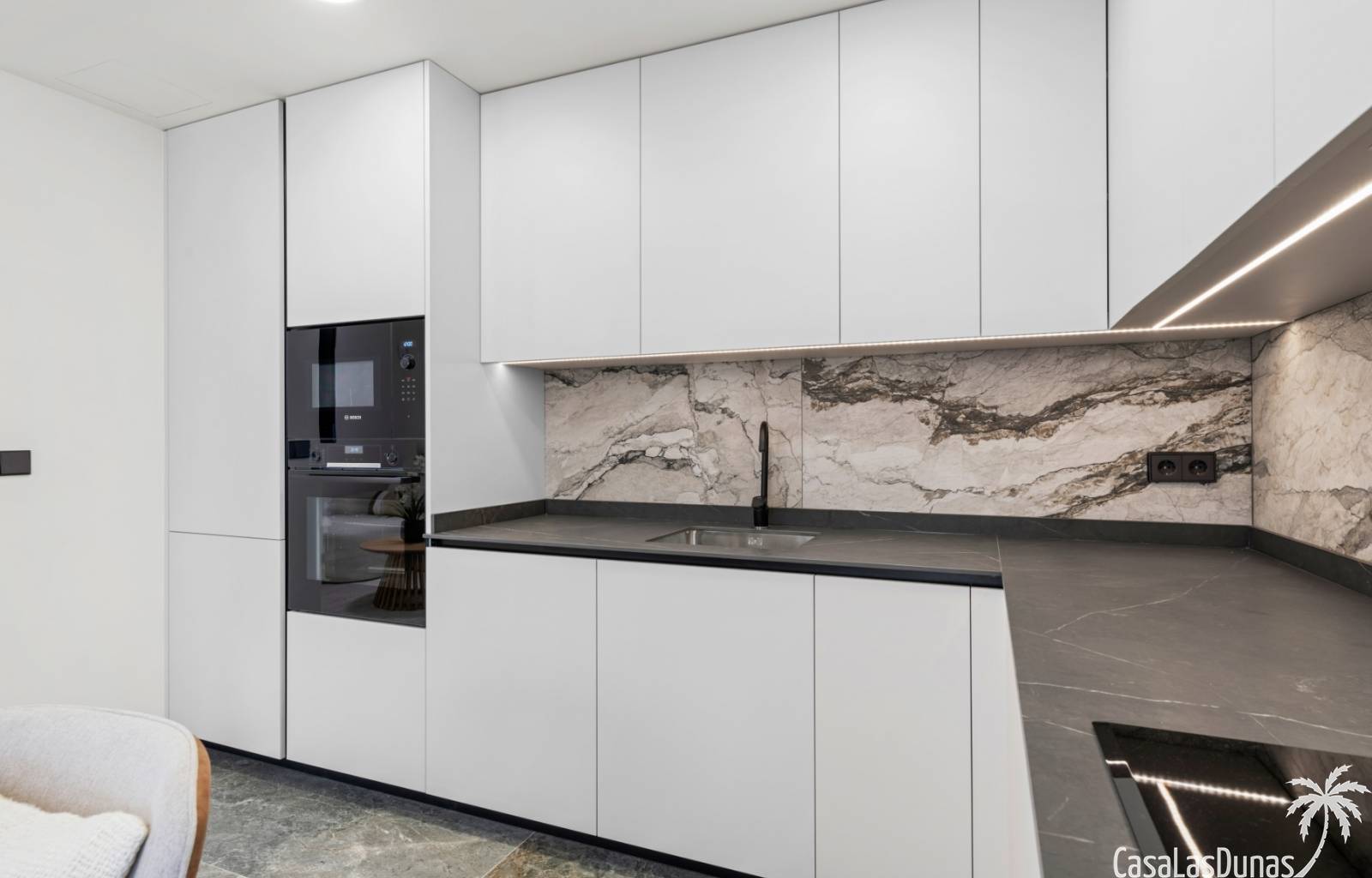 This East Facing, Four Bedroom, Renovated, Semi Detached Villa in Torre de la Horadada is located just a 3 minute walk to the beach, positioned one street behind the sea and promenade which leads you to the marina and a larger stretch of sandy coastline. Torre de la Horadada is a typically Spanish seaside town offering a variety of restaurants and café bars, while Pilar de la Horadada is just a couple of minutes’ drive away. Orihuela Costa, La Zenia Boulevard shopping centre, and several golf courses can all be reached in approximately 15 minutes. Recently renovated to a high standard with a unique and stylish design, this impressive 121m2 villa is set over two floors and even enjoys sea views. The property offers a bright open plan living space that flows seamlessly to the exterior, along with a well fitted modern kitchen. A hallway leads to the stairs for the first floor, while the ground floor also features a double bedroom with double sliding glazed doors out to the garden, and a contemporary shower room. On the first floor, there are three further double bedrooms, including a spacious master with dressing area and an en suite shower room featuring a double vanity. Bedroom four benefits from its own private terrace, and there is also an additional modern family shower room. The 45m2 private solarium is laid with artificial grass and includes a brick-built area with sink — ideal for outdoor entertaining. The garden is tiled and partly laid with artificial grass, and offers off road parking, a private swimming pool, outdoor shower, and an extensive covered kitchen/work area. Additional extras include ducted air conditioning, an irrigation system, and a store room. An exceptional, fully renovated villa in a prime coastal location, perfect for enjoying modern Mediterranean living on the Costa Blanca South.