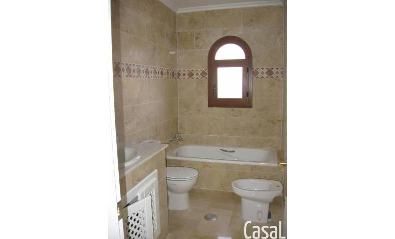On the upper floor there are two bedrooms. The master bedroom has direct access to a pleasant terrace with open views over the communal green area. The bathroom is spacious and fully equipped with bathtub and bidet. The southwest and southeast orientations allow excellent natural light throughout the day.