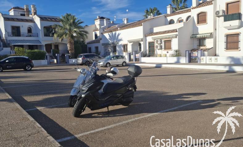 All rooms and terraces face the interior of the community rather than the street, ensuring greater privacy and tranquility. The property is also located slightly further from the pool, avoiding noise and offering a more peaceful setting. The covered terrace with a beautiful natural vine creates fresh and welcoming shade, adding a unique Mediterranean atmosphere.