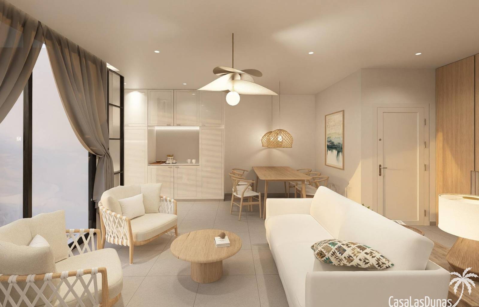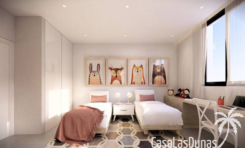 Surrounded by the stunning landscape of the Montgó Natural Park and just 1300 meters from the beach, the development offers a unique microclimate with more than 300 days of sunshine per year. The town center is only 500 meters away, providing easy access to supermarkets, restaurants, pharmacies, local shops and the bus station.