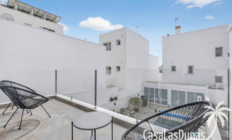 The third floor appears as a private zone and gives the feeling of a separate apartment. Here you will find a very spacious master bedroom with its own bathroom, large integrated wardrobes, and access to two private rooftop terraces, one on each side of the home. Both terraces are spacious and offer excellent sun conditions throughout the day, providing an extra sense of luxury and privacy.