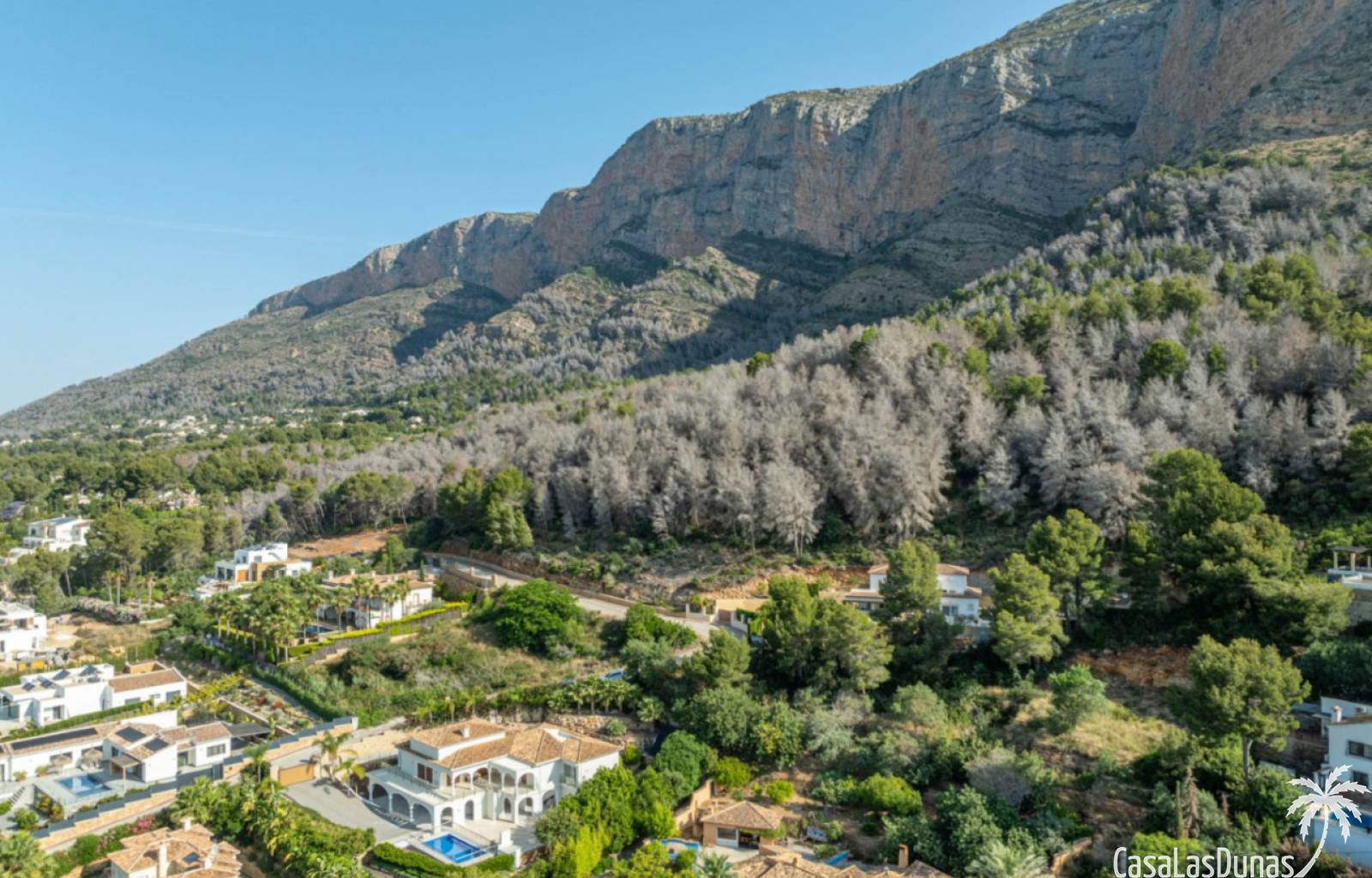 This spectacularly located building plot is located in a beautiful south-facing location with impressive 180 degree views over the valley in the popular area of the Montgo. The plot offers complete privacy and the ground work has already been carried out creating a provisional driveway and large flat platform for the construction of the house.