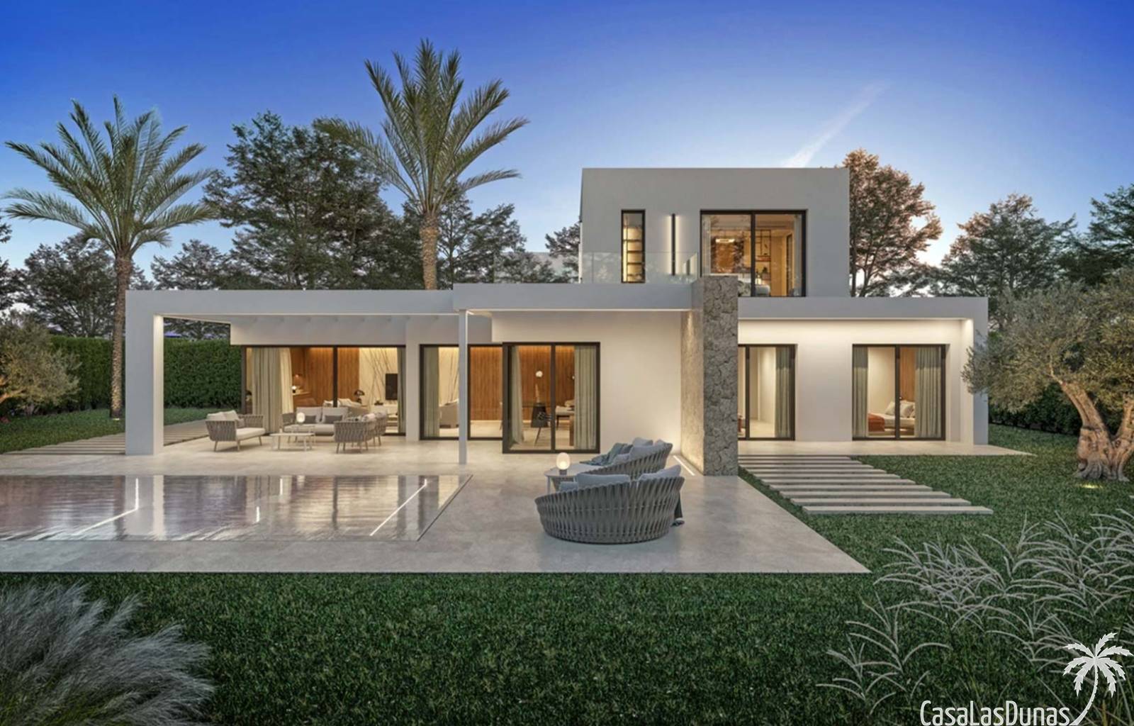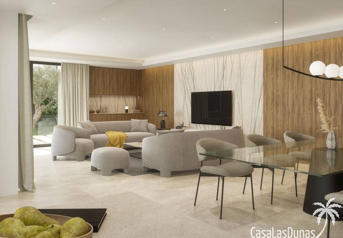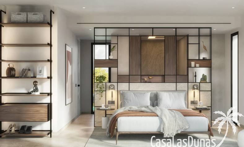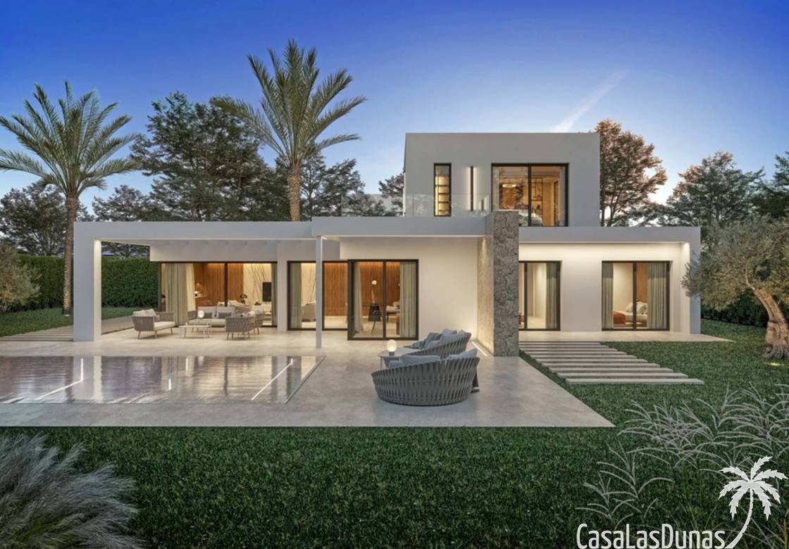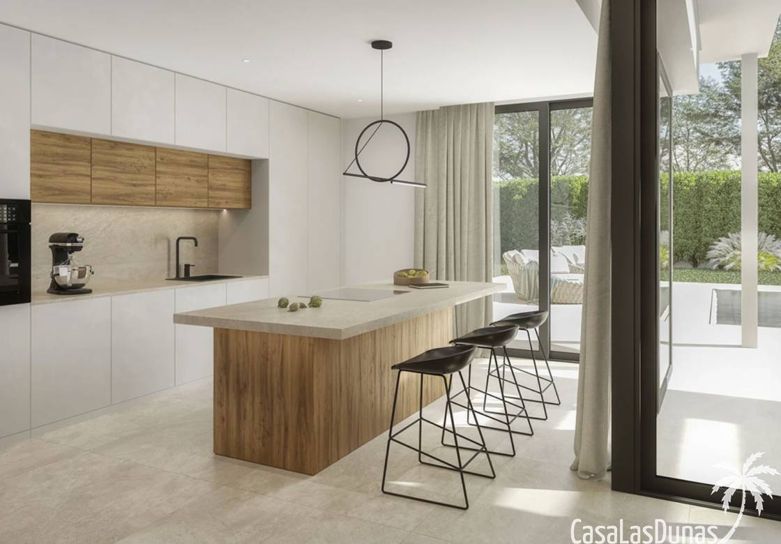 La villa tiene 204 m² de superficie habitable en dos plantas, 112 m² de terrazas, 34 m² de pérgolas, garaje de 33 m² y piscina de 36 m². Para la construcción se utilizan materiales de primera calidad y el cliente tiene la oportunidad de elegir los materiales y acabados durante el proceso de construcción. En este proyecto existe la posibilidad de construir un cuarto dormitorio en el primer piso. La planta baja consta de cocina abierta totalmente equipada con campana extractora y fregadero, un luminoso salón comedor con grandes ventanales que dejan entrar luz todo el día y acceso directo a la terraza y piscina, un dormitorio doble con baño en suite y un aseo de invitados. En la primera planta hay dos dormitorios dobles, cada uno con su propio baño y acceso directo a una terraza. La casa cuenta con aire acondicionado, calefacción por suelo radiante, armarios hechos a medida con acabado lacado en el color de tu elección, cocina totalmente equipada con cajones y puertas laminadas en el color de tu elección, instalación eléctrica con mecanismos de primera calidad, instalaciones sanitarias con Sanitarios y grifería de primera calidad, carpintería exterior de aluminio Technal y persianas eléctricas en los 3 dormitorios. En el exterior hay una gran terraza con pérgolas y vistas directas a la piscina de 4x9m². La parcela estará completamente vallada y se podrá acceder a la vivienda a través de una puerta peatonal o en coche a través de la puerta corredera para ir directamente al garaje con capacidad para aparcar 2 vehículos.